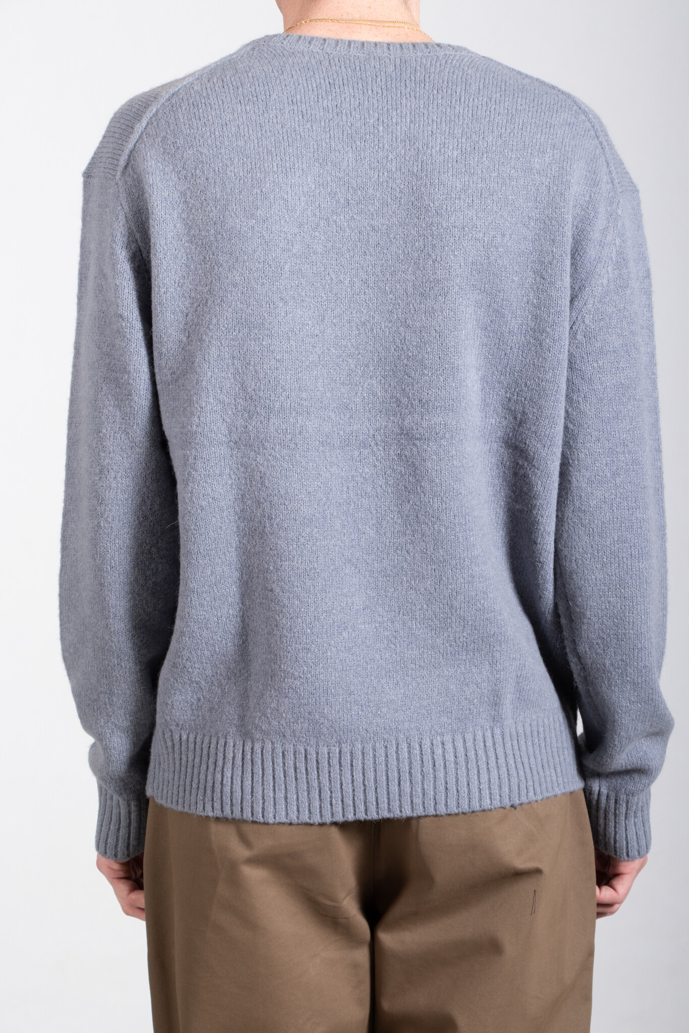 Weicher Alpaka-Mischpulli von 7d. Der Pullover hat ein leicht weiteres Schnittmodell. Unser Model ist 189 cm groß und trägt Größe L. | |