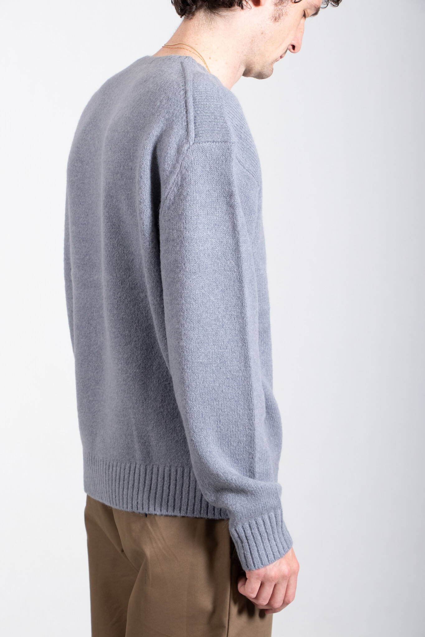 Weicher Alpaka-Mischpulli von 7d. Der Pullover hat ein leicht weiteres Schnittmodell. Unser Model ist 189 cm groß und trägt Größe L. Lesen Sie mehr