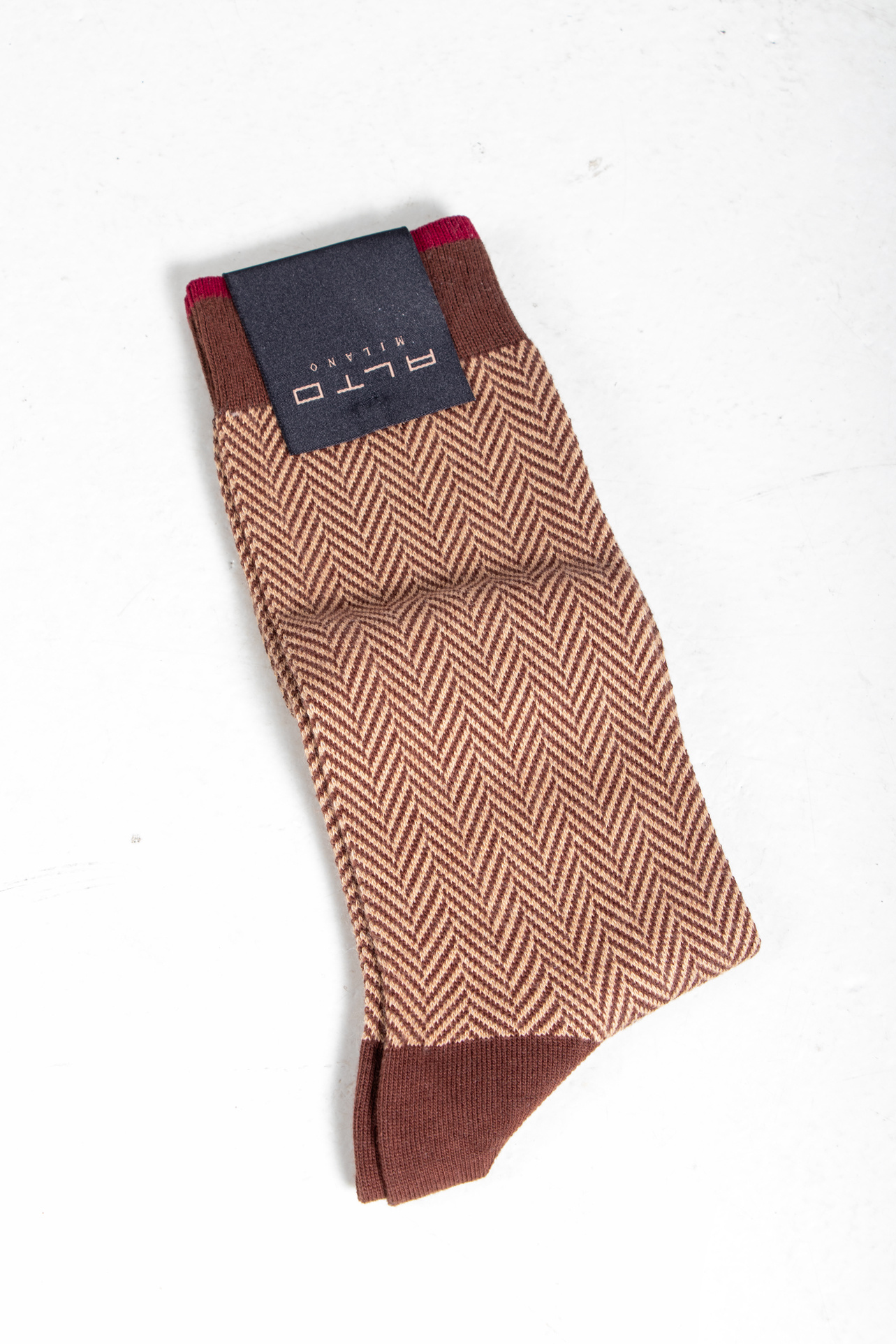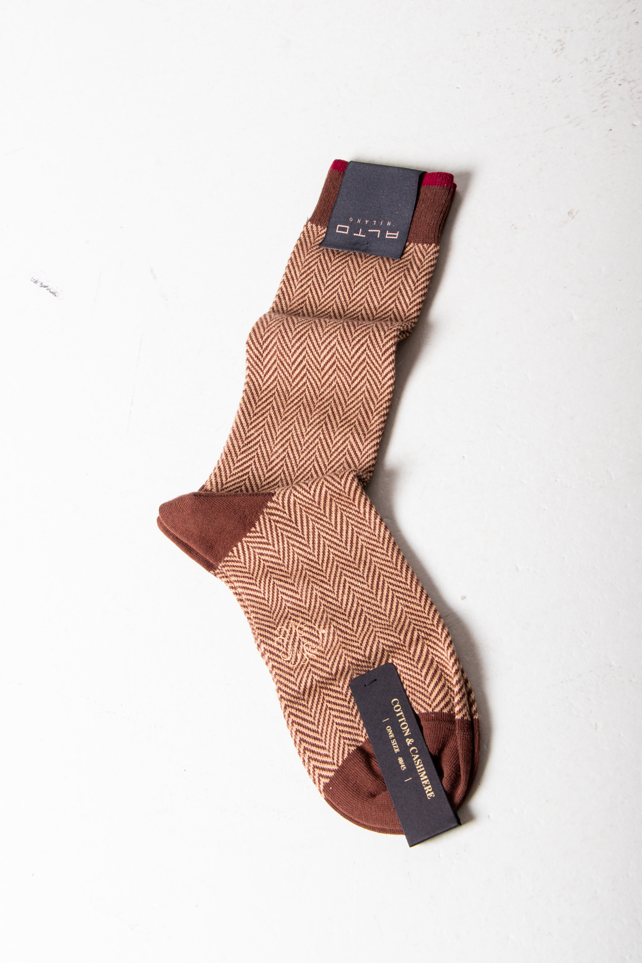 Fischgrät-Socken von Alto Milano aus Italien. Hergestellt aus Baumwolle, Kaschmir und einem Hauch Polyamid für die Haltbarkeit. Lesen Sie mehr