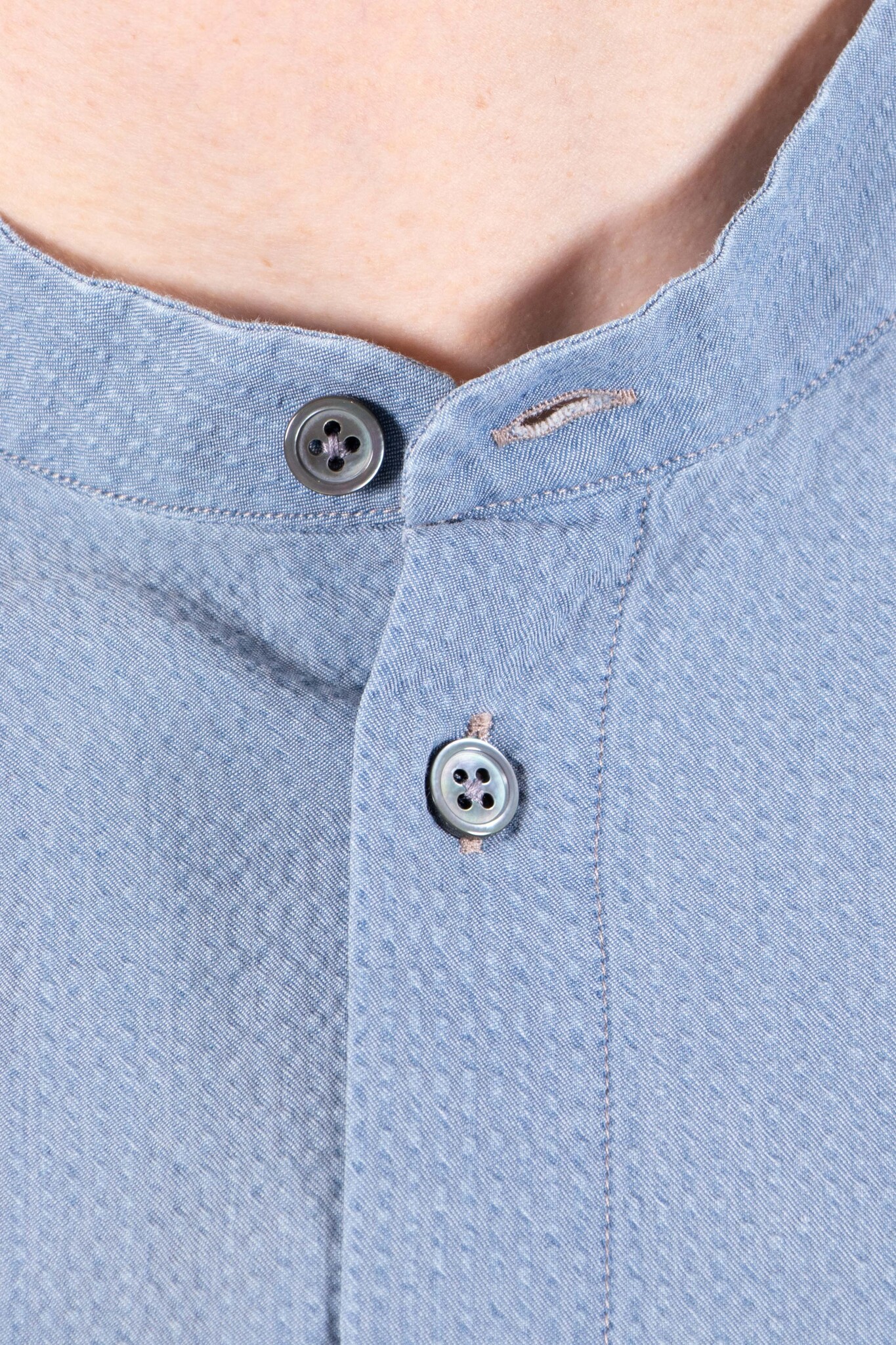 Weiches Baumwollhemd von Delikatessen, aus Seersucker-Stoff gefertigt und mit Bauernkragen versehen. Unser Model ist 192 cm groß und trägt Größe M. Lesen Sie mehr