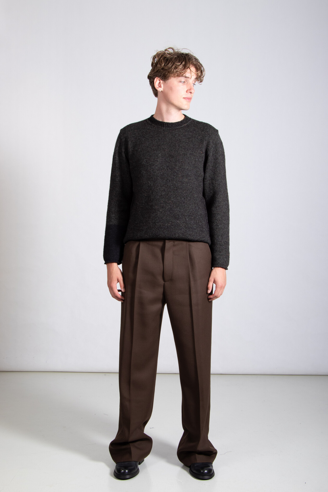 Weite Bundfaltenhose von Dries van Noten, hergestellt aus Woll-Twill. Die Hose kann mit dem Blaine Blazer kombiniert werden. Unser Modell ist 189 cm groß und trägt Größe 50. | |
