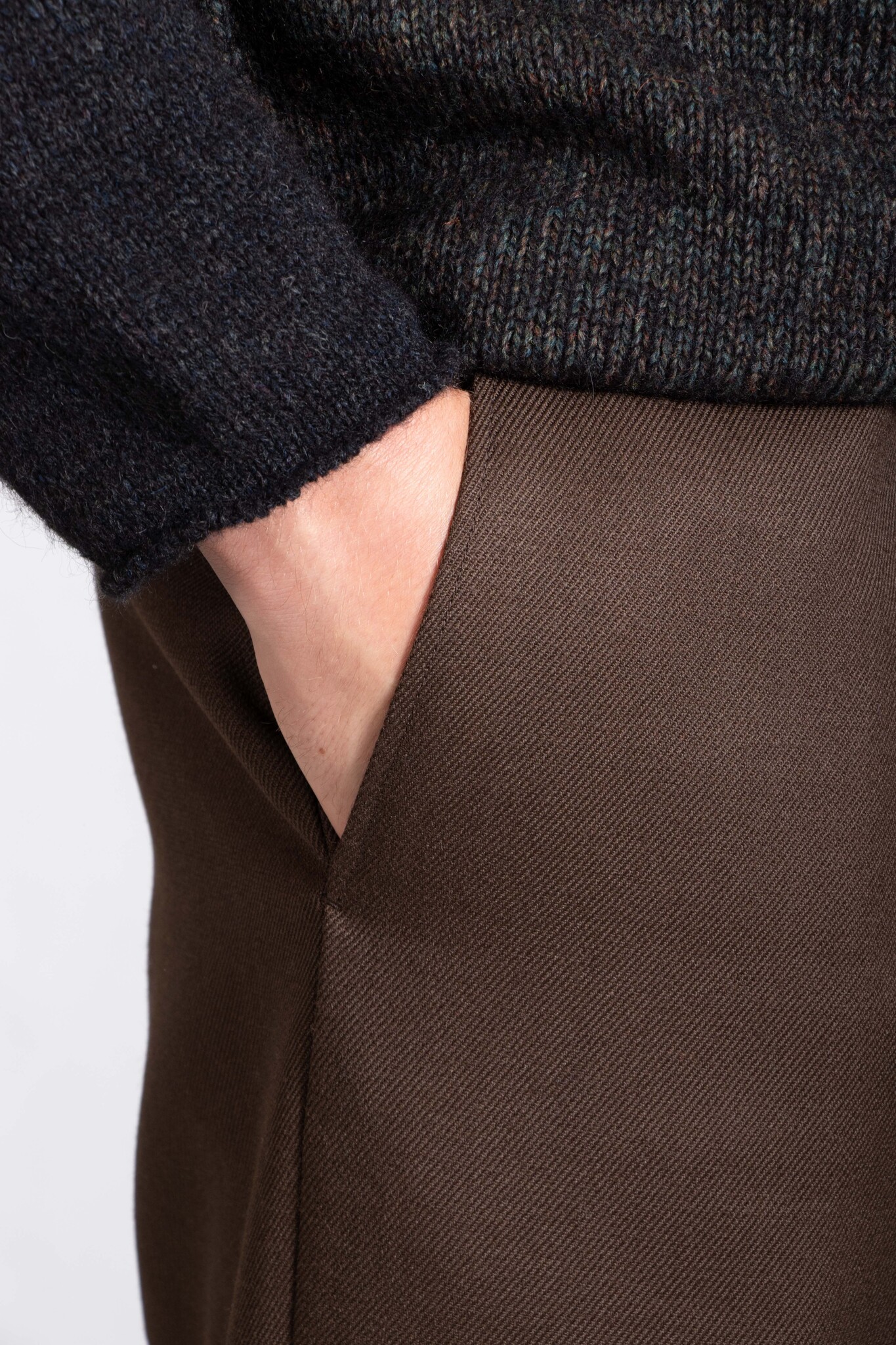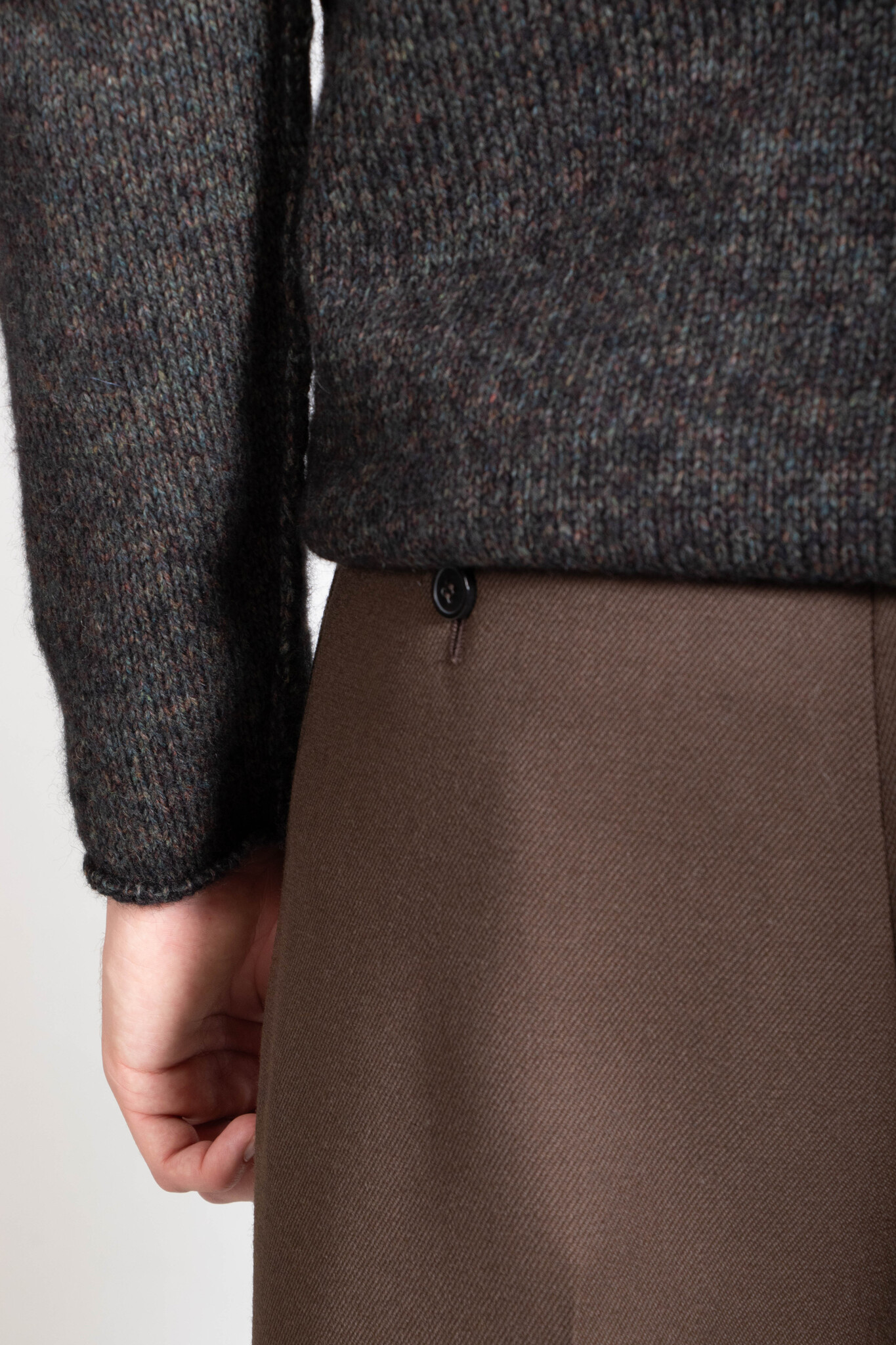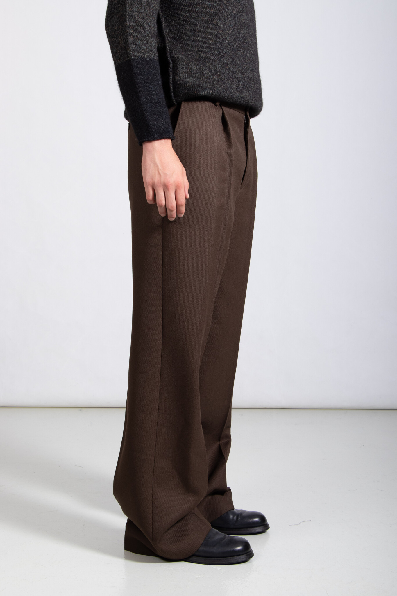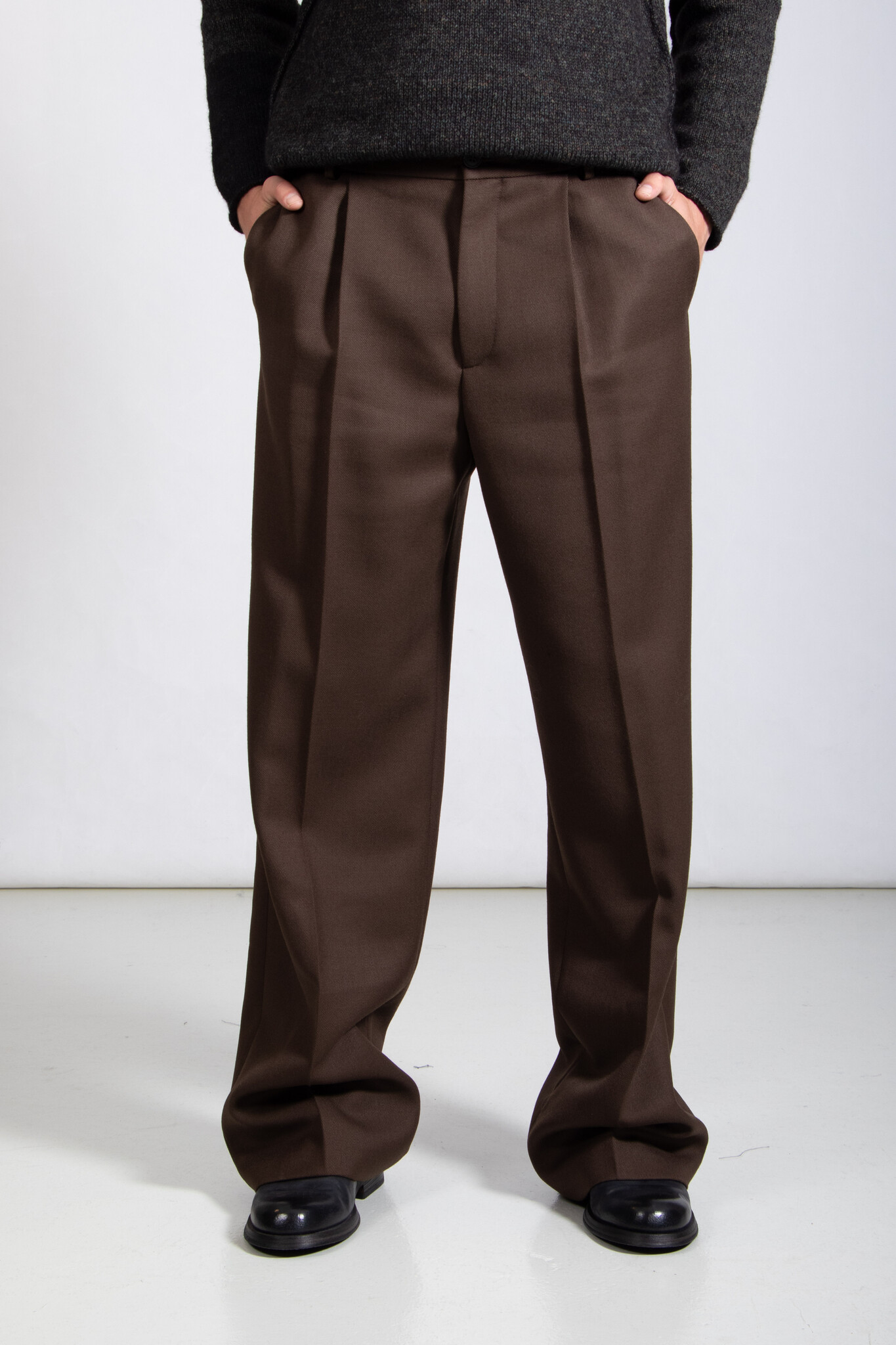 Weite Bundfaltenhose von Dries van Noten, hergestellt aus Woll-Twill. Die Hose kann mit dem Blaine Blazer kombiniert werden. Unser Modell ist 189 cm groß und trägt Größe 50. Lesen Sie mehr