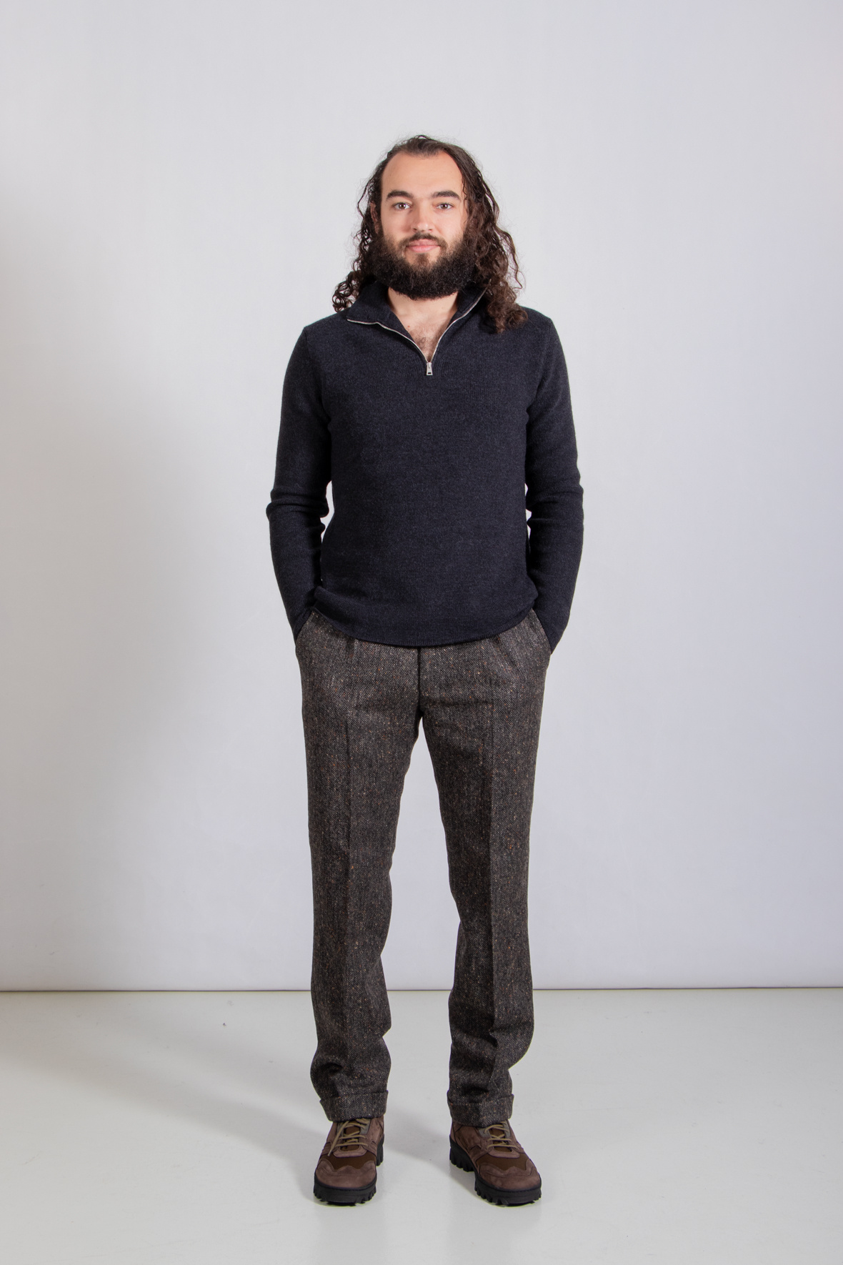 | Merinowollstrickpullover der italienischen Marke G.R.P. Firenze. Der Pullover fällt ziemlich klein aus. Unser Model ist 180 cm groß und trägt Größe XL. | |