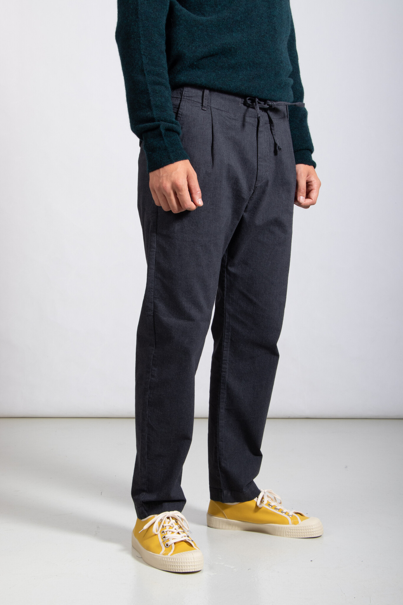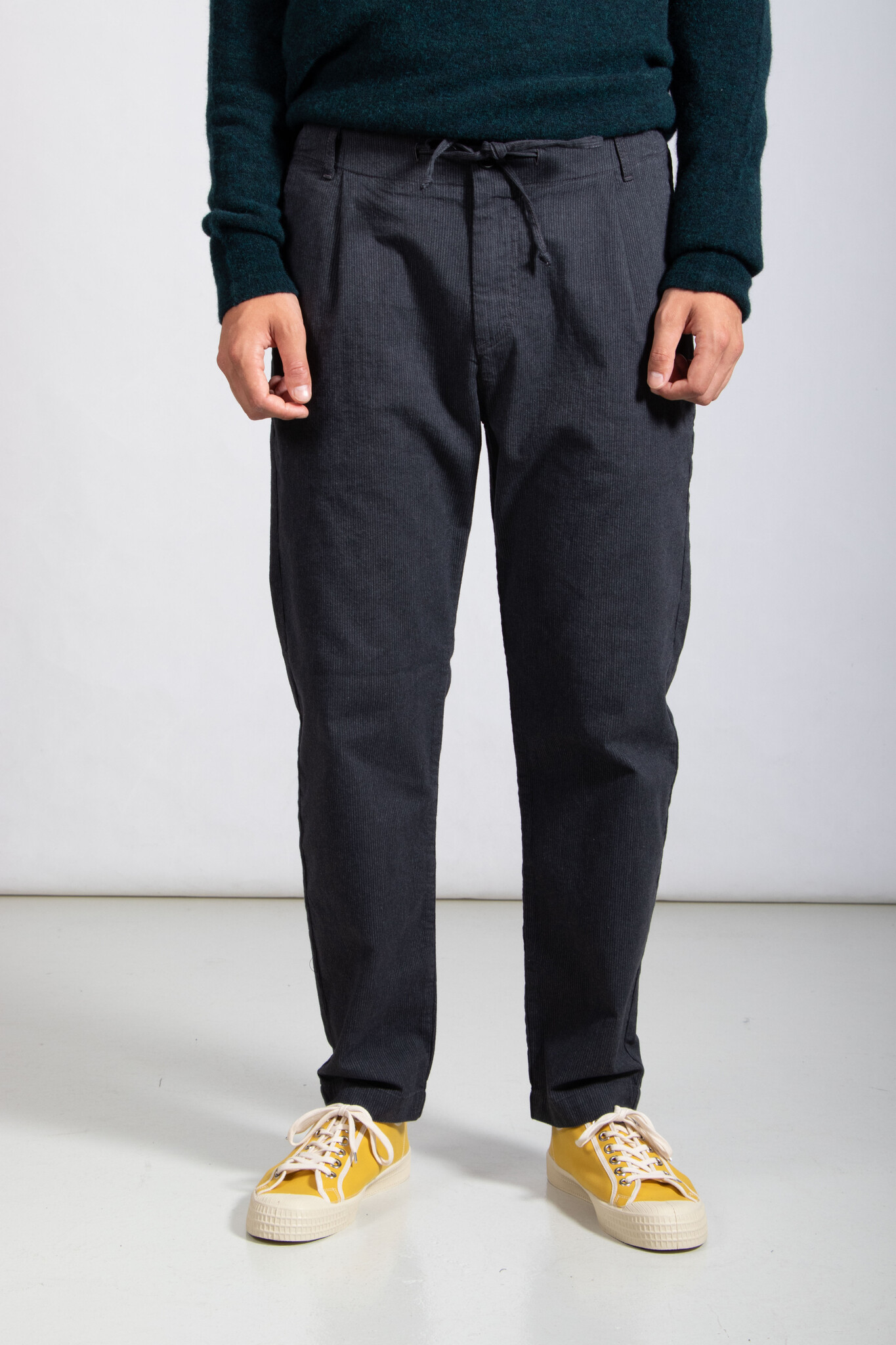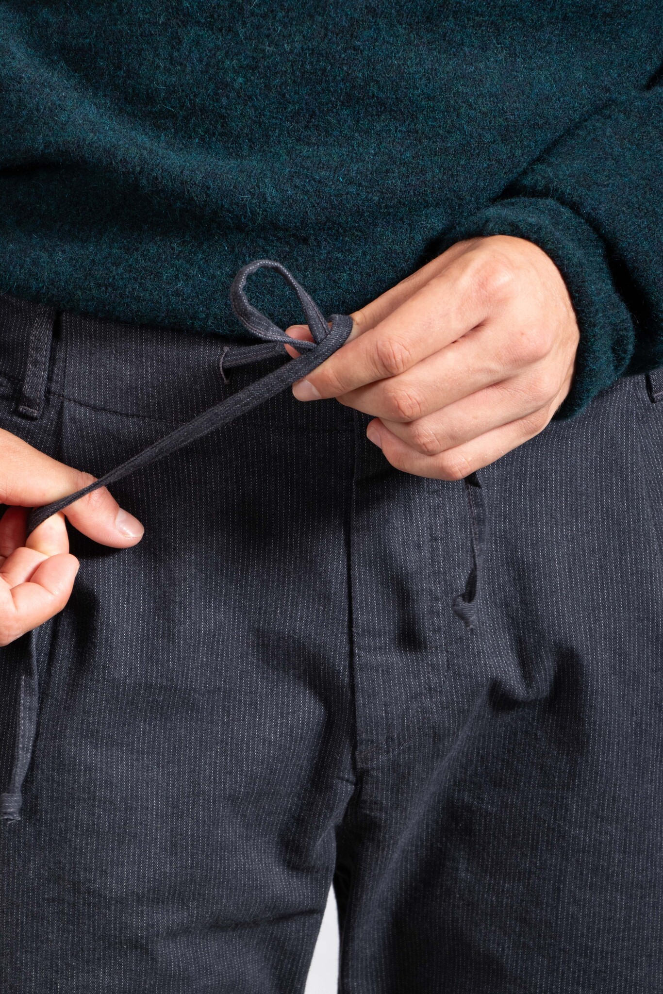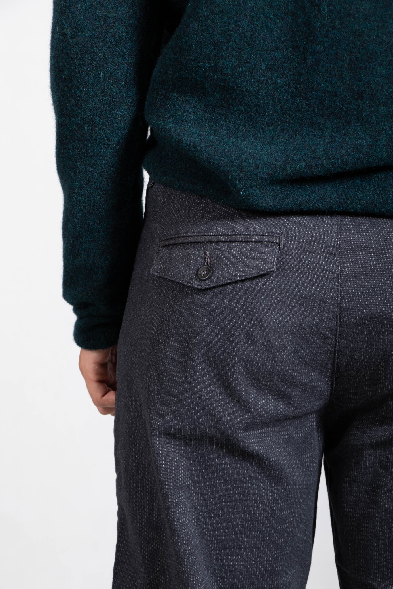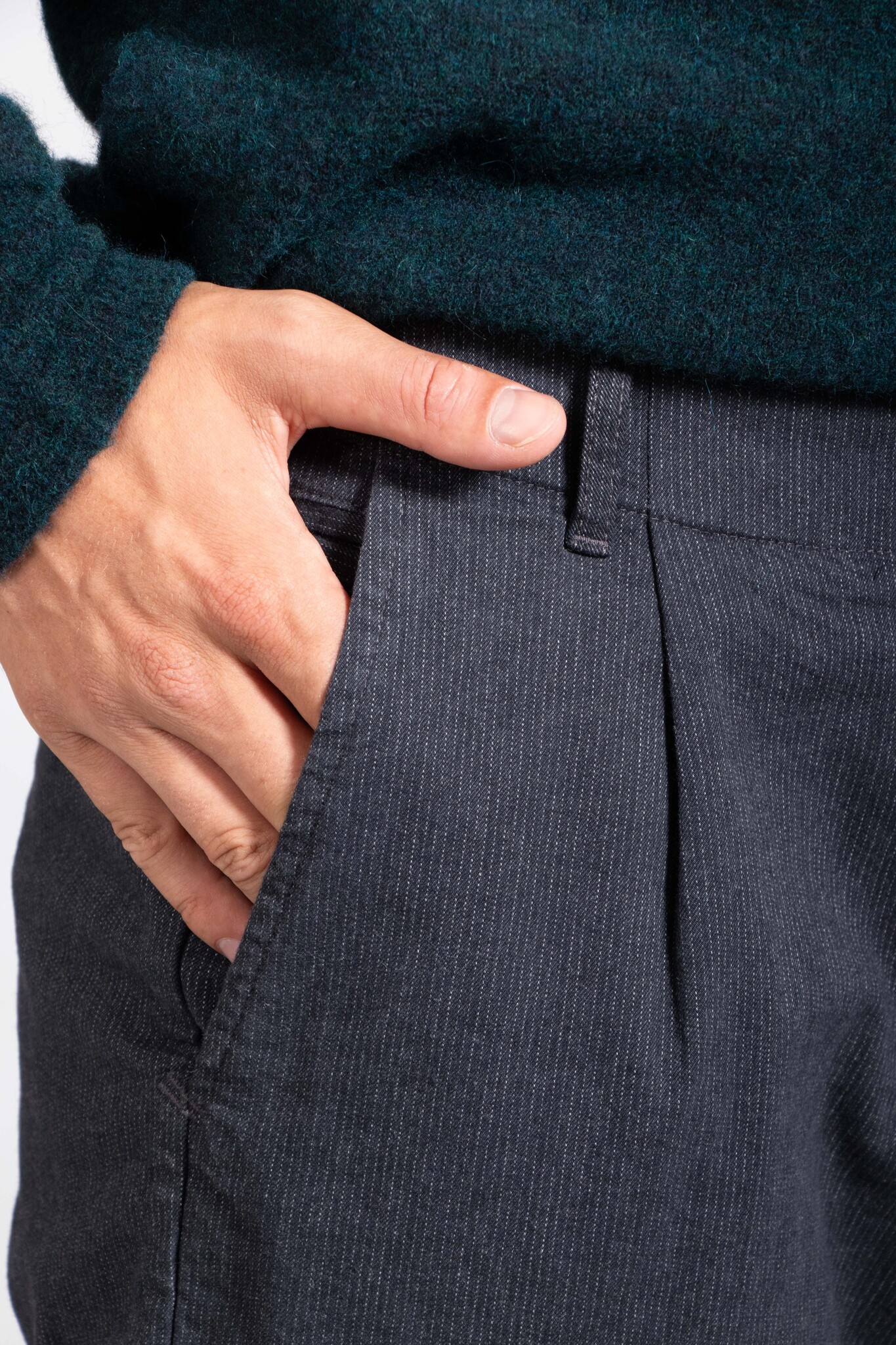 Hose mit dezentem Streifenmuster von Hannes Roether. Mit Bundfalte. Unser Model ist 192 cm groß und trägt Größe M. Lesen Sie mehr