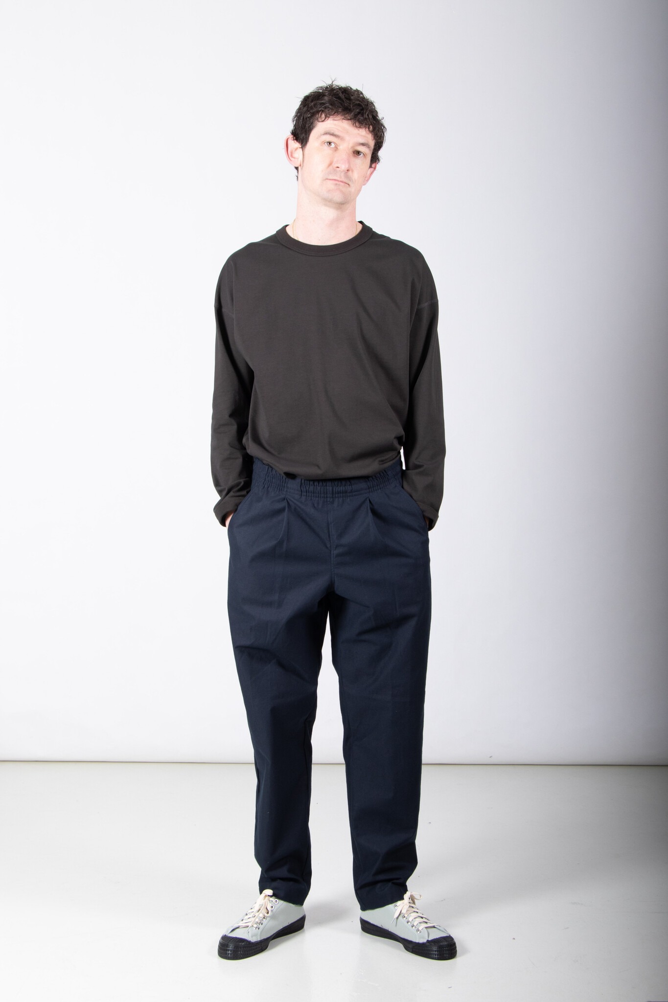 | Hose von Jackman aus Japan. Gefertigt aus einem robusten, dicht gewebten Stoff mit einer künstlichen Struktur. Bei genauem Hinsehen erkennt man kleine Einschlüsse im Stoff, die von den unbearbeiteten, biologischen Baumwollfäden stammen und dem Stoff einen einzigartigen Charakter verleihen. Speziell für große Männer hat Tadashi die Hose 10 cm länger gemacht. Unser Model ist 189 cm groß und trägt Größe L. | |
