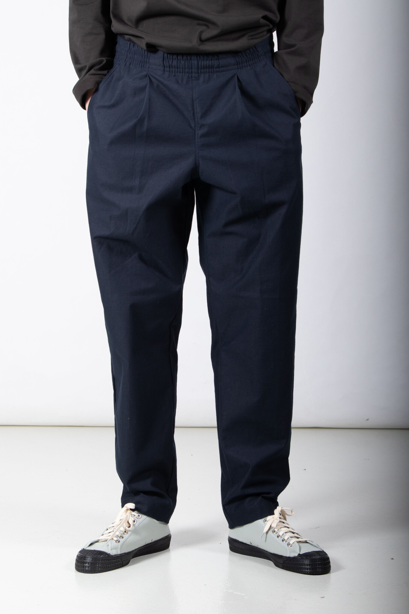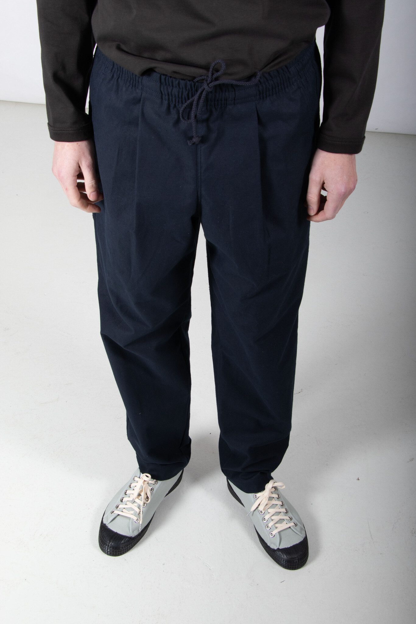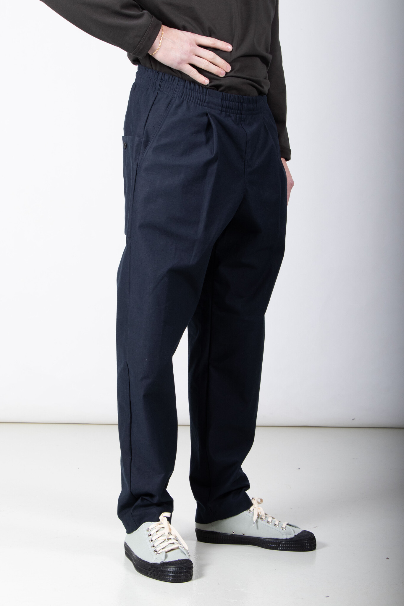 Hose von Jackman aus Japan. Gefertigt aus einem robusten, dicht gewebten Stoff mit einer künstlichen Struktur. Bei genauem Hinsehen erkennt man kleine Einschlüsse im Stoff, die von den unbearbeiteten, biologischen Baumwollfäden stammen. Lesen Sie mehr