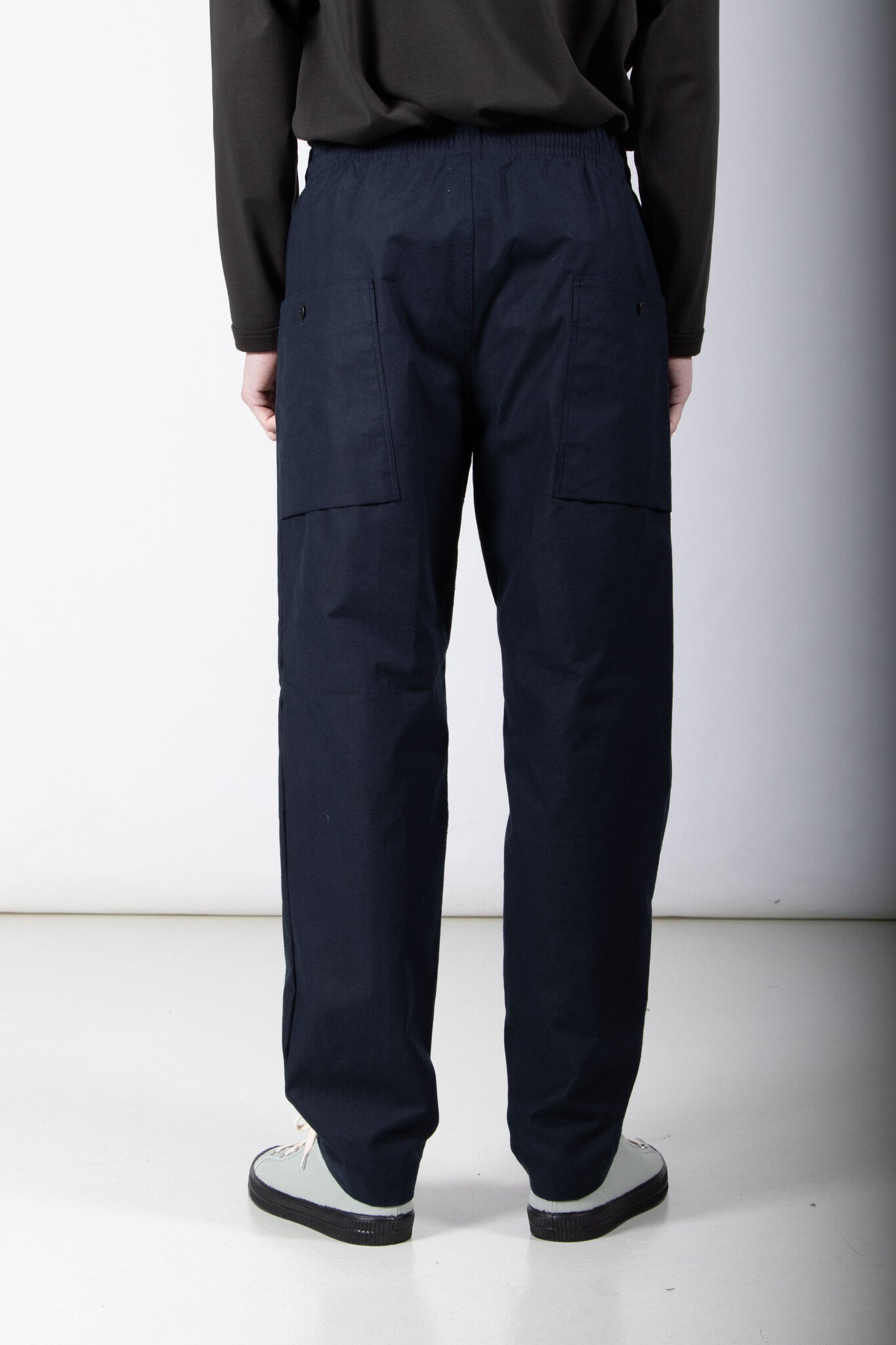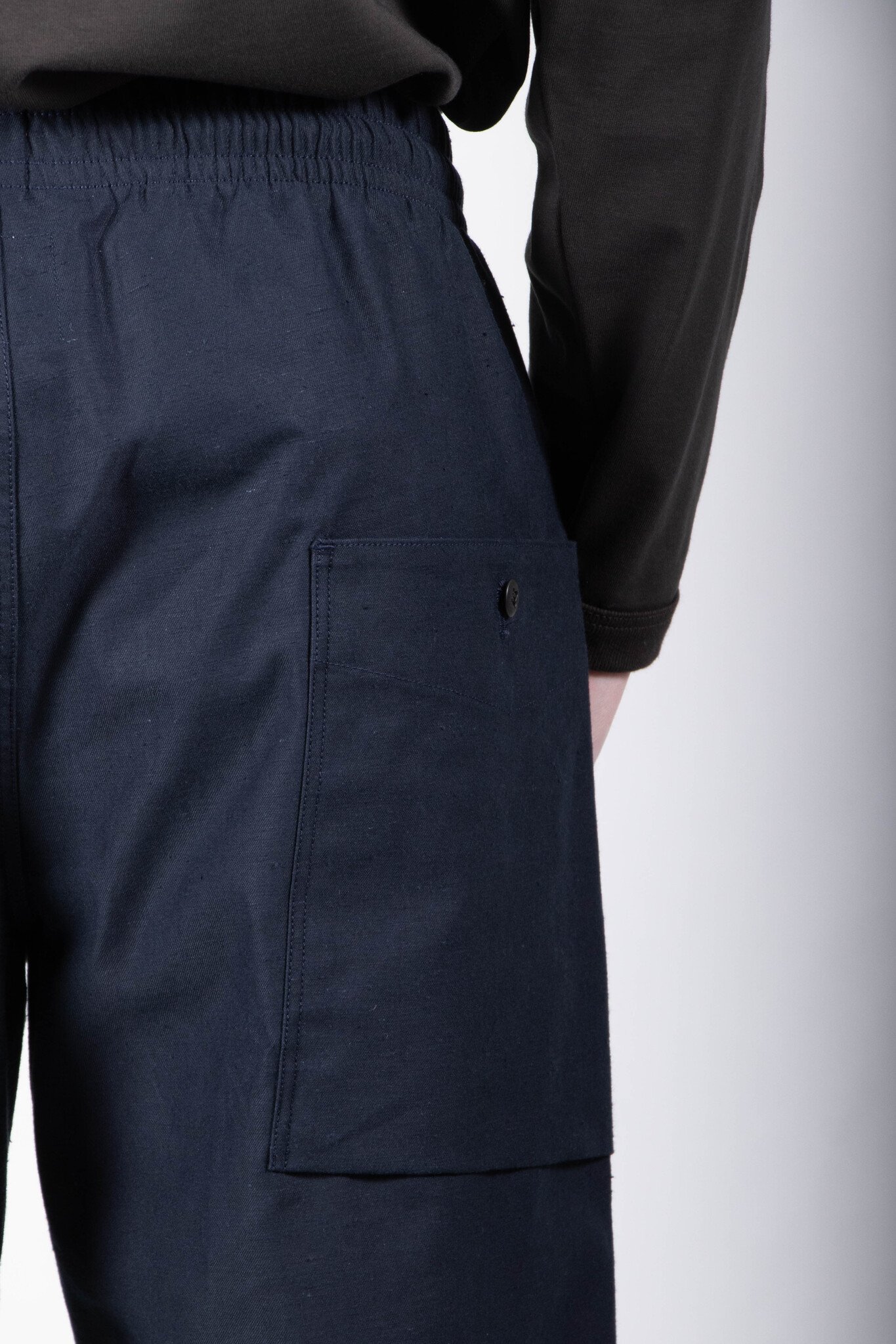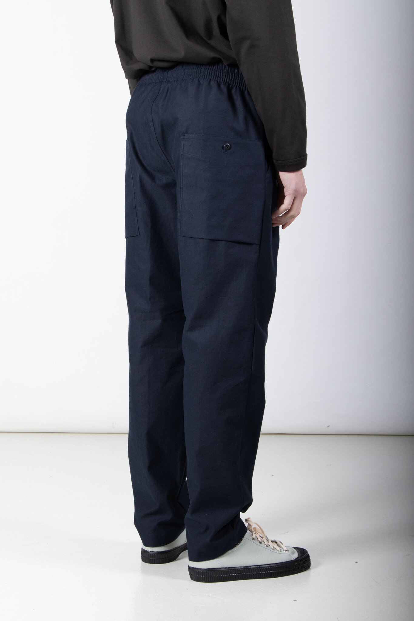 Hose von Jackman aus Japan. Gefertigt aus einem robusten, dicht gewebten Stoff mit einer künstlichen Struktur. Bei genauem Hinsehen erkennt man kleine Einschlüsse im Stoff, die von den unbearbeiteten, biologischen Baumwollfäden stammen. Lesen Sie mehr