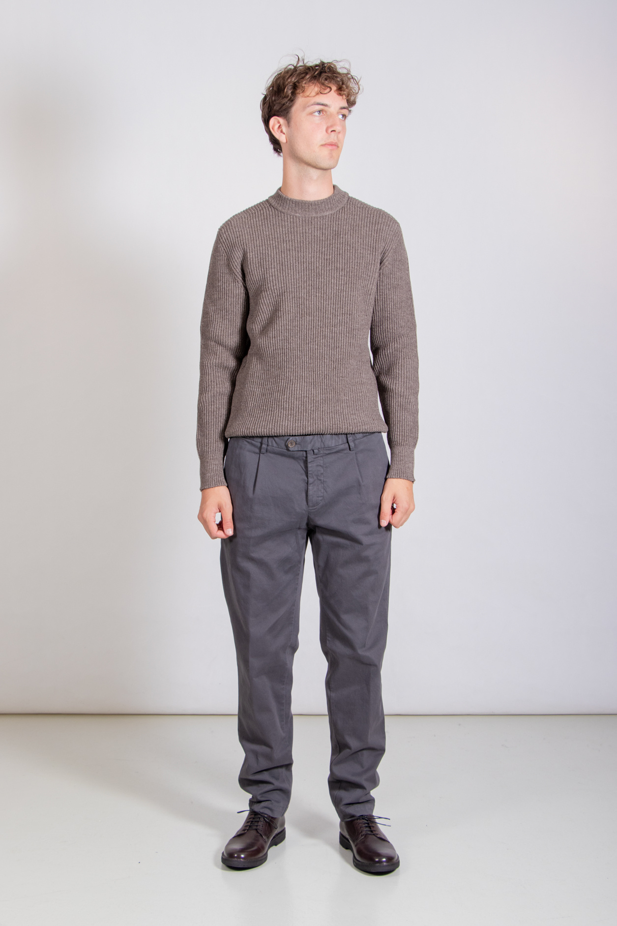 Baumwollhose von Myths, mit Bundfalte. Unser Modell ist 192 cm groß und trägt Größe 50. Lesen Sie mehr