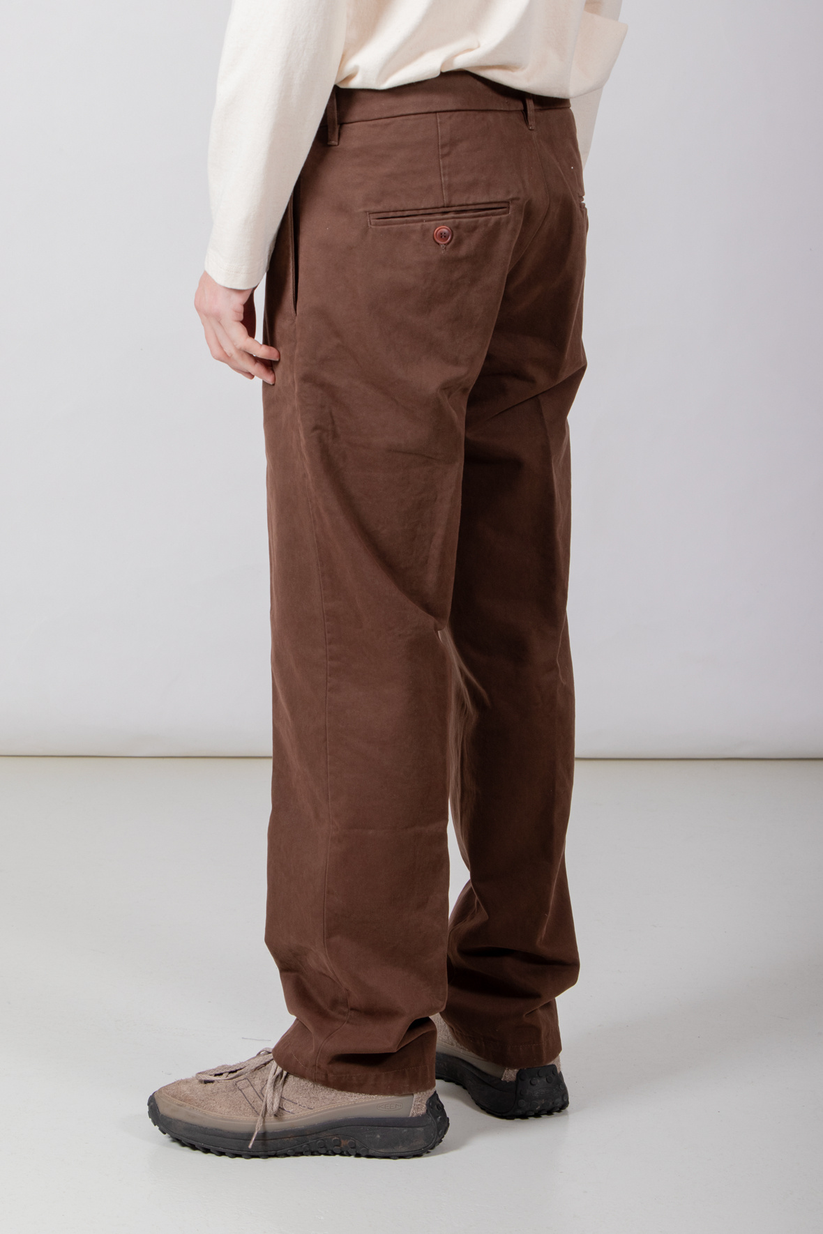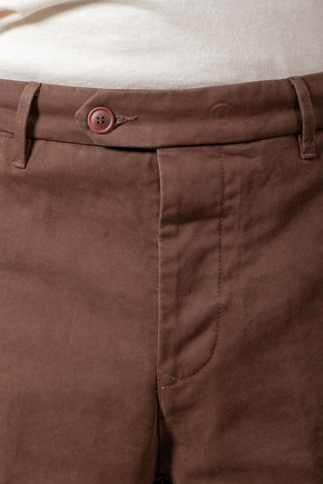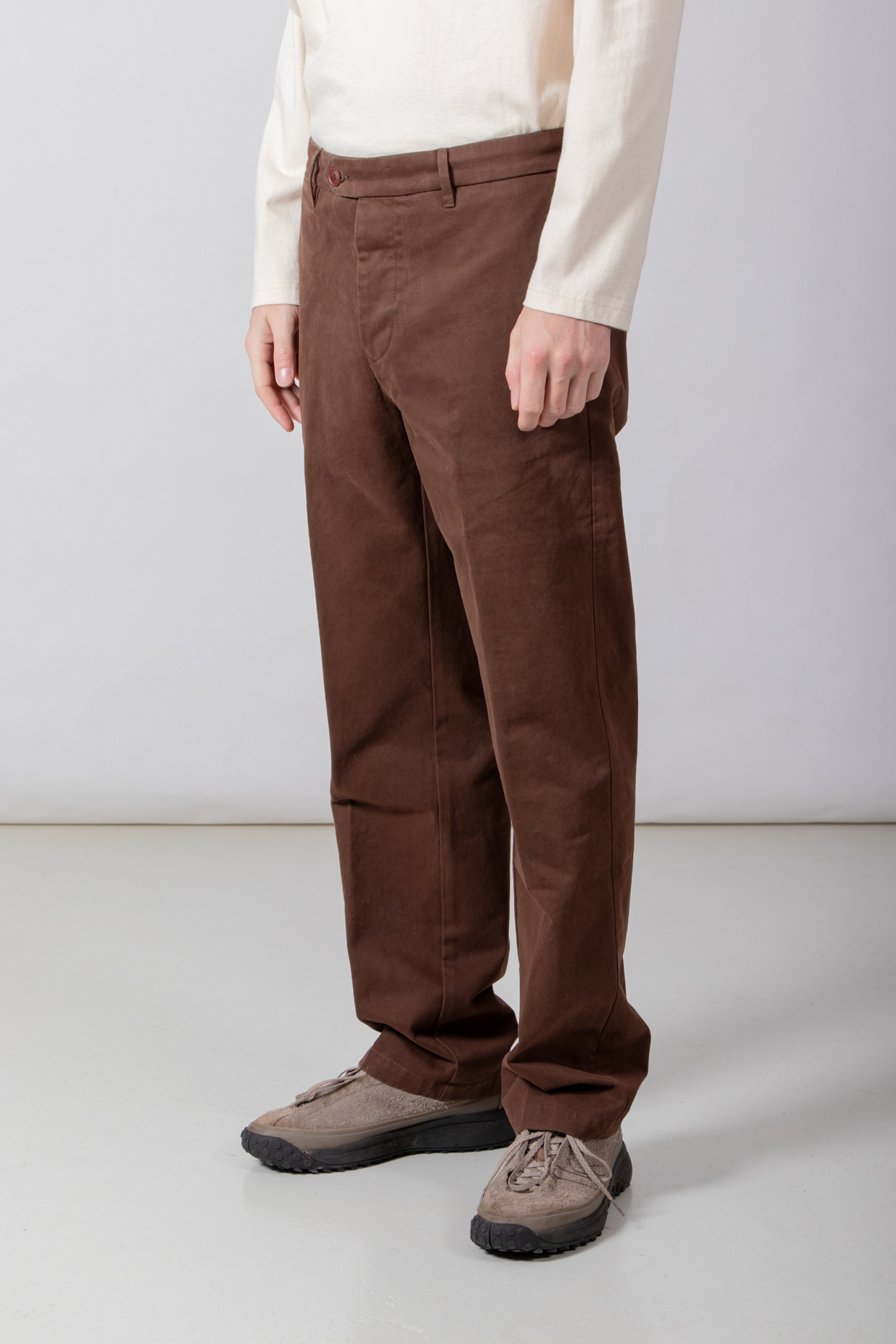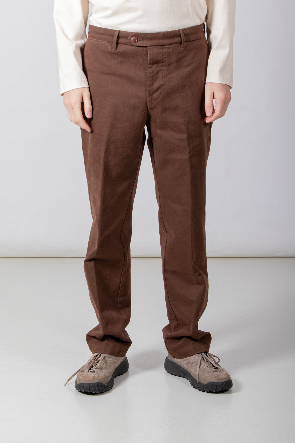 | Bekanntes Modell von Myths, in Italien aus Baumwolle mit etwas Elasthan gefertigt und mit Bundfalte versehen. Unser Modell ist 189 cm groß und trägt die Größe 50. | |