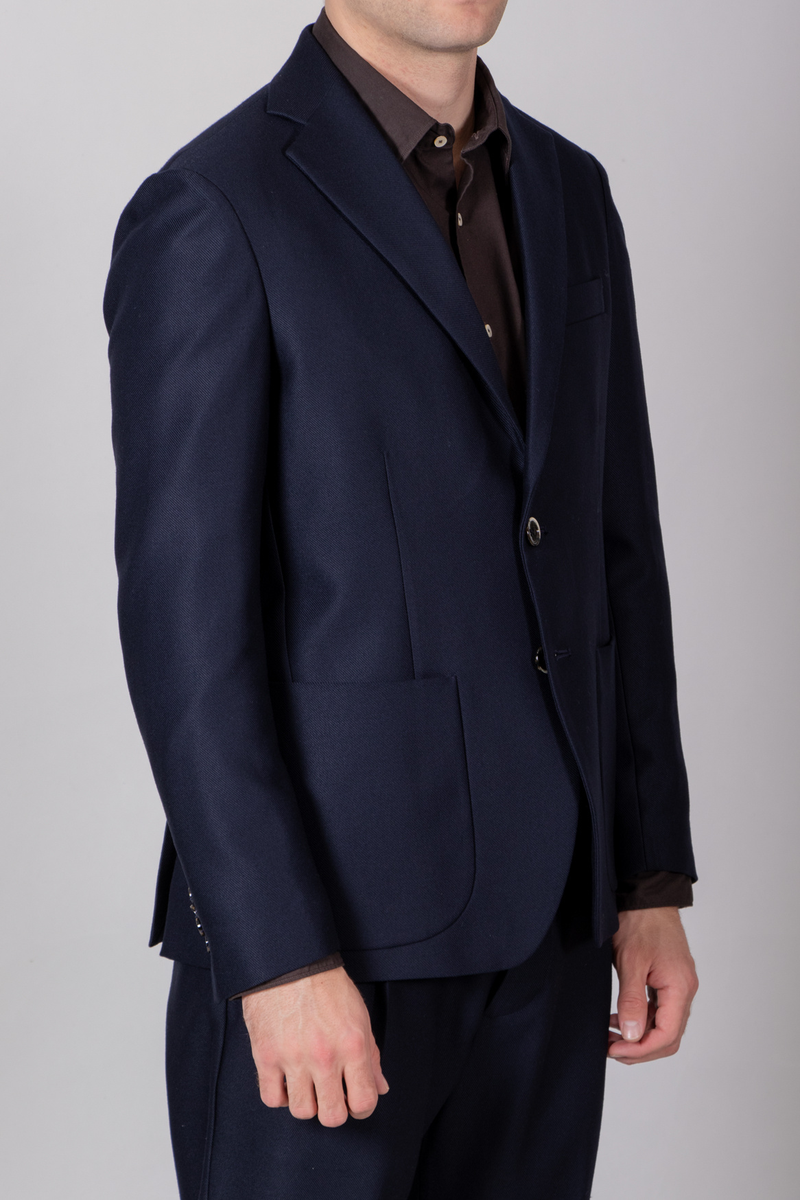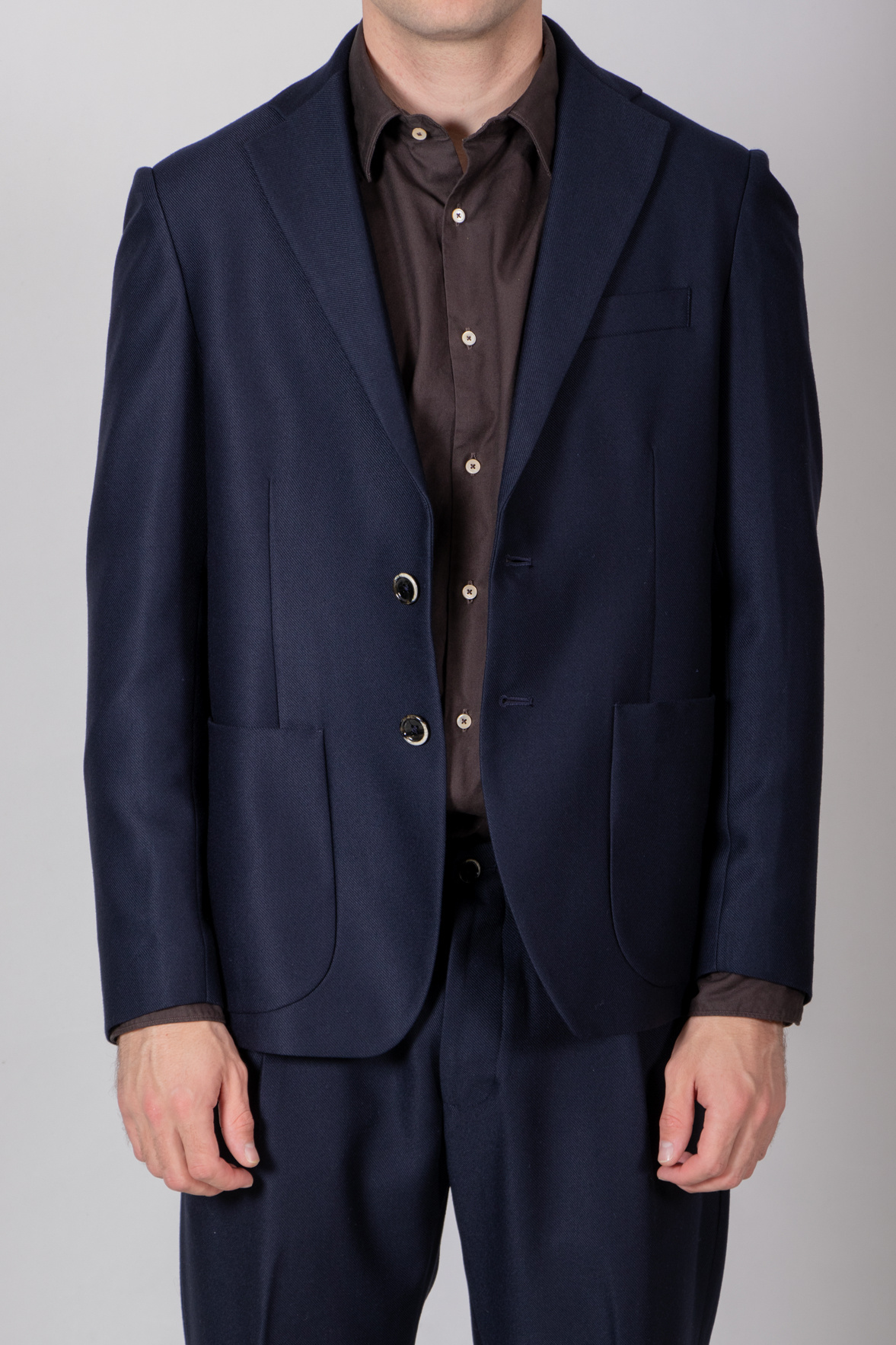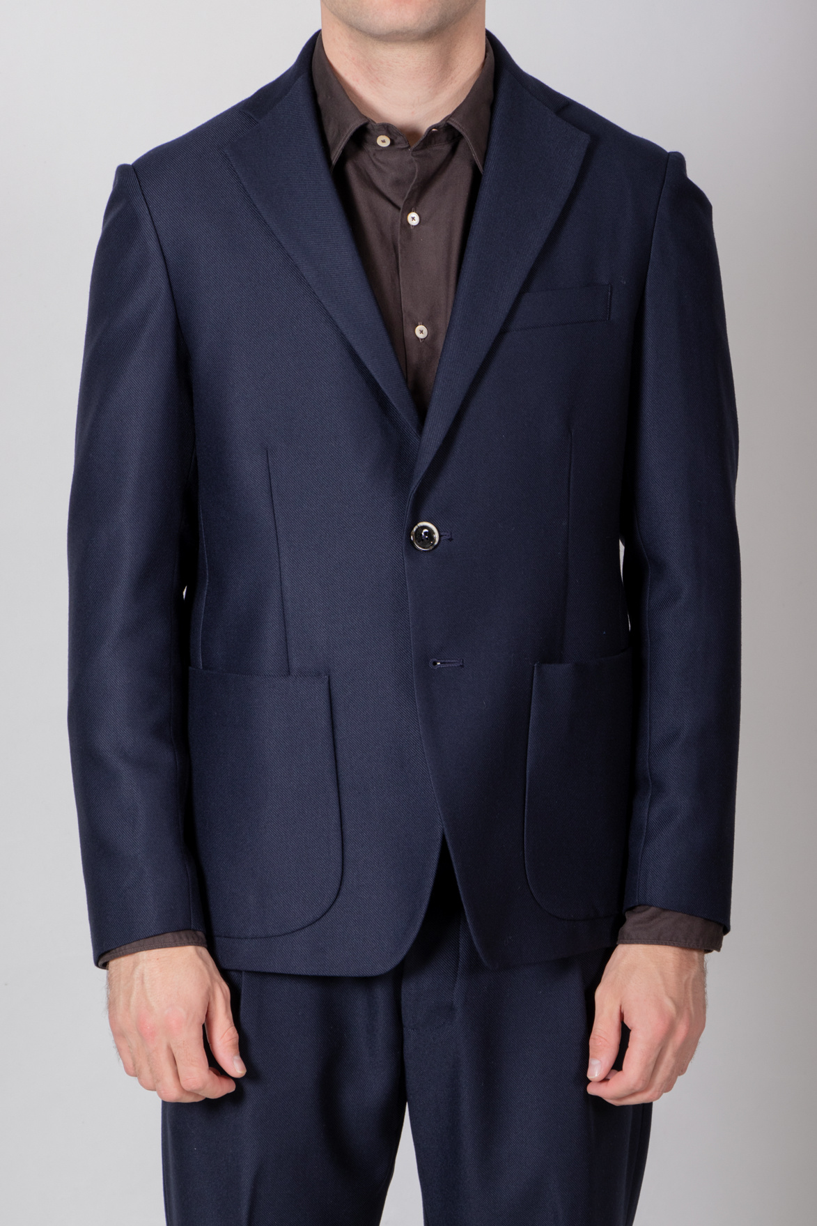 | Colbert von Nine In The Morning mit 2-Knopf-Verschluss und aufgesetzten Taschen. Unser Modell ist 189 cm groß und trägt die Größe L. | |
