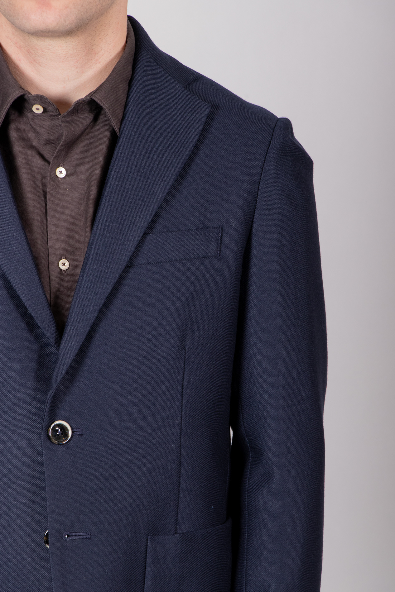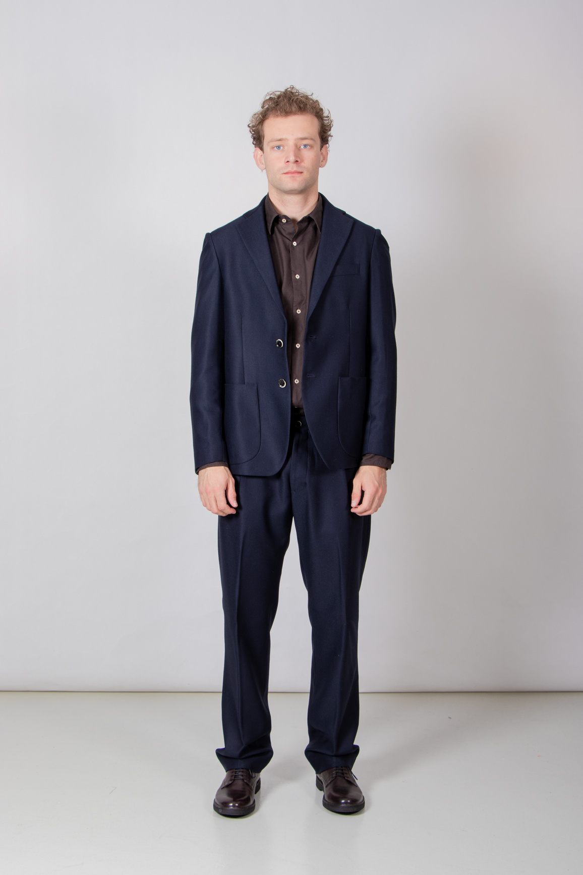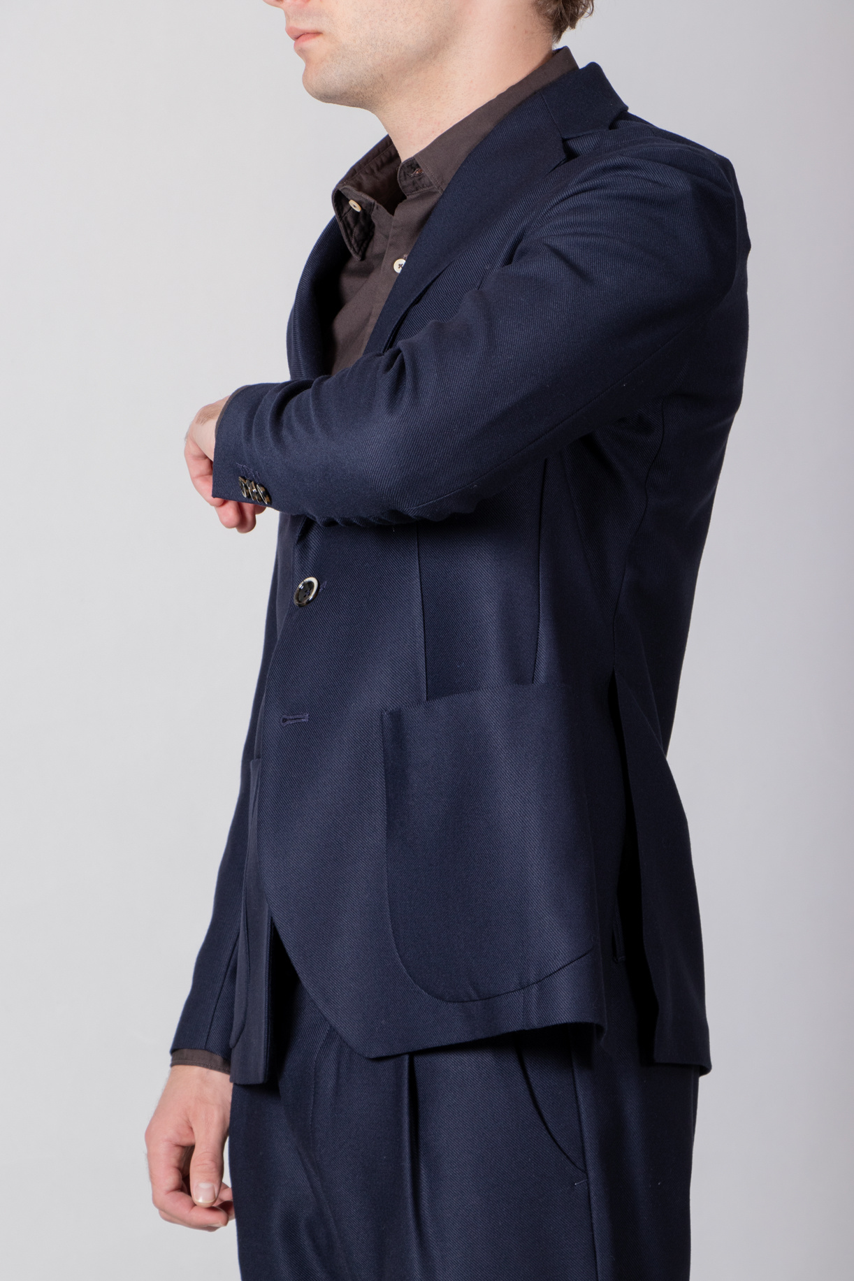 | Colbert von Nine In The Morning mit 2-Knopf-Verschluss und aufgesetzten Taschen. Unser Modell ist 189 cm groß und trägt die Größe L. | |