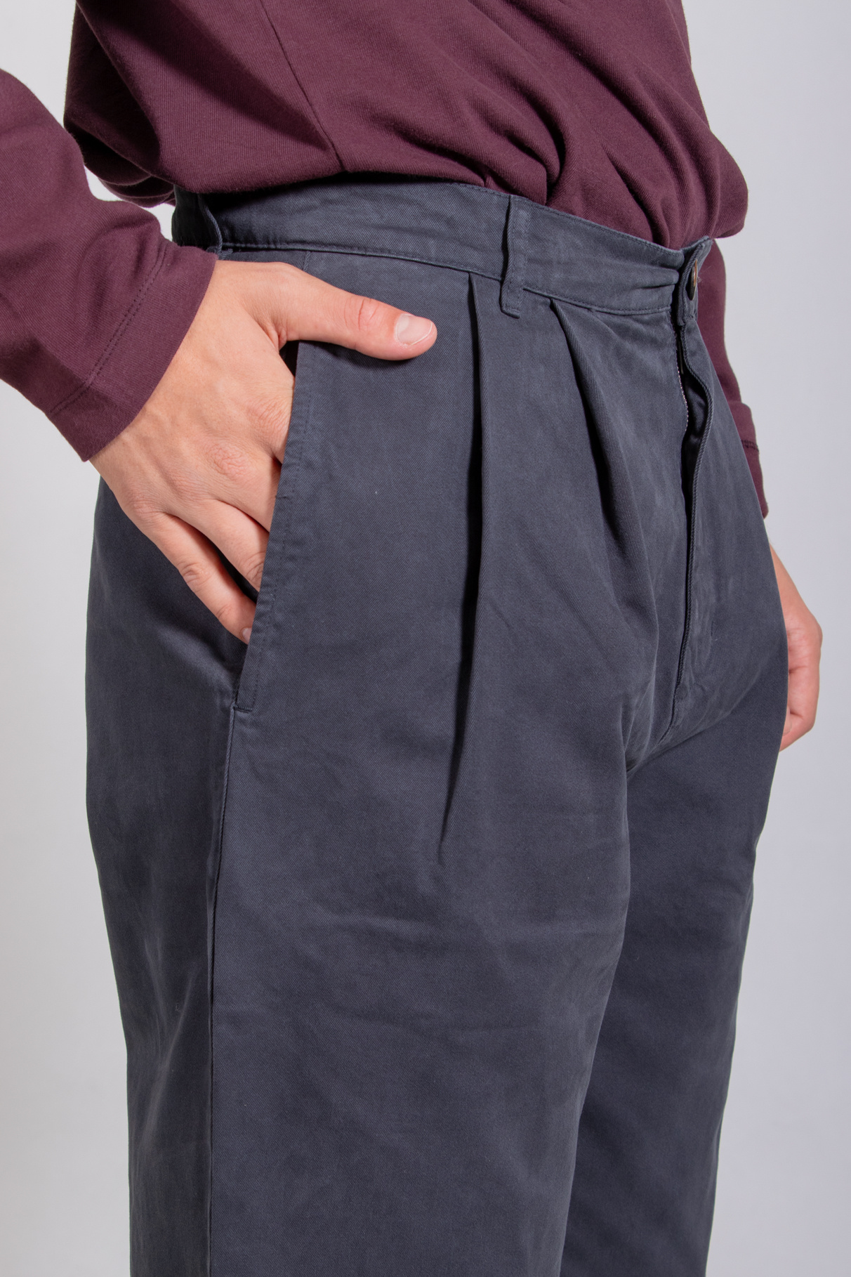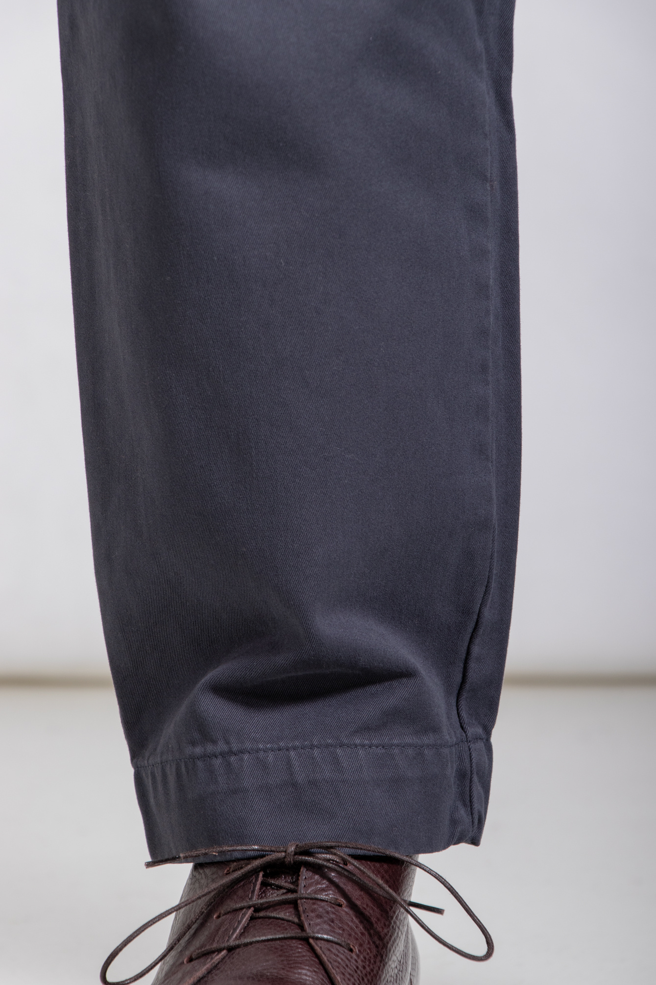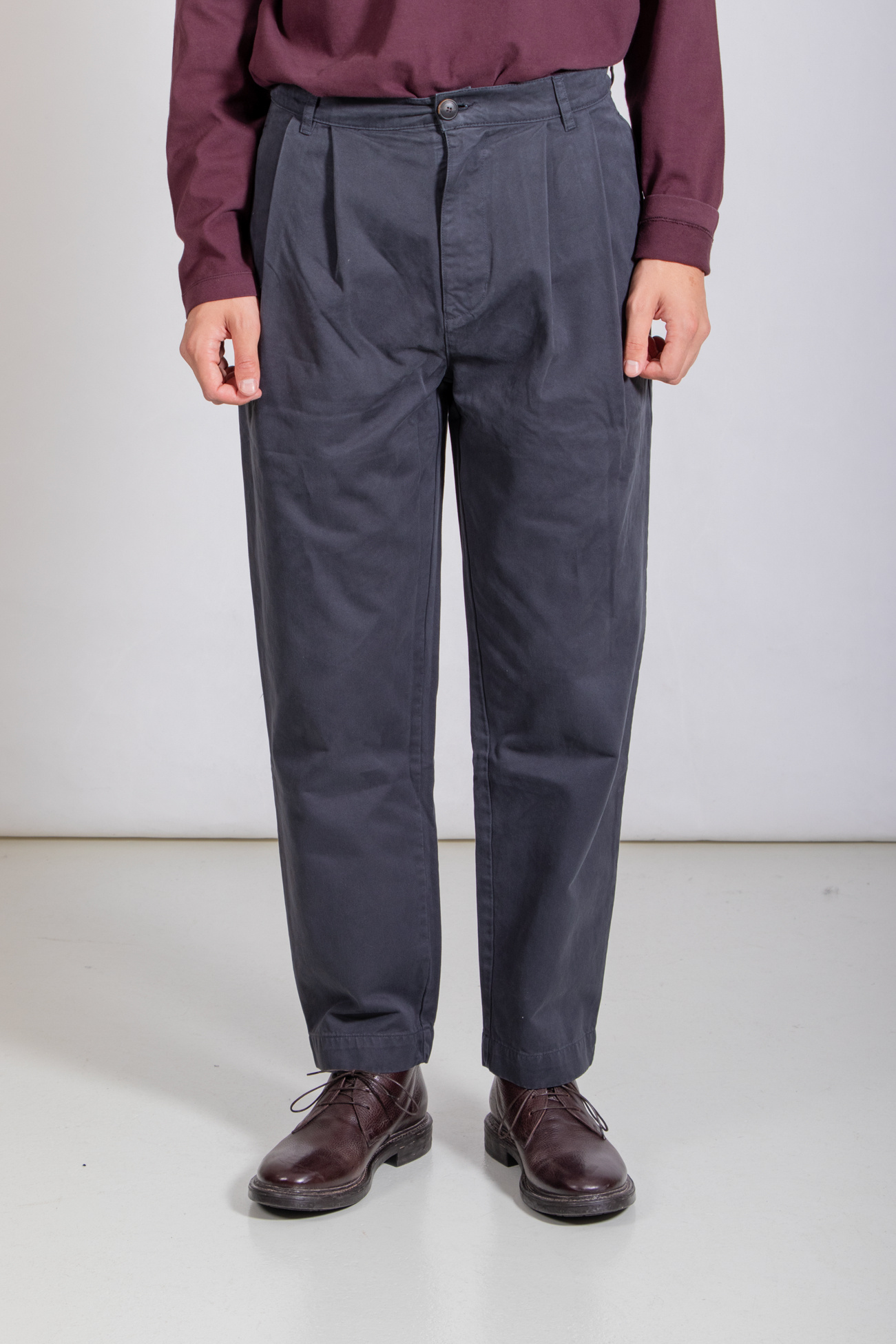 Baumwollhose von Parages, in Portugal aus einem leichten Twill gefertigt. Unser Model ist 192 cm groß und trägt Größe 32. | |