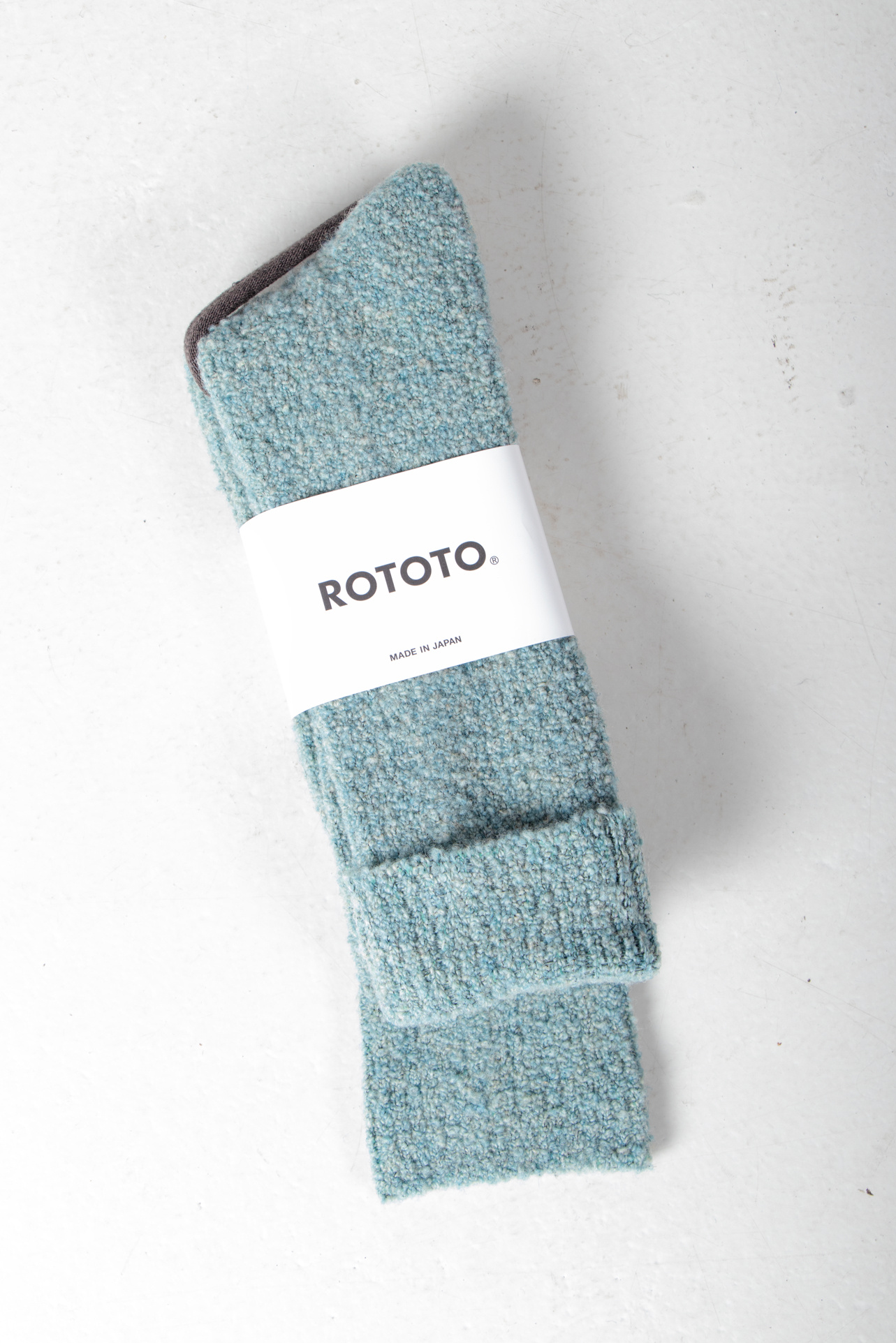 Socke von RoToTo aus Japan, gefertigt aus einer strapazierfähigen Bouclé-Qualität aus überwiegend Merinowolle. Lesen Sie mehr