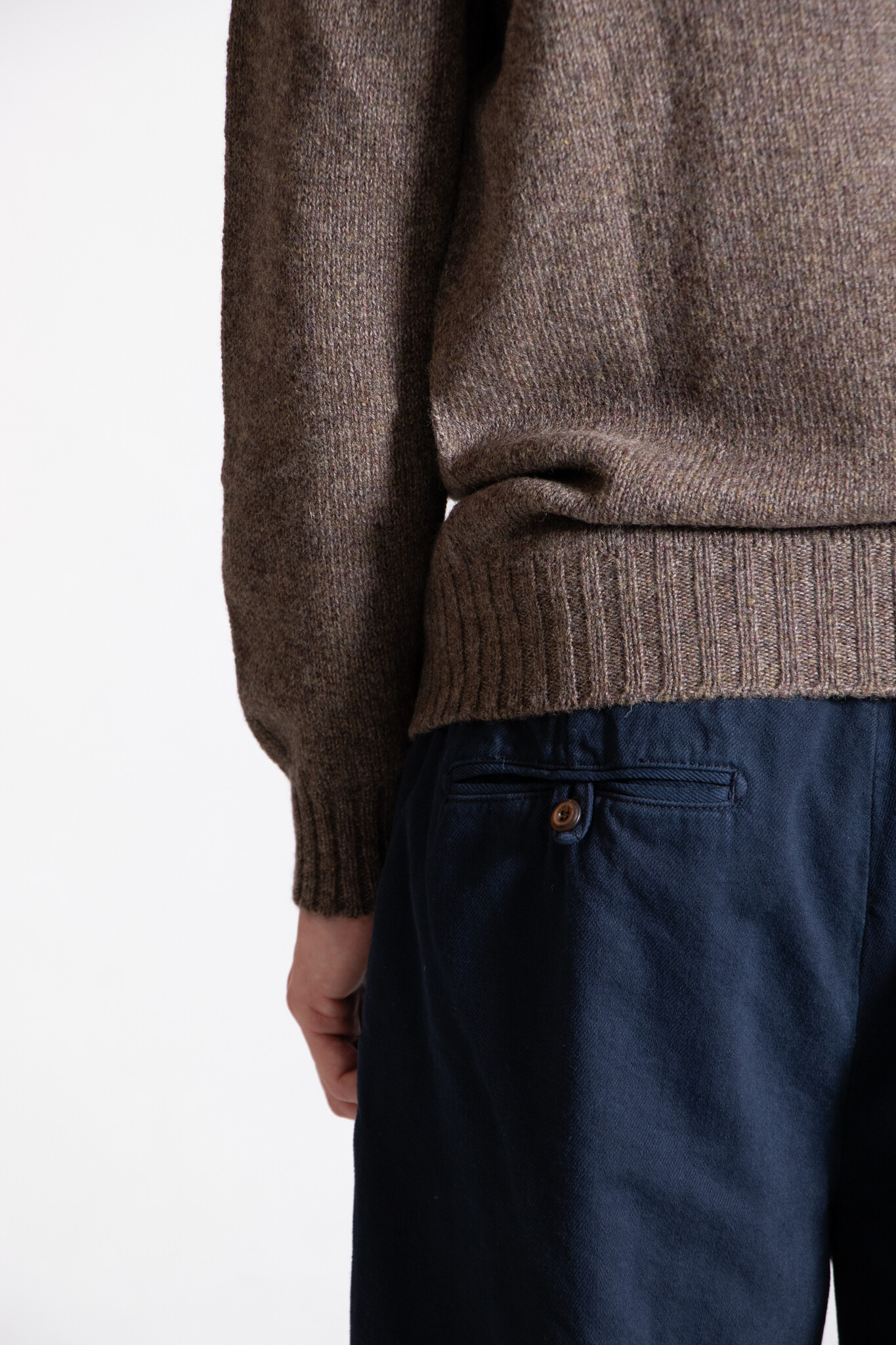 Pullover von Scaglione aus Italien. Hergestellt aus 100% Merinowolle mit einem einzigartigen Detail im vorderen Saum. Unser Modell ist 189 cm groß und trägt die Größe L. Lesen Sie mehr