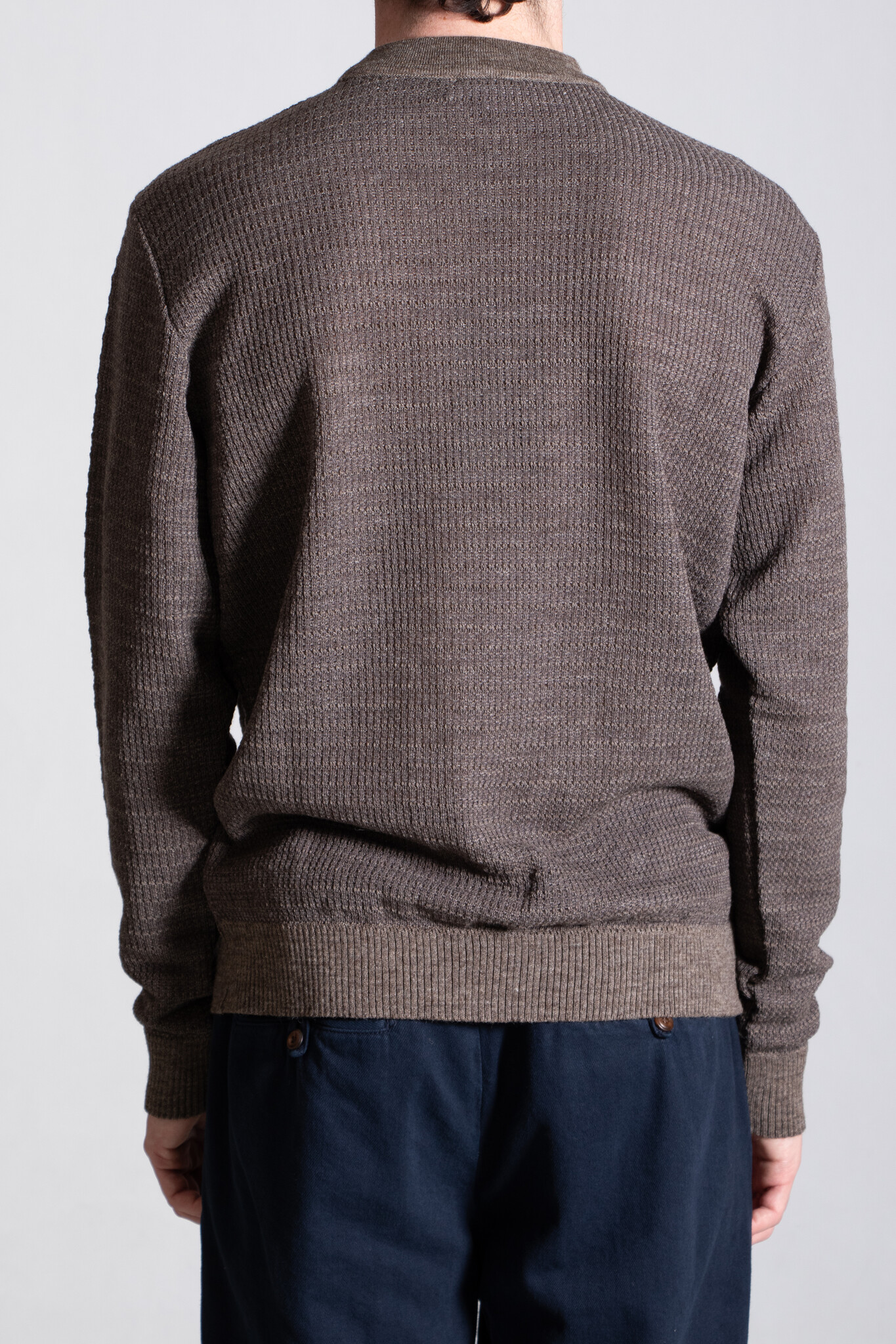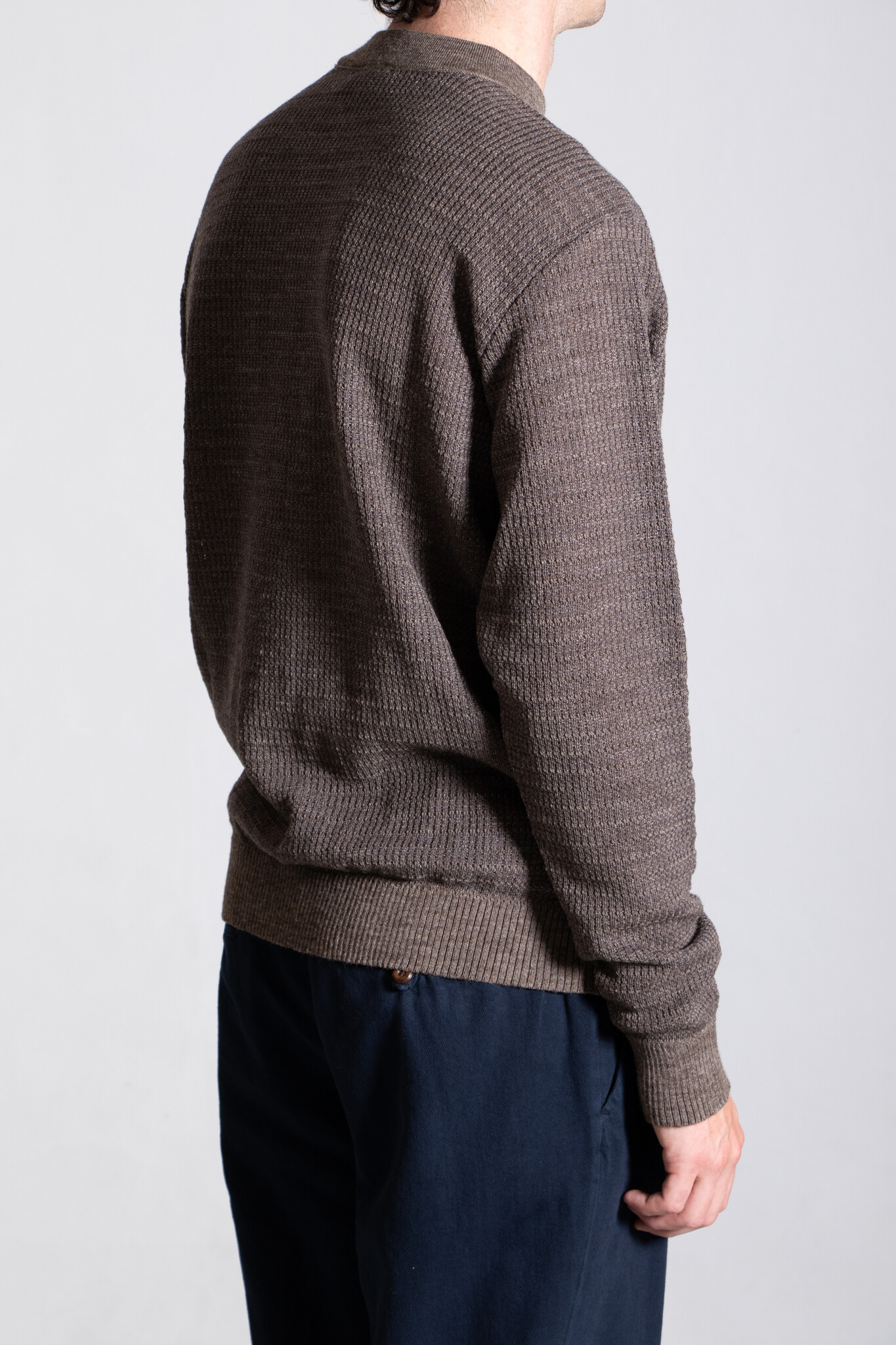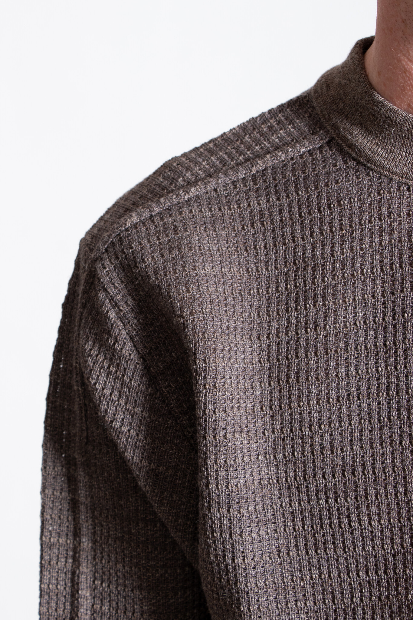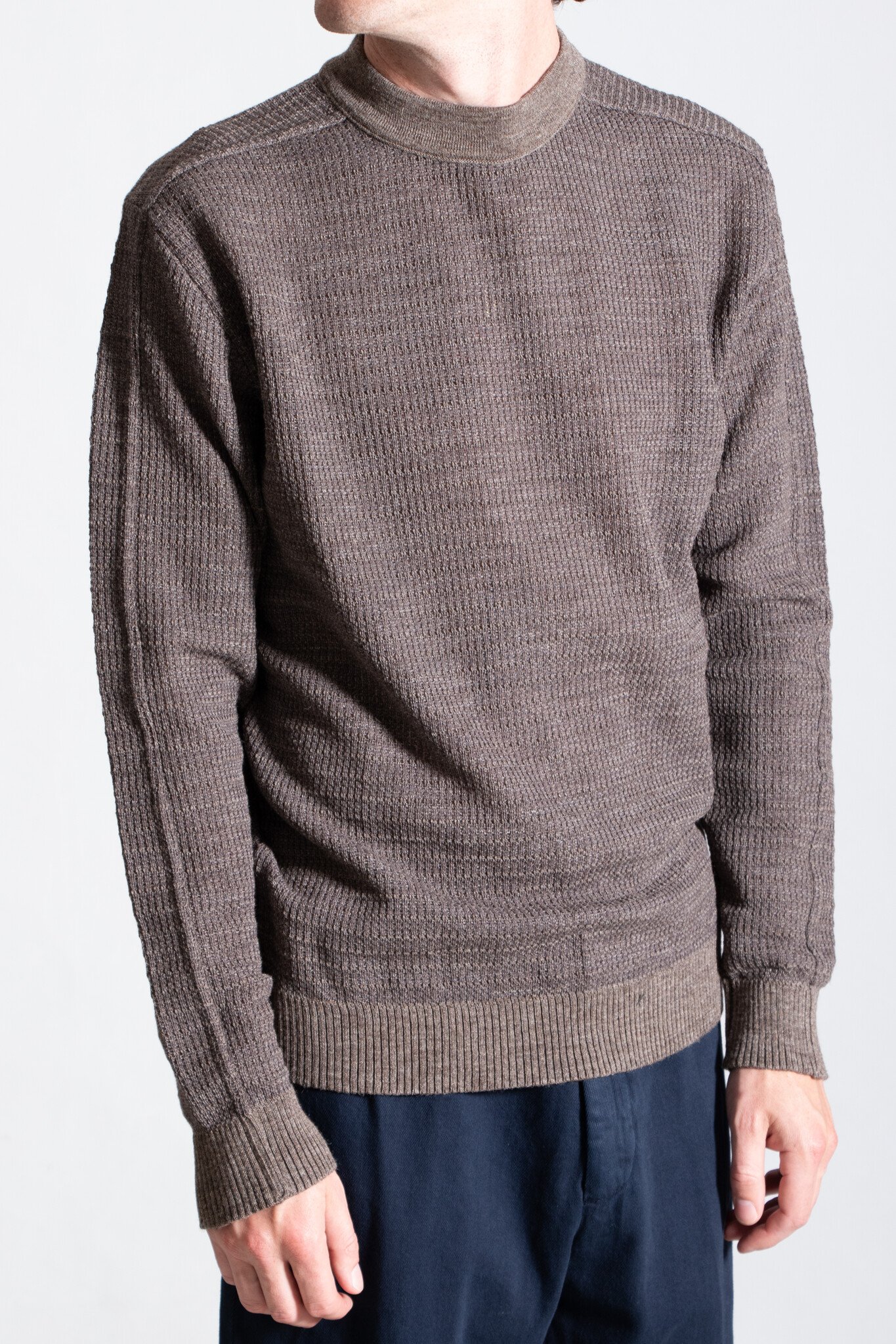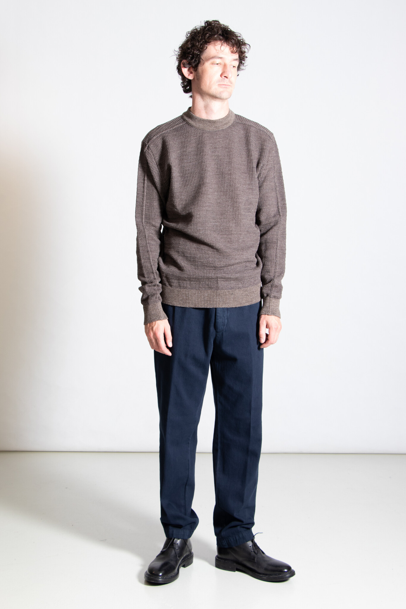 S.N.S. Herning Pullover aus Dänemark. Gestrickt aus Merinowolle mit einem kleinen rechteckigen Muster. Unser Model ist 189 cm groß und trägt Größe L. | |