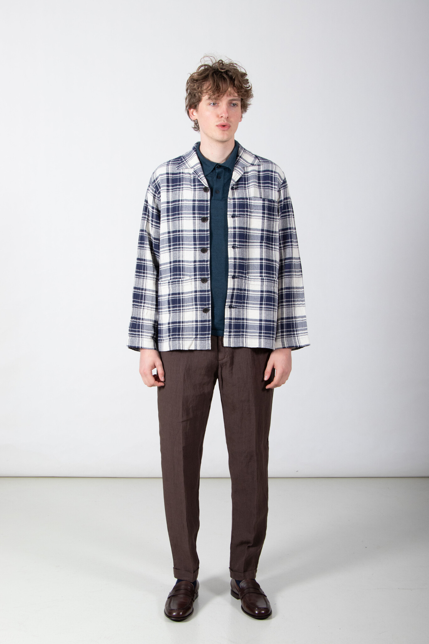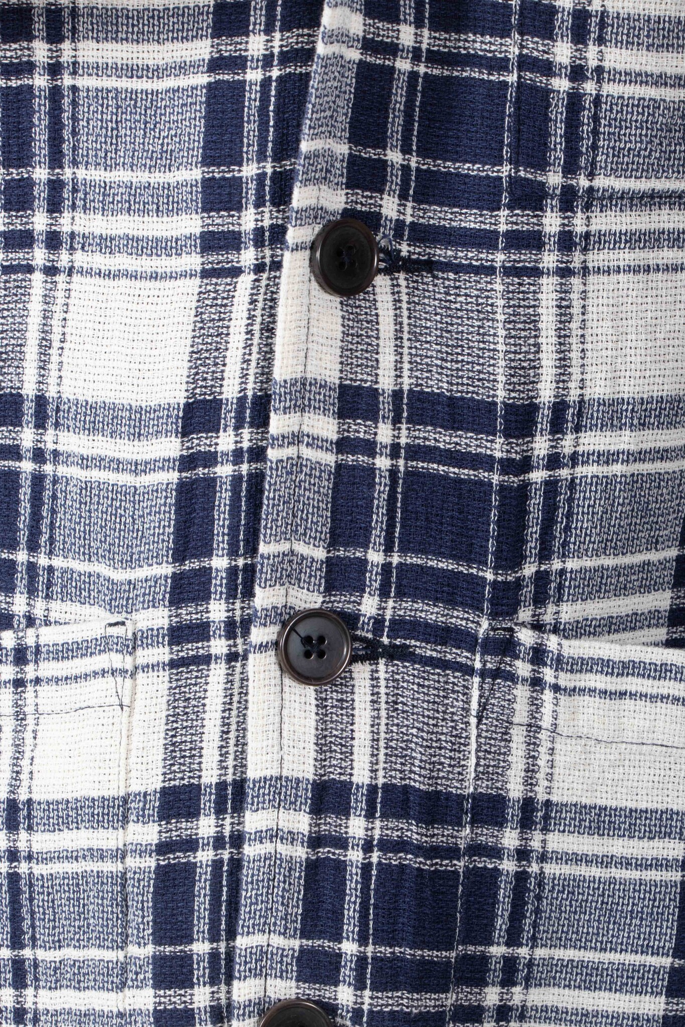 | Jacke von Universal Works mit einem geraden Schnitt, ausgestattet mit 3 Taschen: zwei an der Hüfte und eine auf der Brust. Unser Model ist 189 cm groß und trägt Größe L. | |
