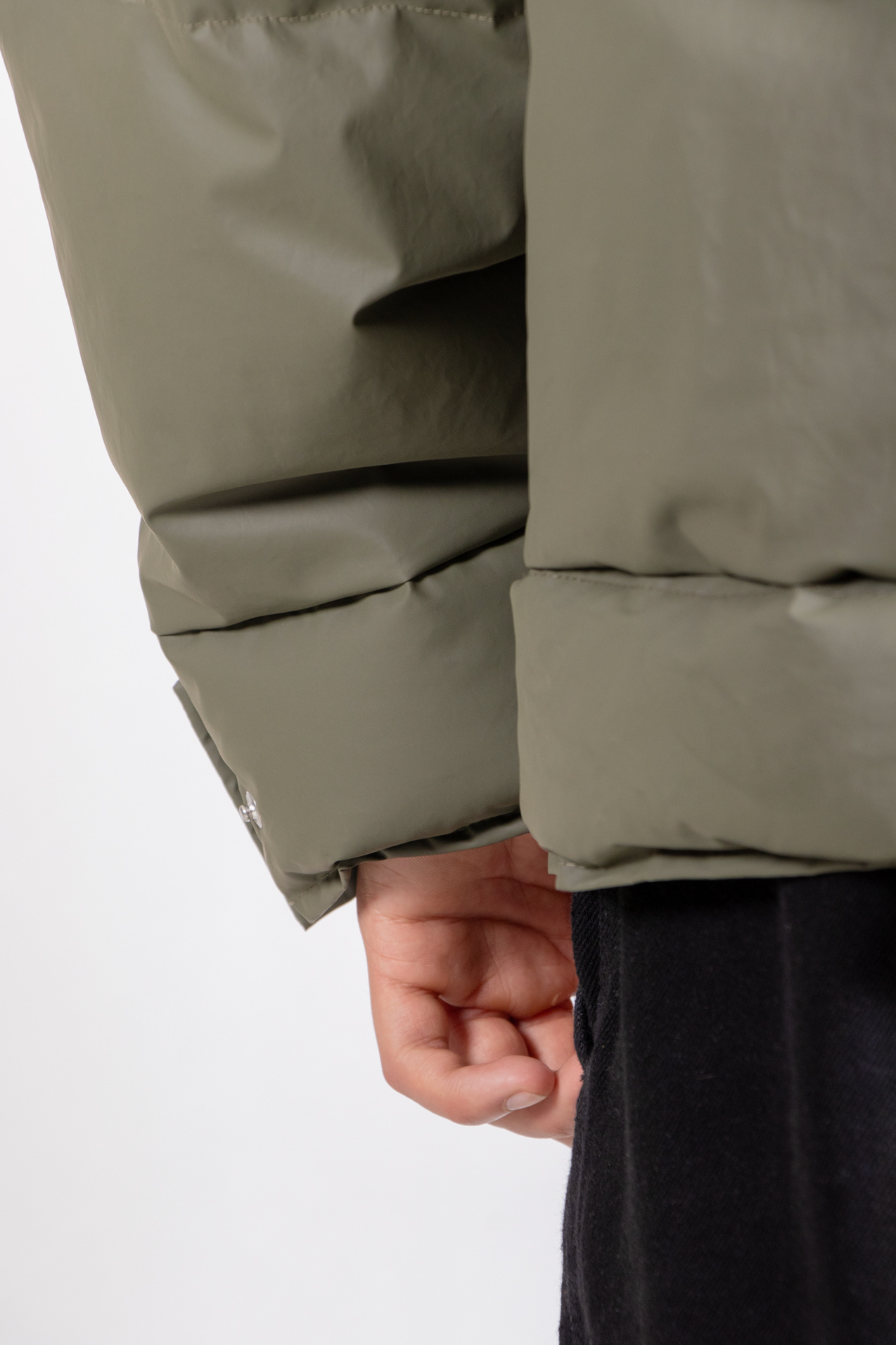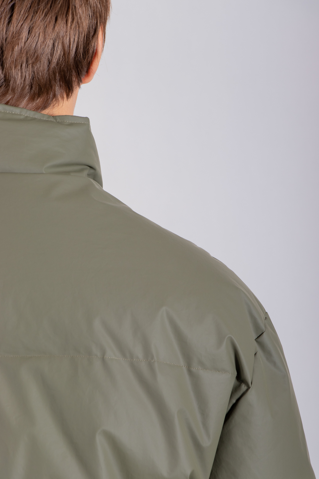 Voluminous coat from Aeterno Studio. Made in Italy from cotton with a polyurethane coating. Our model is 192 cm tall and wears size L. Read more