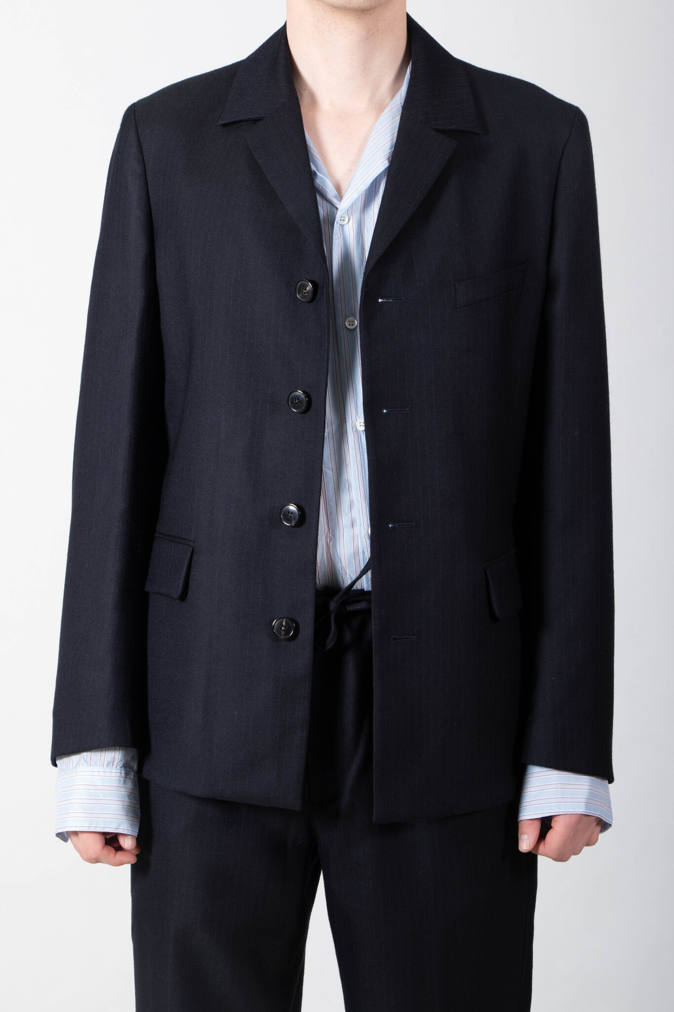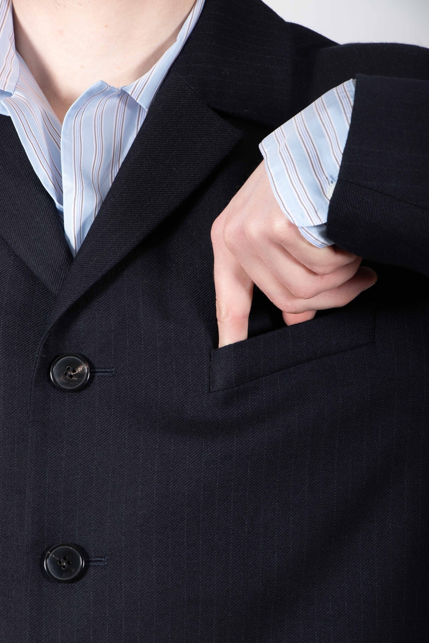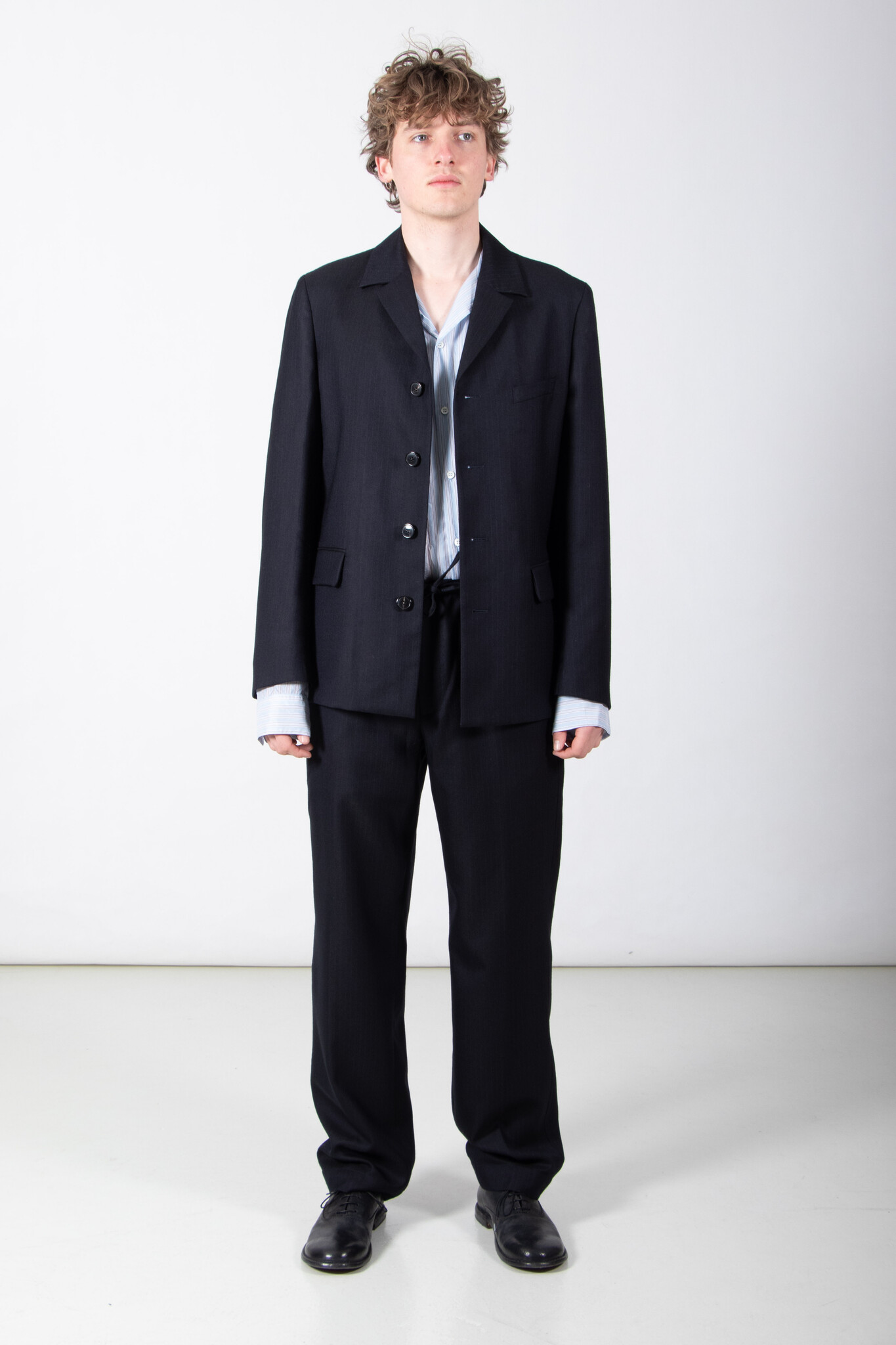 Dries van Noten blazer, made from a wool pinstripe fabric by the Scottish manufacturer Lovat Mill from Hawick. Our model is 189 cm tall and wears a size M. Read more