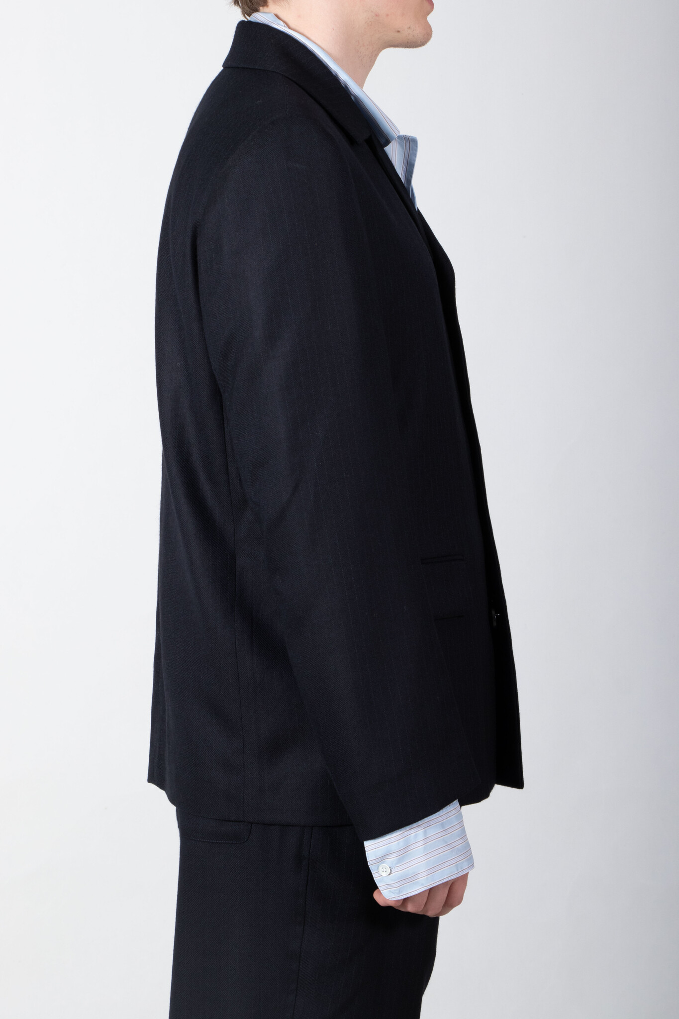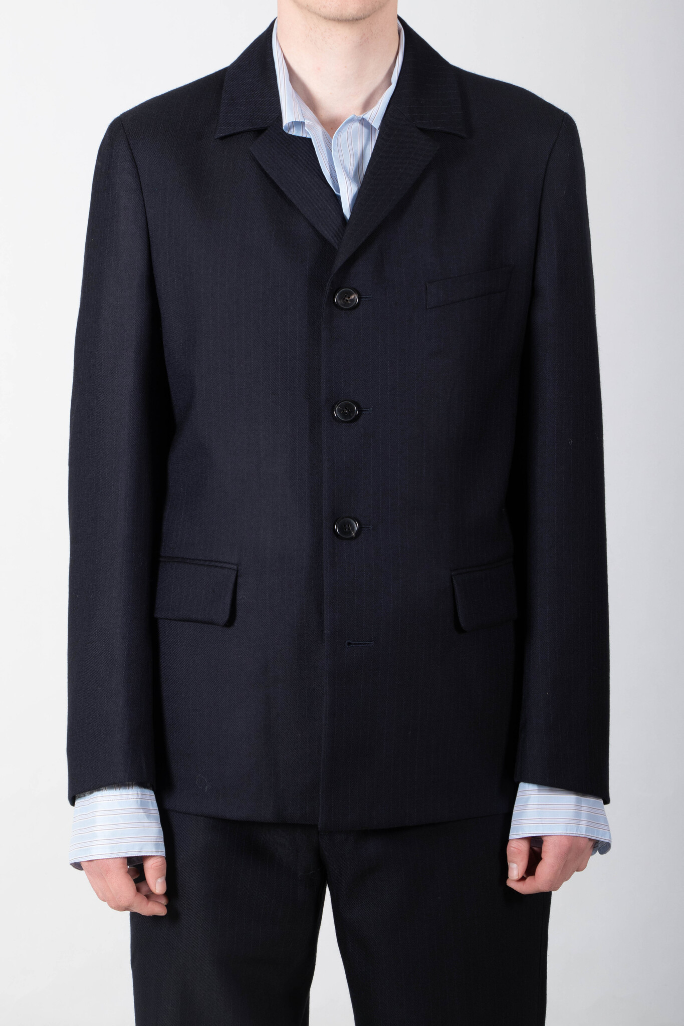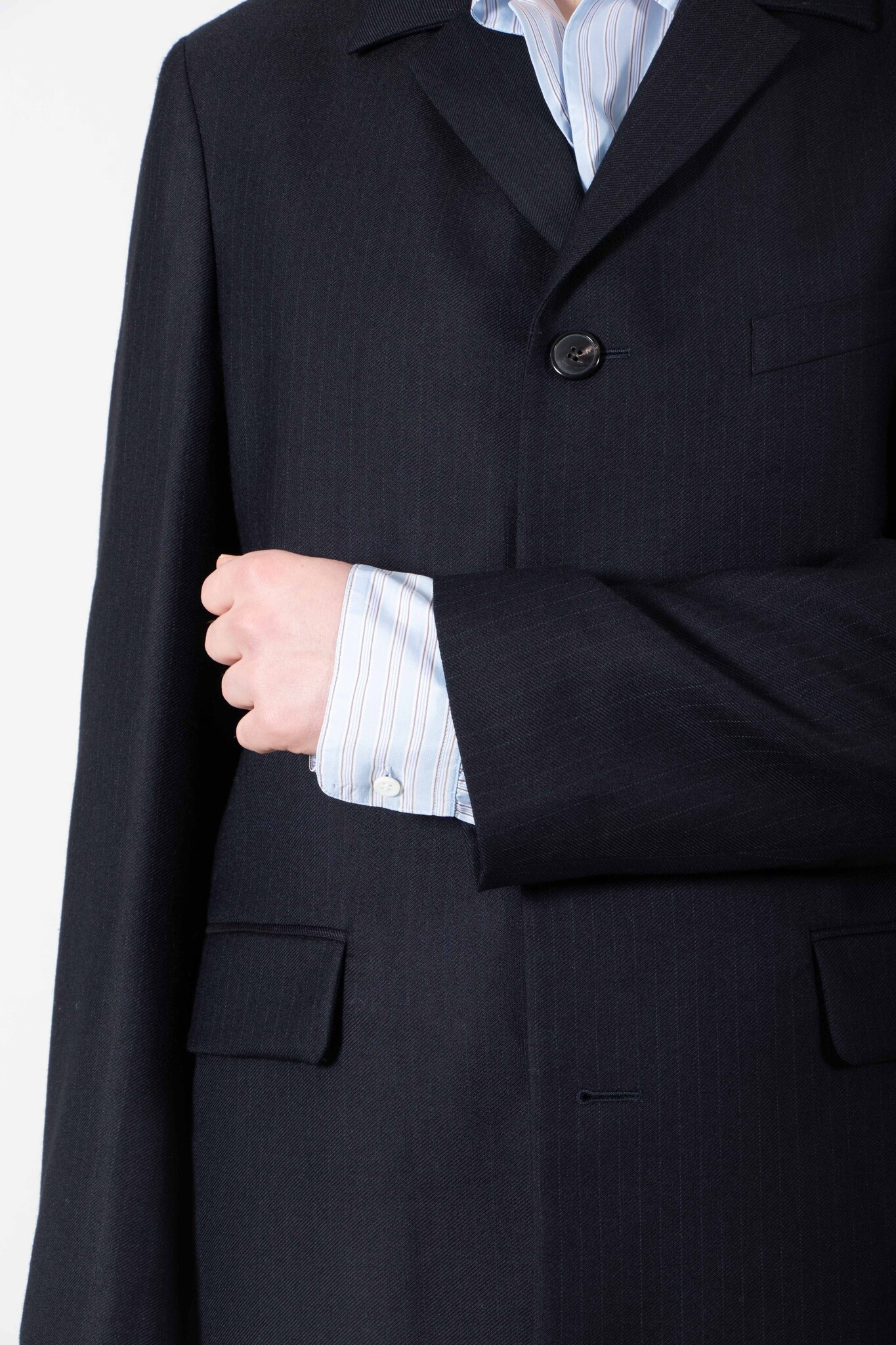 Dries van Noten blazer, made from a wool pinstripe fabric by the Scottish manufacturer Lovat Mill from Hawick. Our model is 189 cm tall and wears a size M. Read more