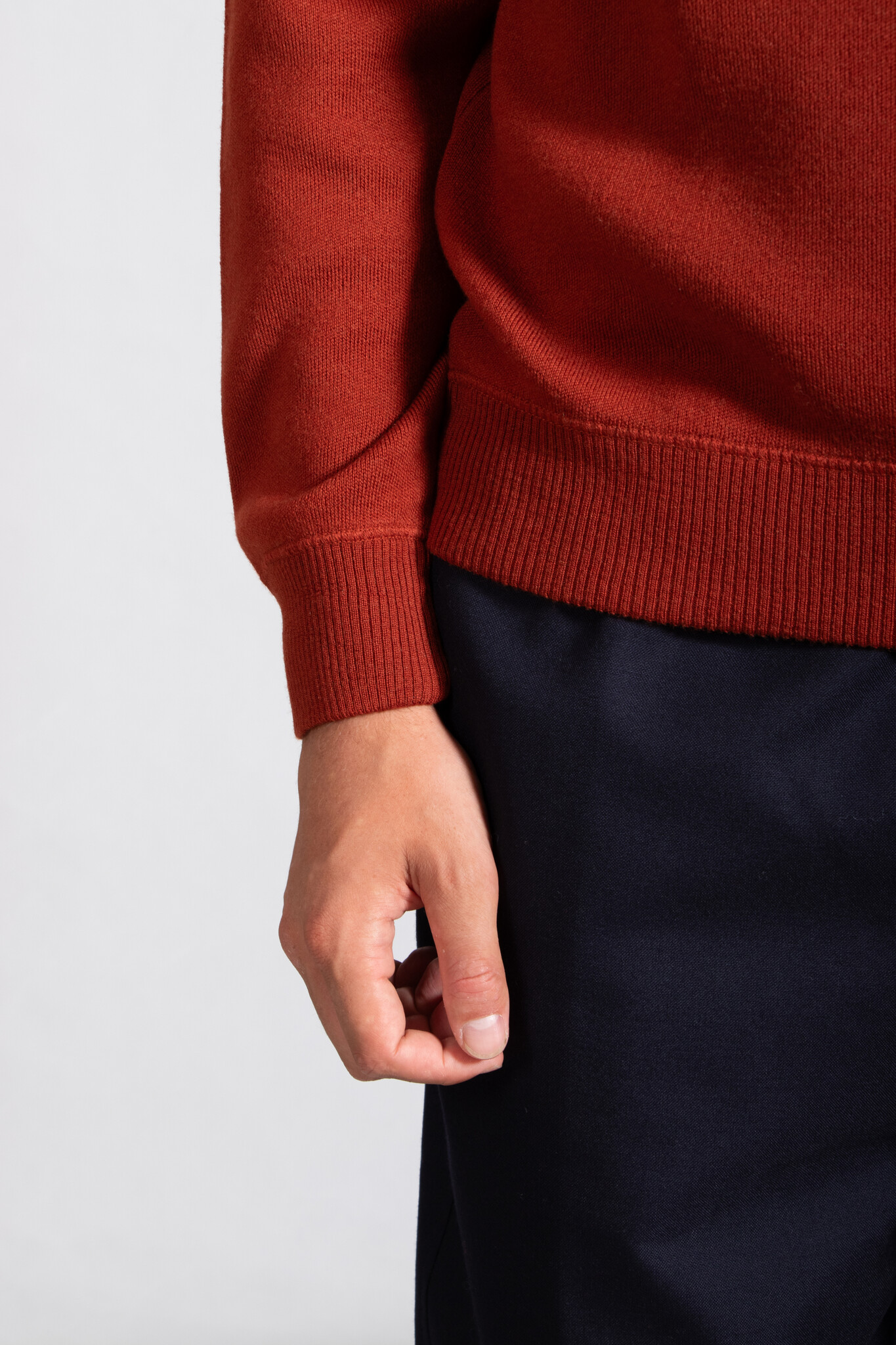 Knitted sweater by Gallia, made by Mario from merino wool. Our model is 192 cm tall and wears size 50. Read more