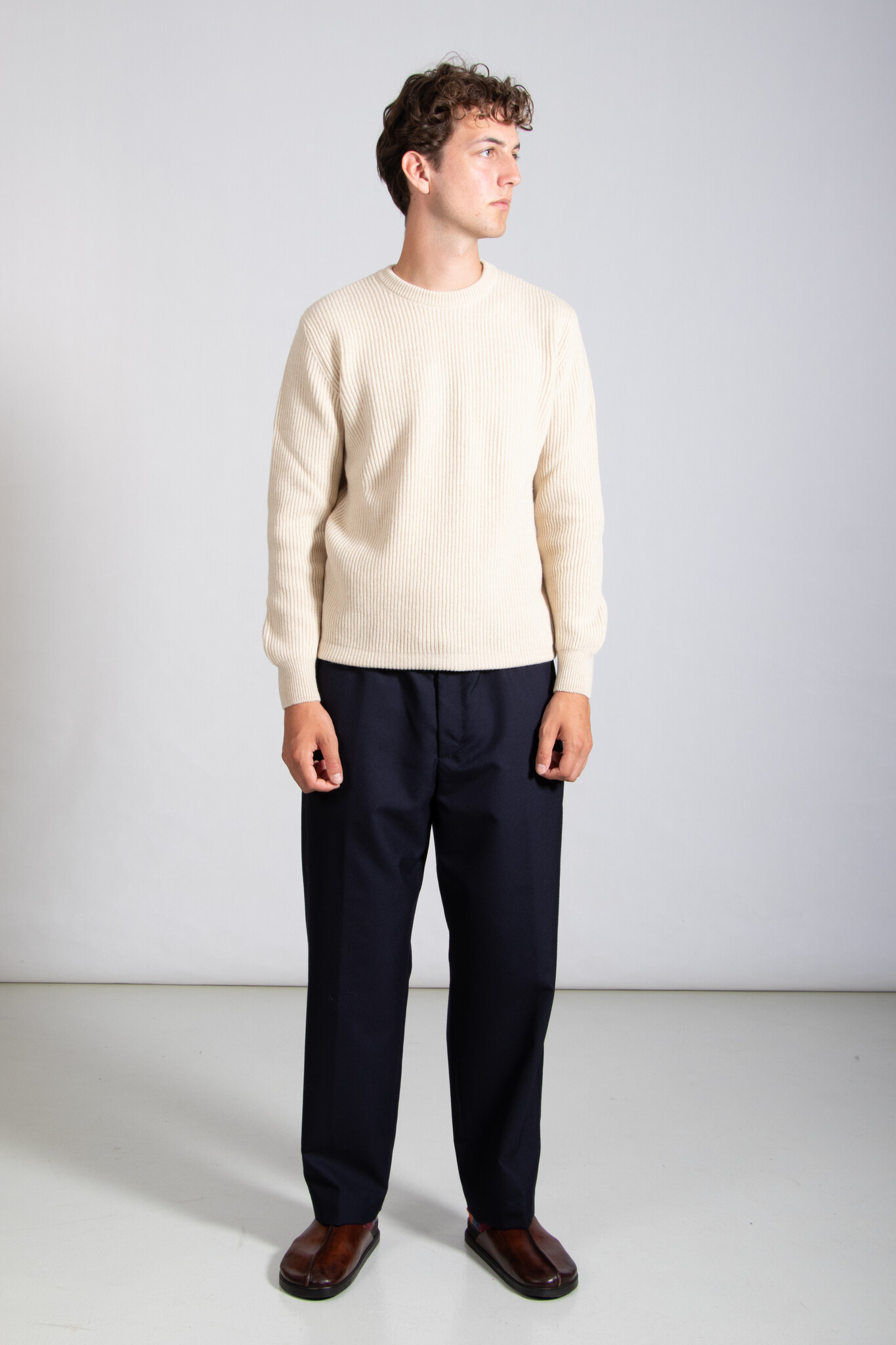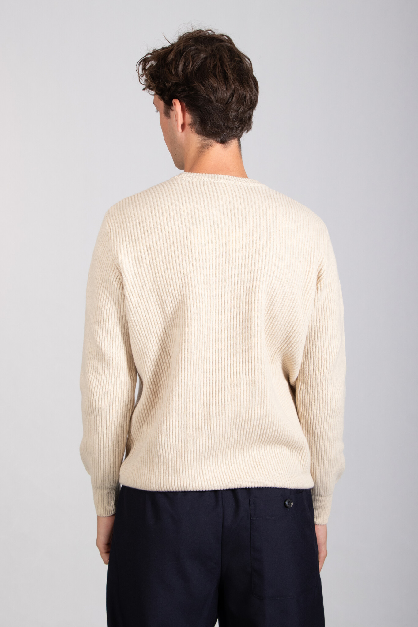 Wool sweater by G.R.P. from Florence. Knitted in a cable pattern from merino wool and a touch of cashmere. Our model is 192 cm tall and wears size XL. | |