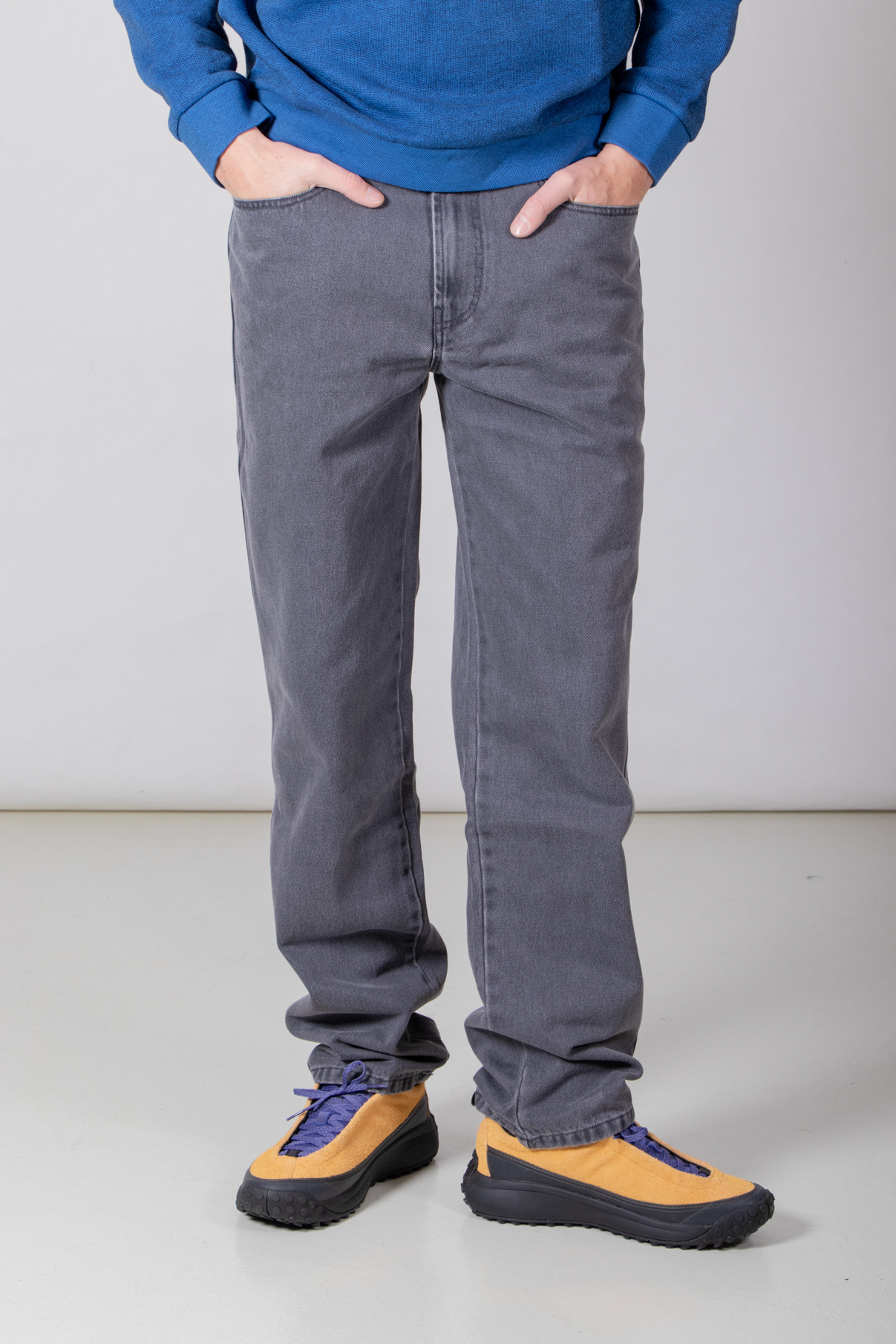 | Grey jeans from Homecore. The model is inspired by one of designer Alex’s favorite pairs of pants. Our model is 189 cm tall and is wearing size 32. | |