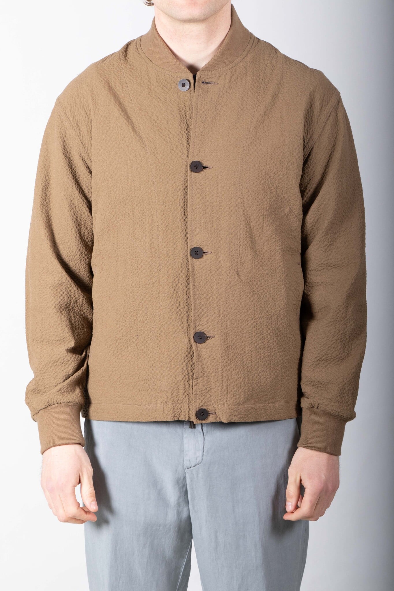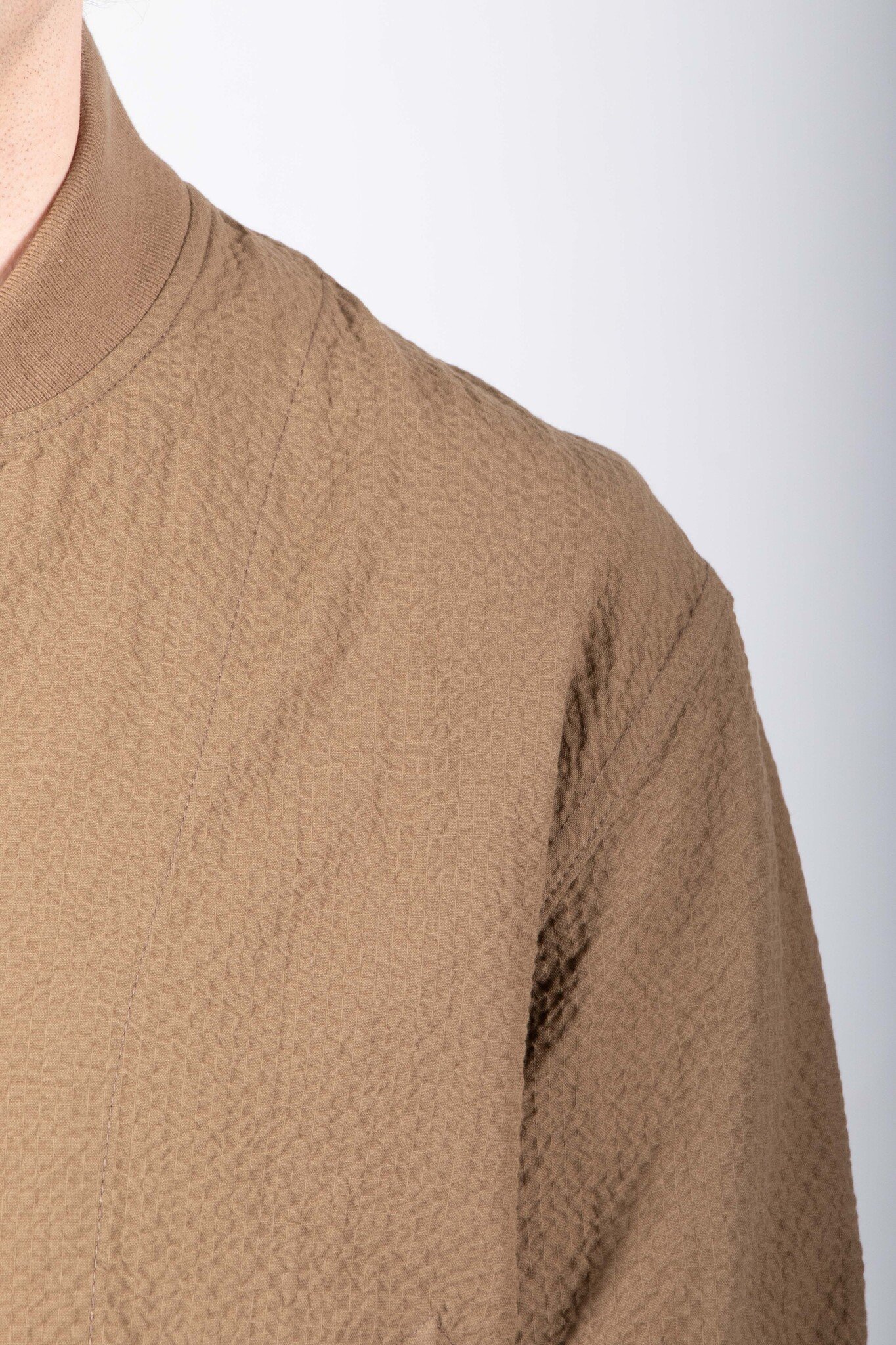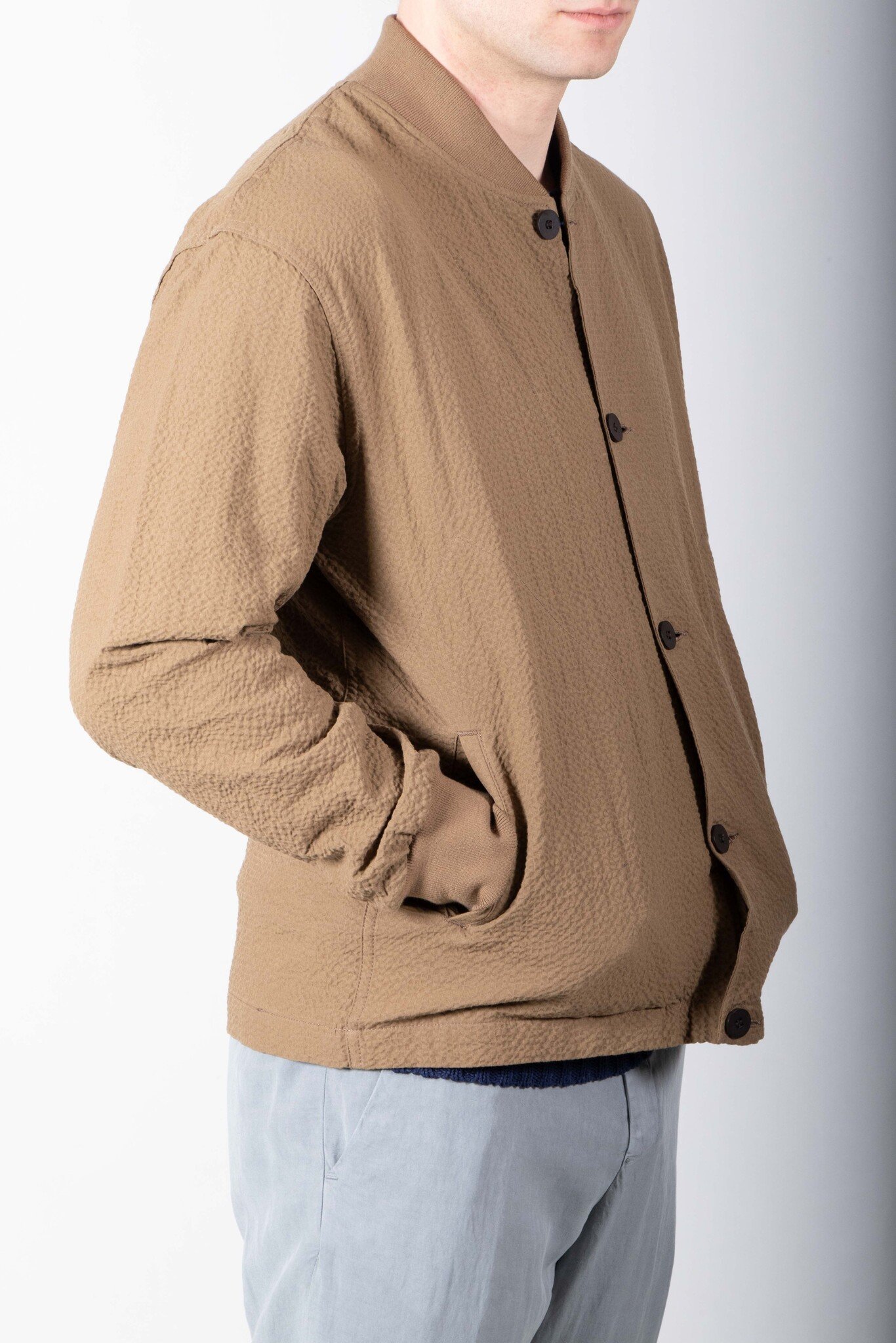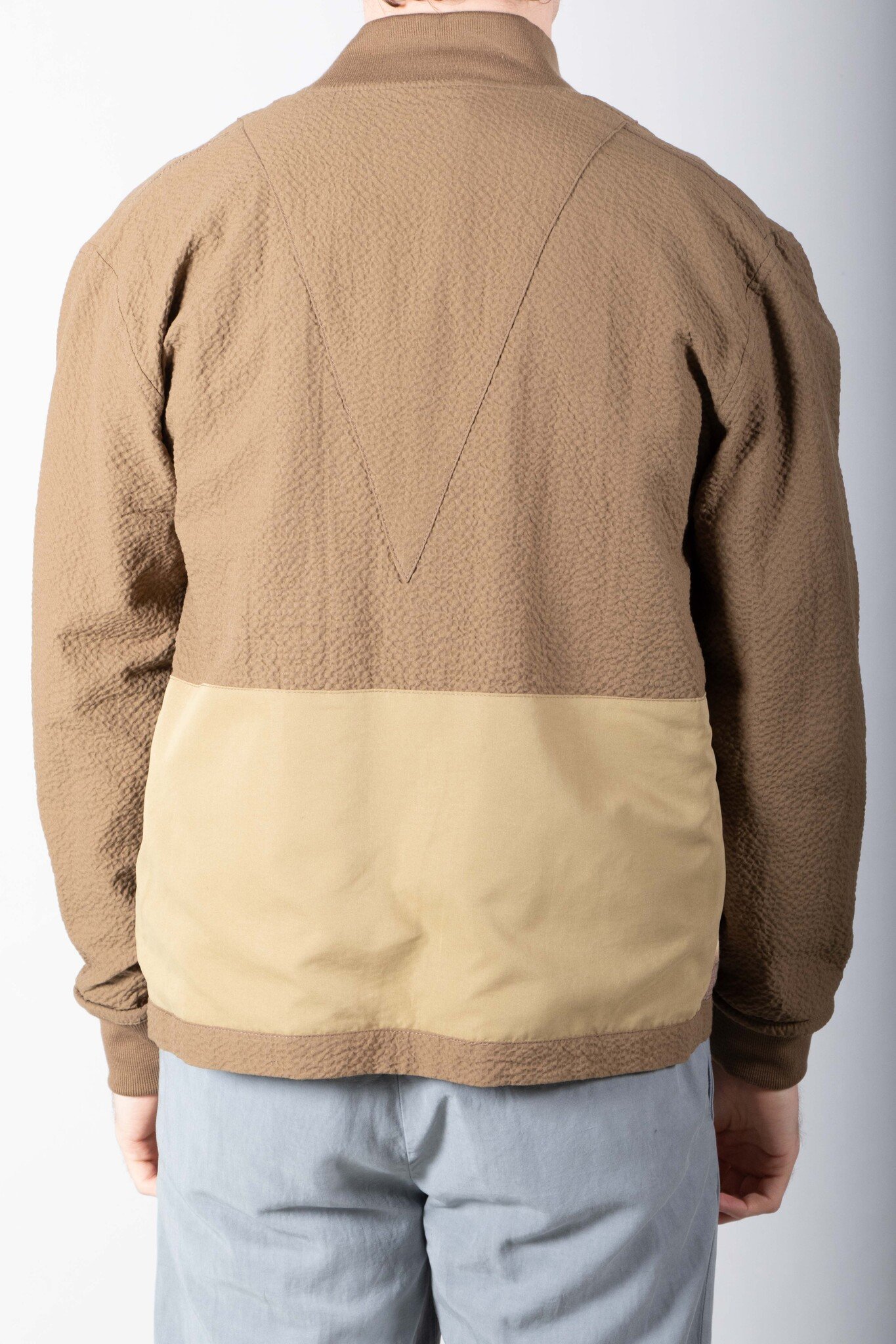 Mid-season jacket by Homecore from Paris. Made in Portugal from seersucker. As is often the case with Homecore, the jacket is reversible. Our model is 189 cm tall and wears a size L. Read more