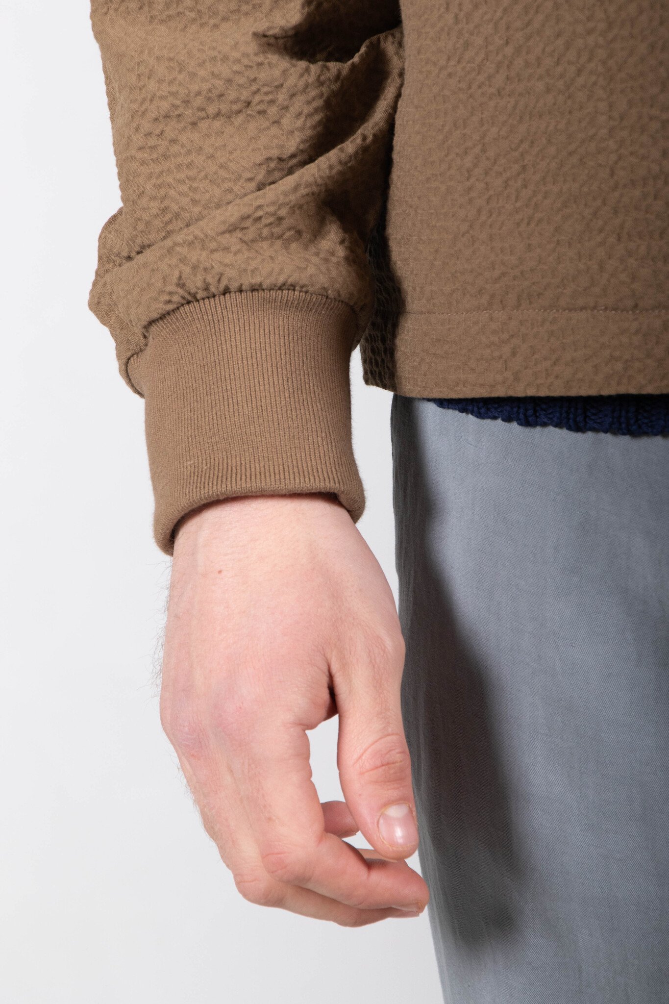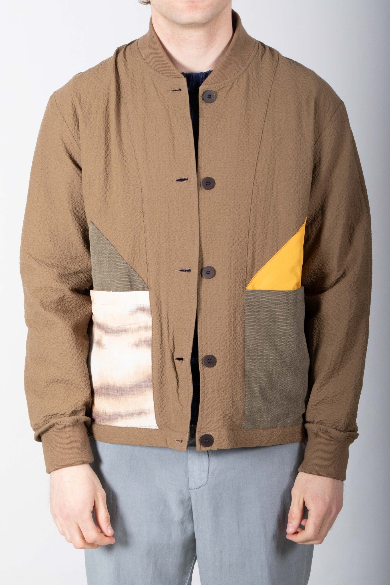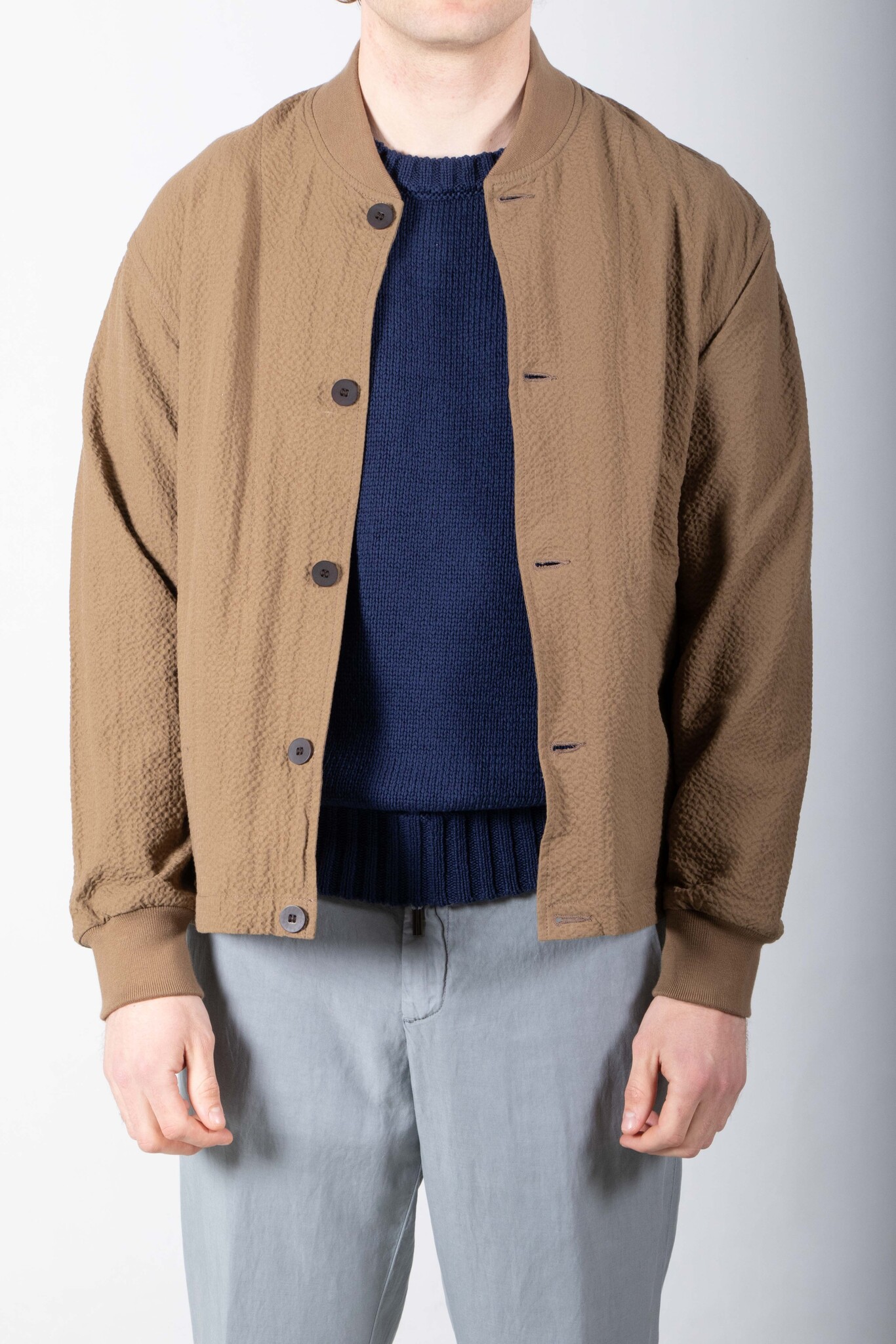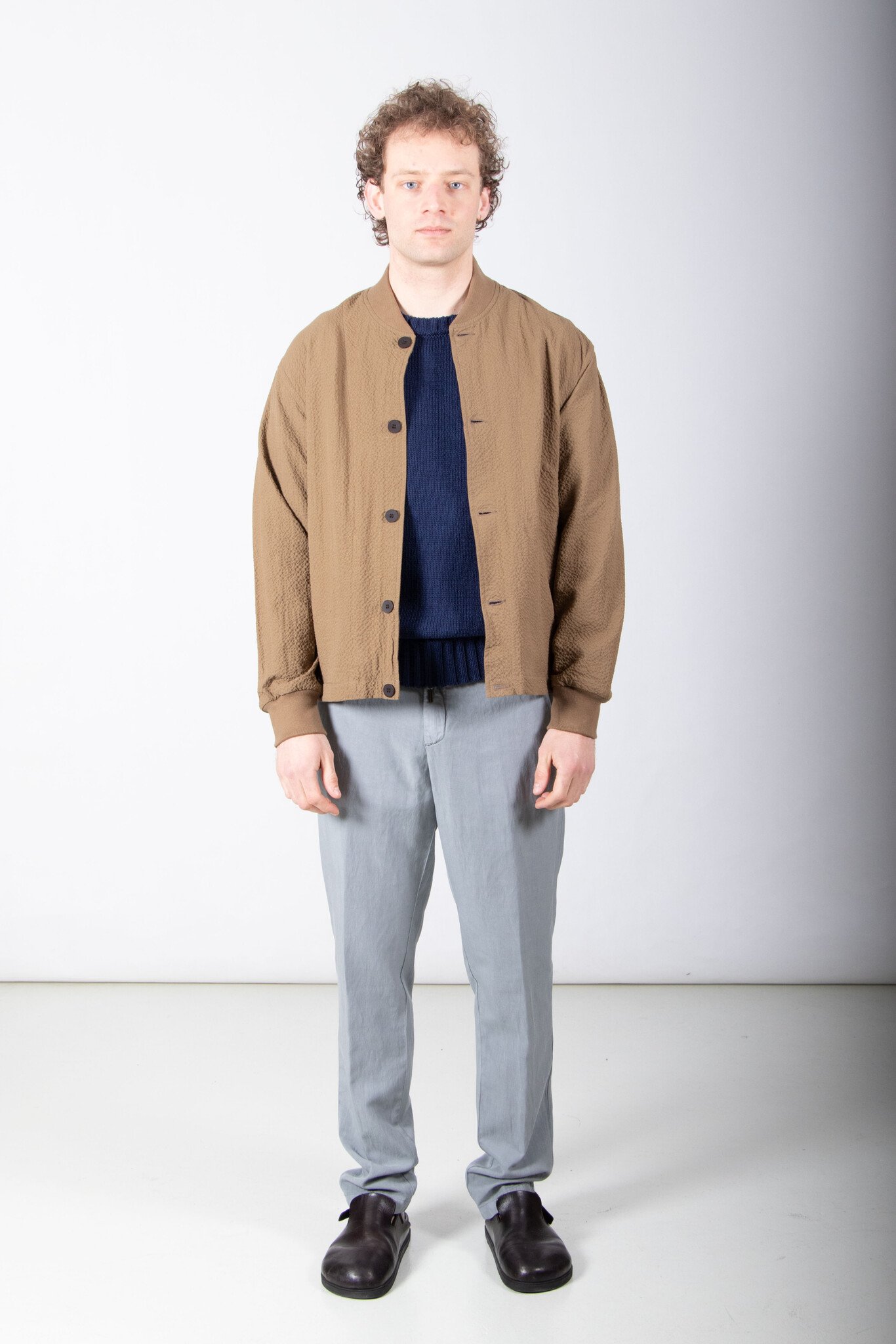 Mid-season jacket by Homecore from Paris. Made in Portugal from seersucker. As is often the case with Homecore, the jacket is reversible. Our model is 189 cm tall and wears a size L. Read more