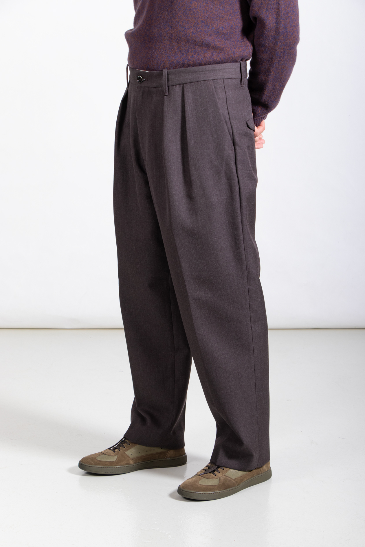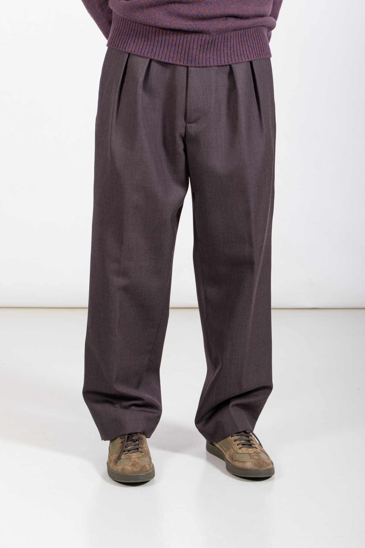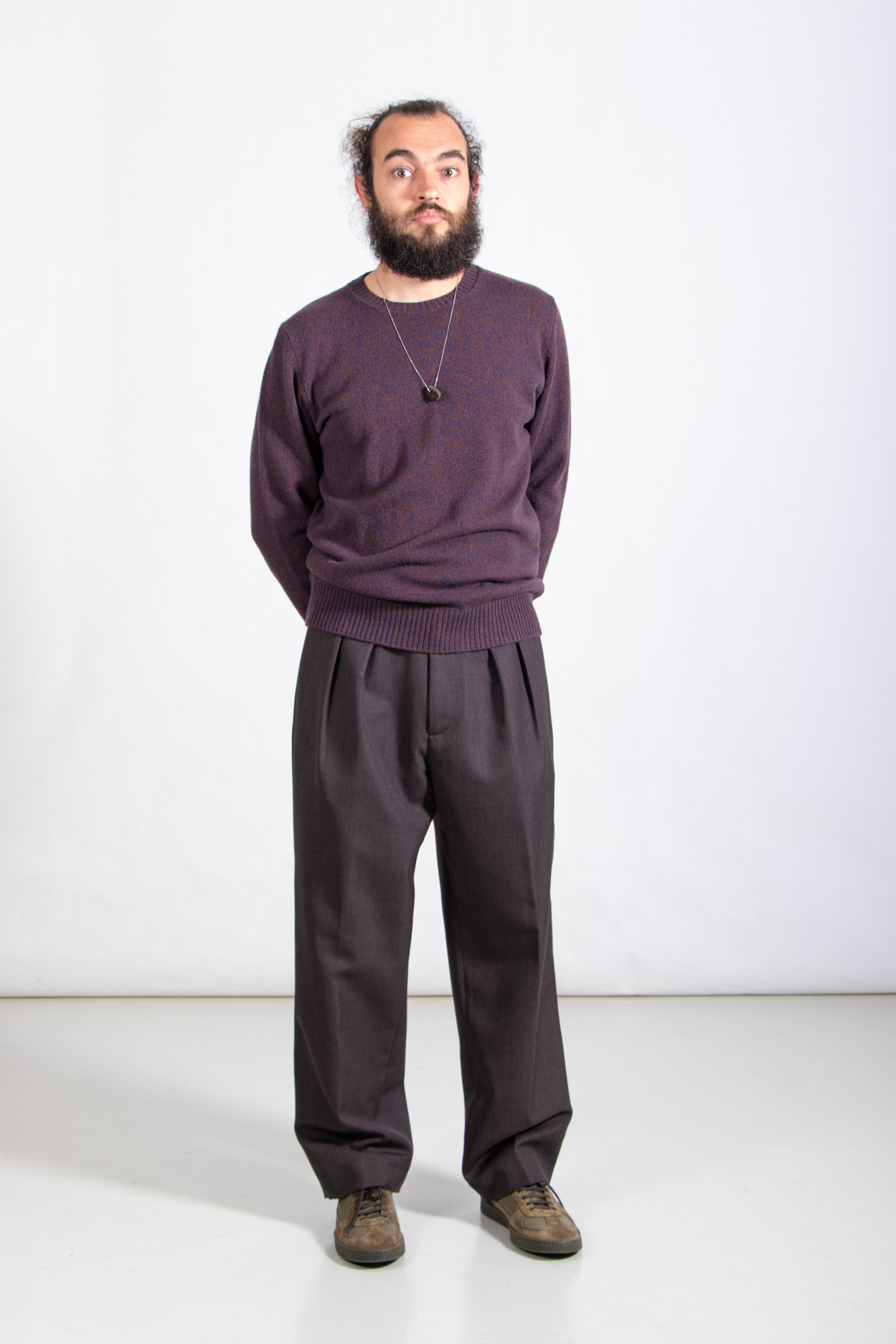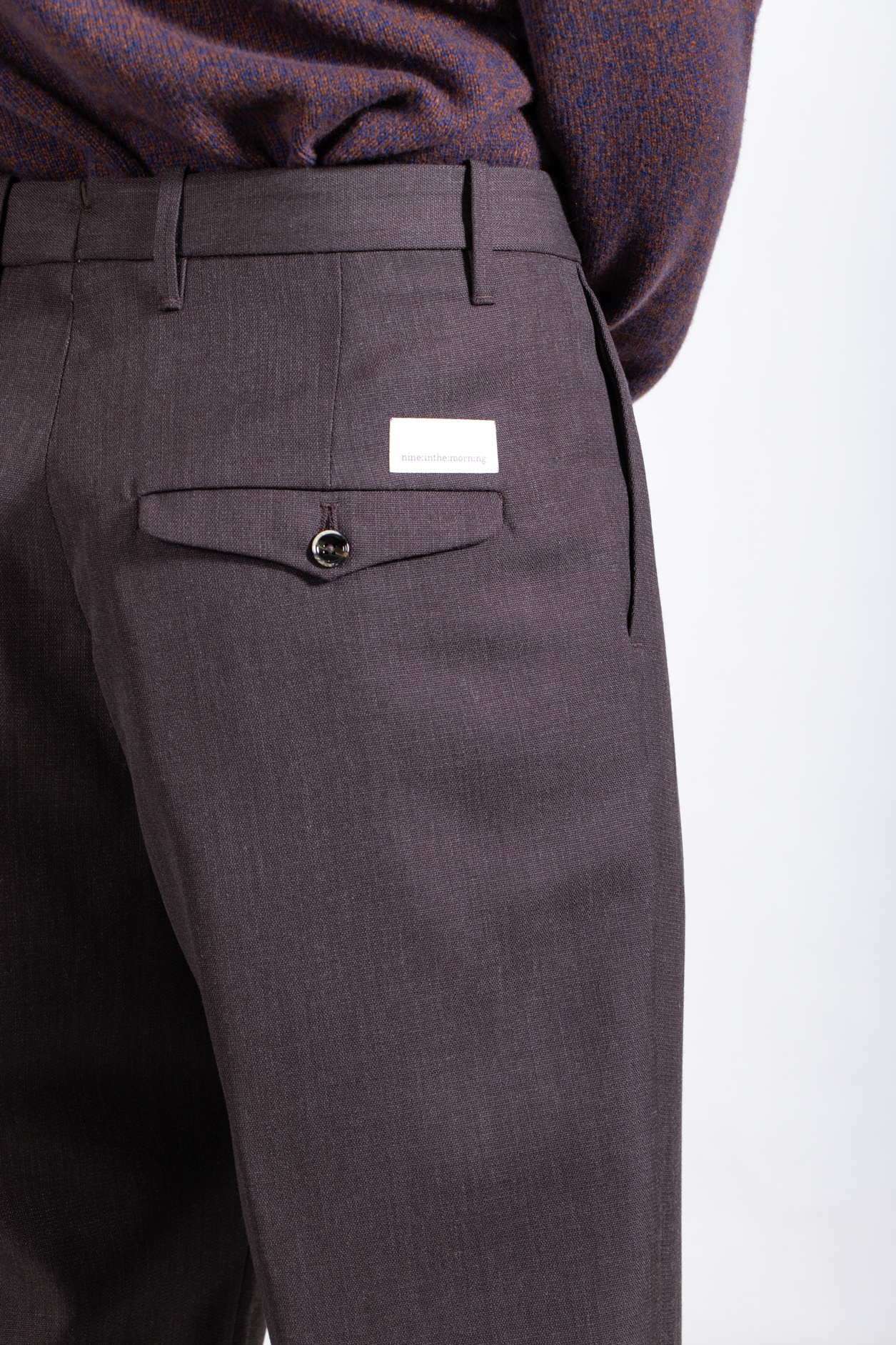 Double pleated trousers by Nine in the Morning, made in Italy from dry wool. The color is an indefinable gray-brown. Our model is 180 cm tall and wears a size 48. | |