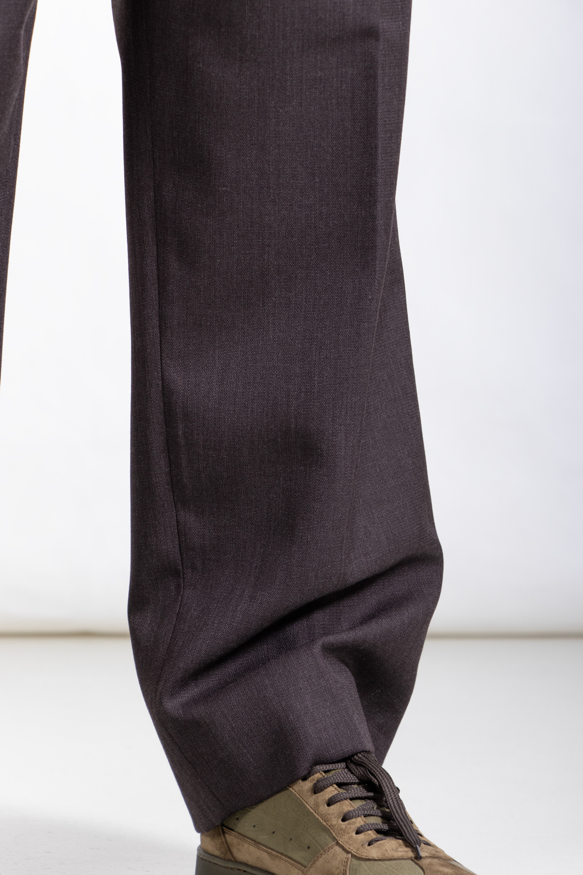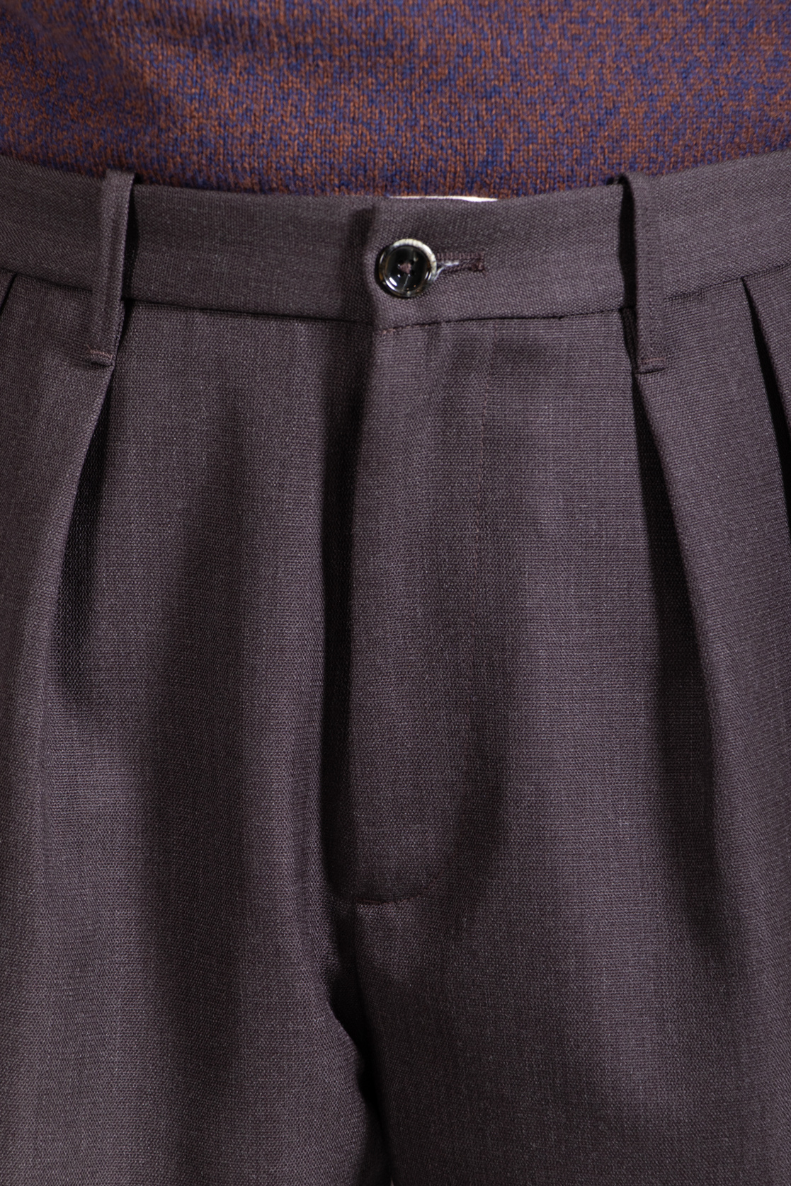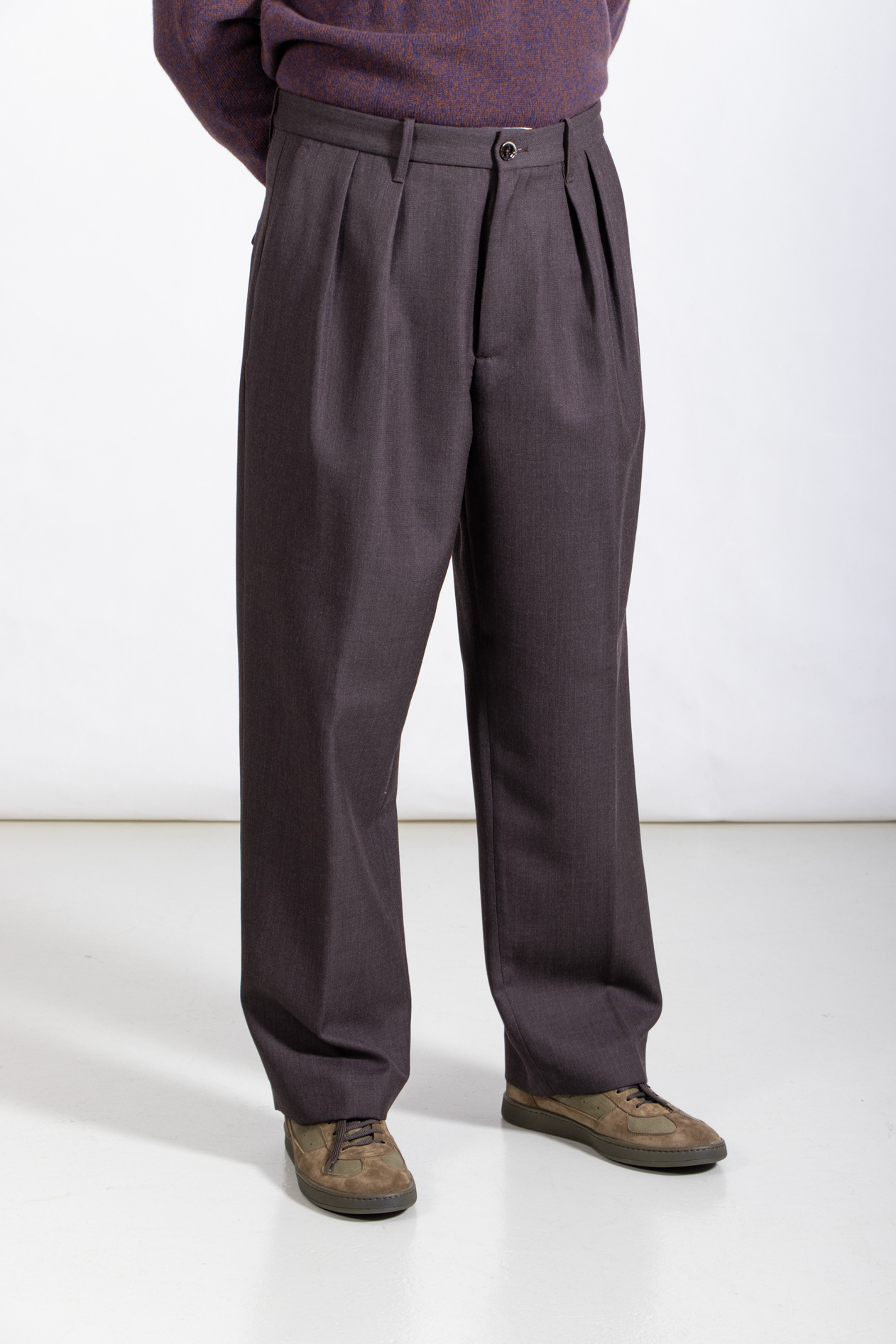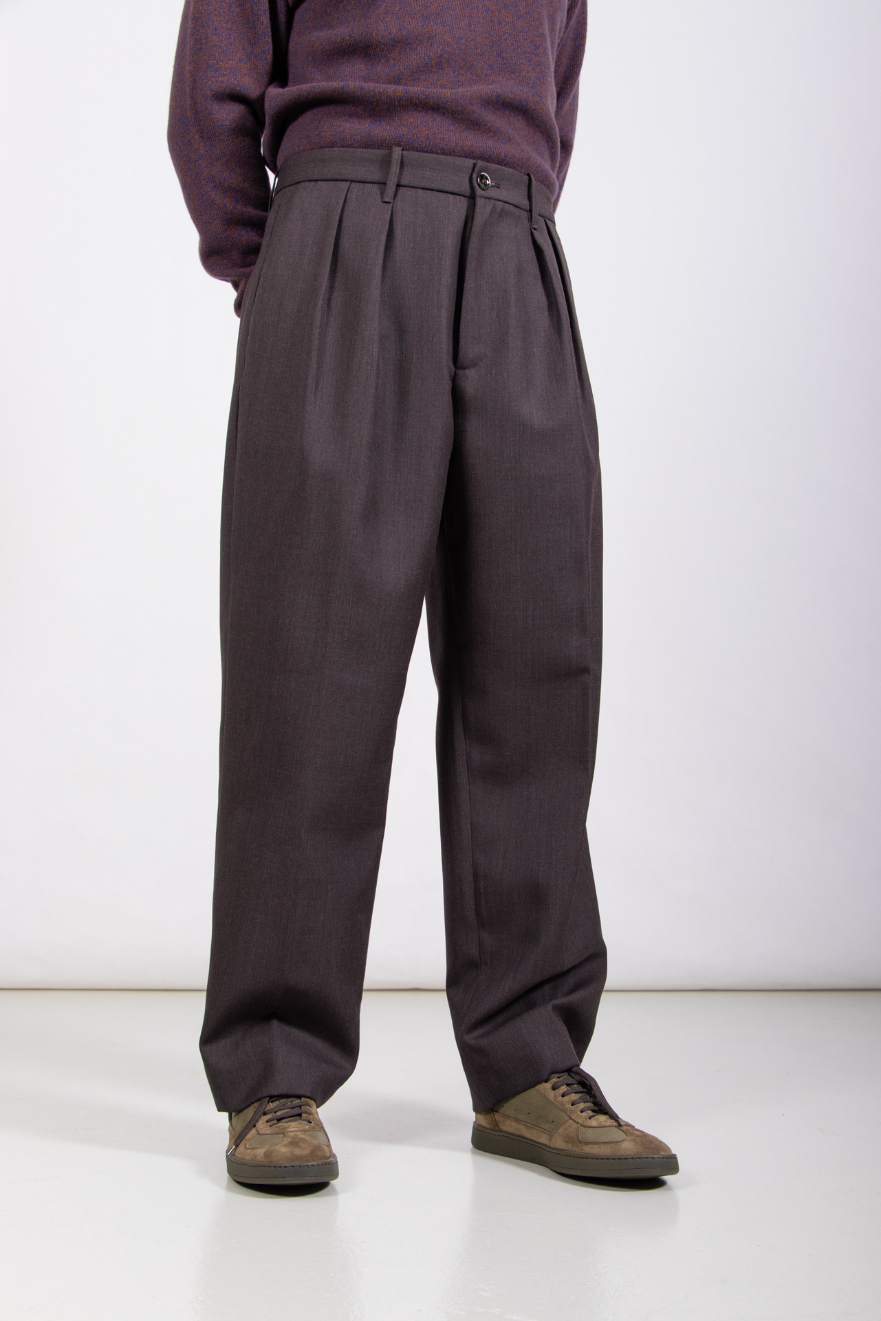 Double pleated trousers by Nine in the Morning, made in Italy from dry wool. The color is an indefinable gray-brown. Our model is 180 cm tall and wears a size 48. | |