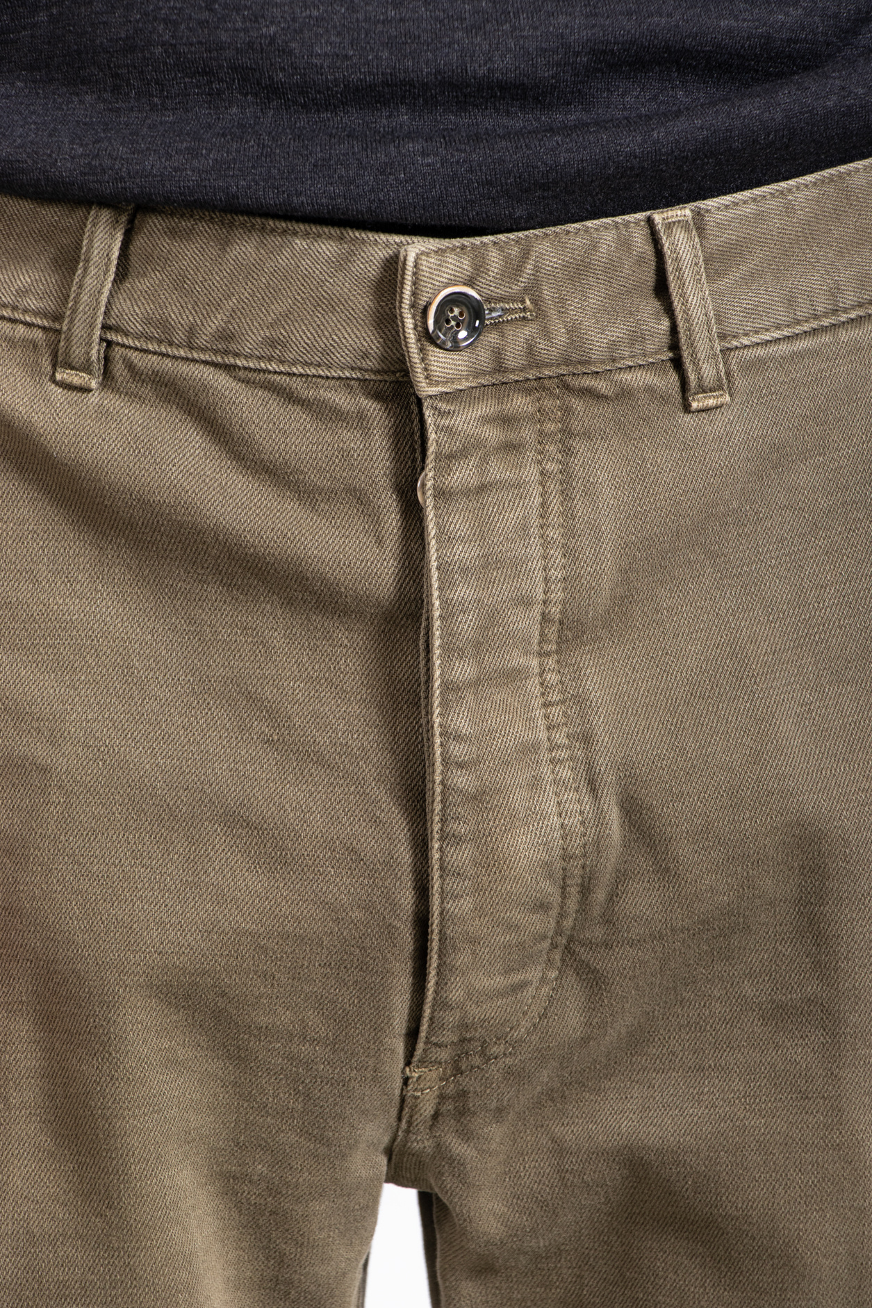 A chino by Nine in the Morning. Made from an Italian washed green denim twill. Our model is 189 cm tall and wears a size 33. Read more