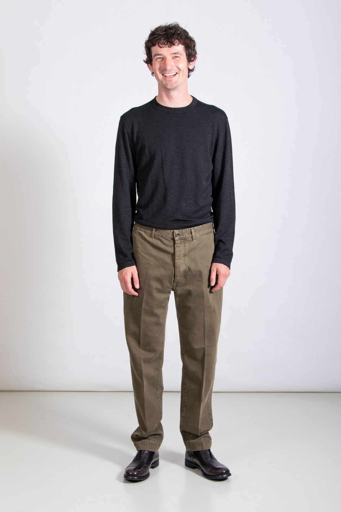 A chino by Nine in the Morning. Made from an Italian washed green denim twill. Our model is 189 cm tall and wears a size 33. | |