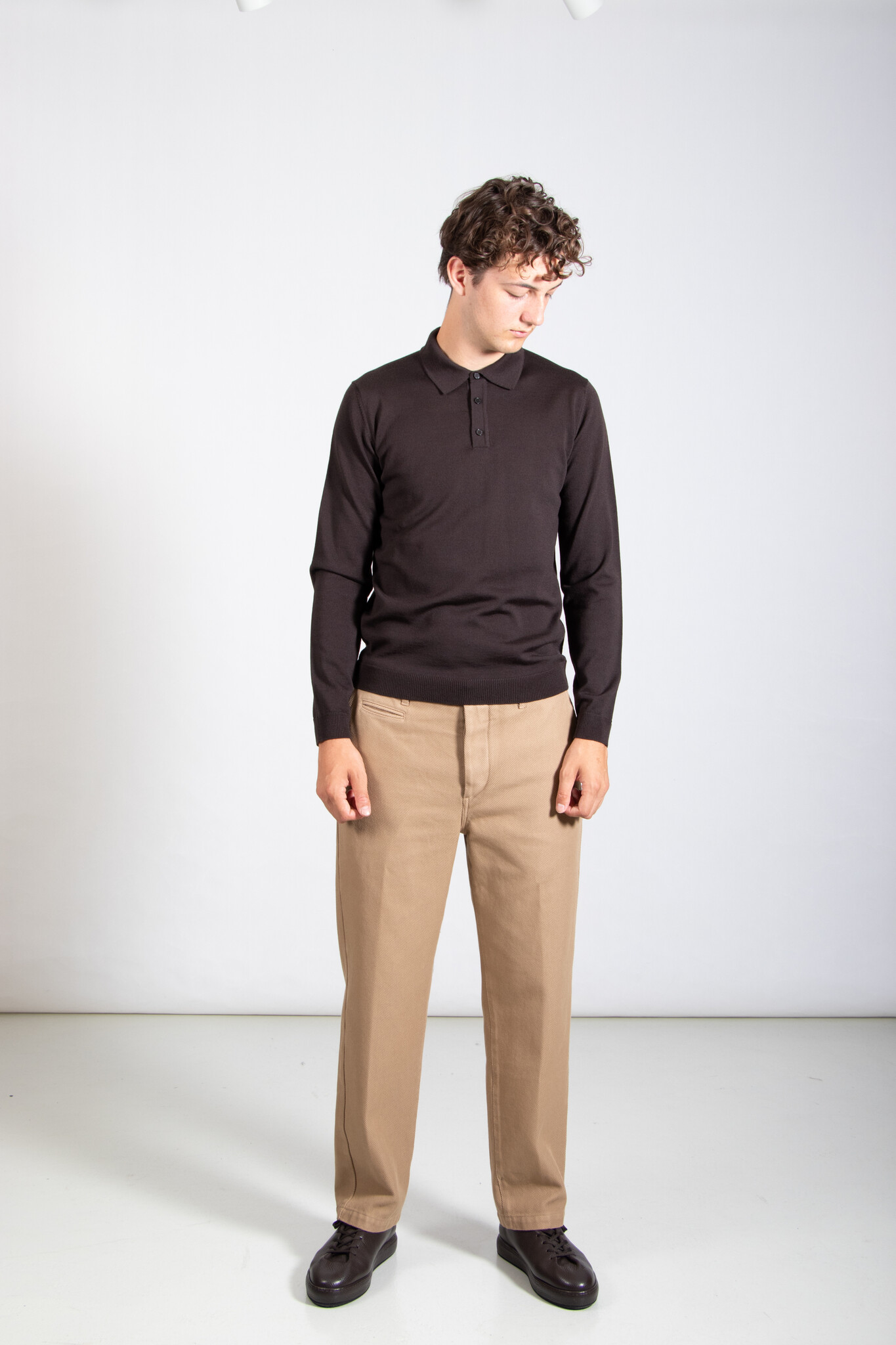 Knitted polo by Roberto Collina from Italy. Made from merino wool. Our model is 192 cm tall and wears size 50. Read more