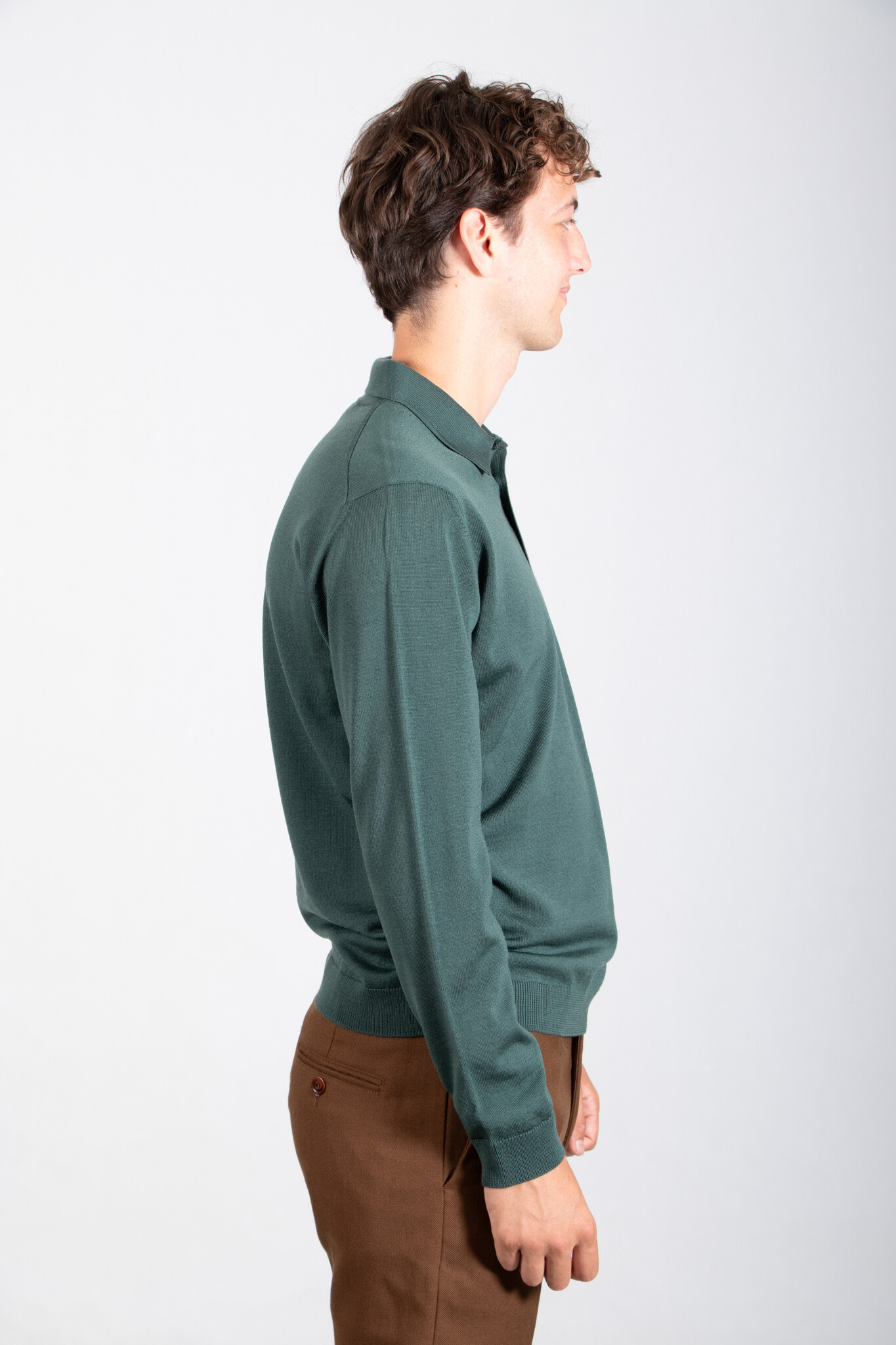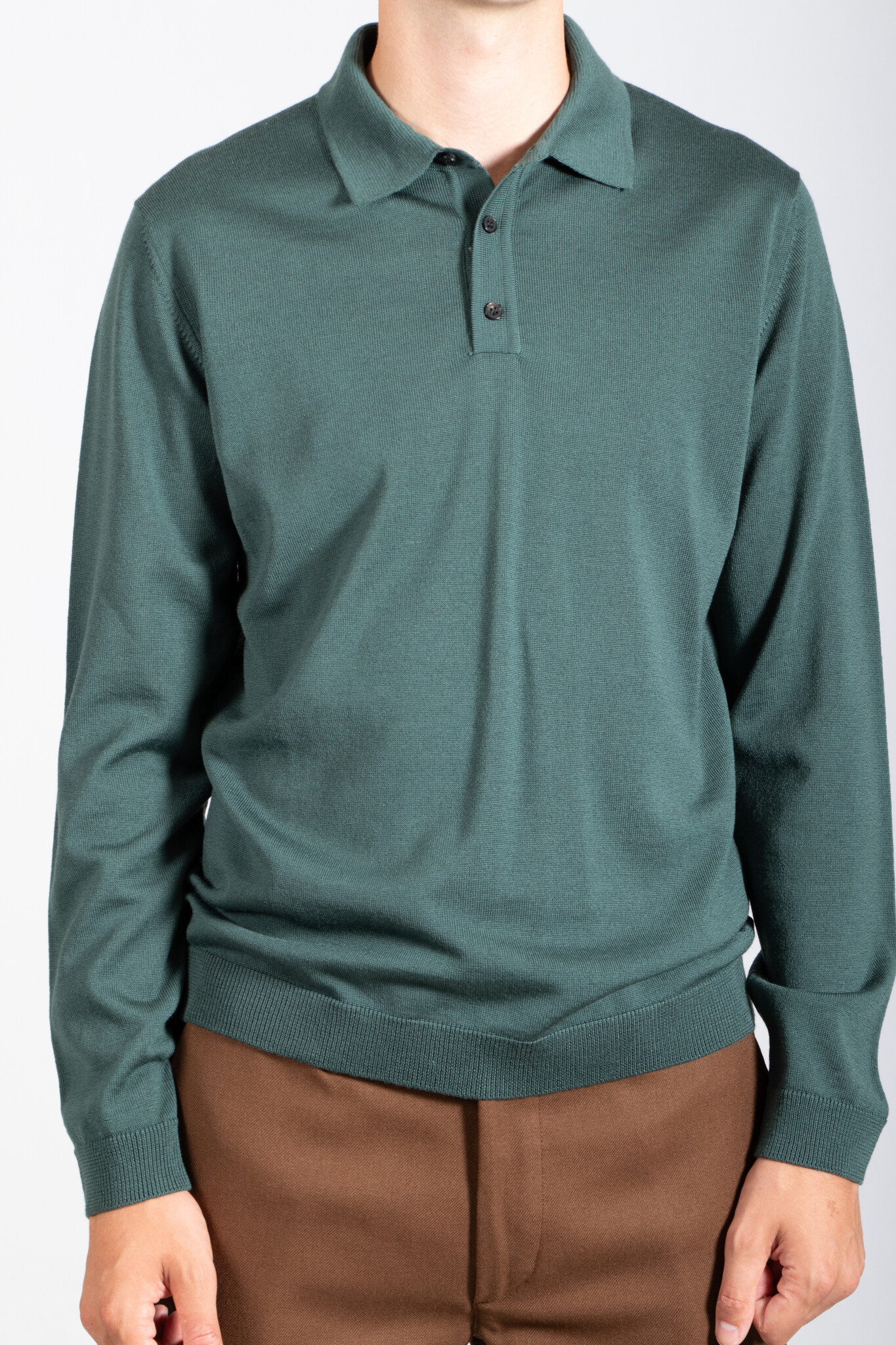 Knitted polo by Roberto Collina from Italy. Made from merino wool. Our model is 192 cm tall and wears size 50. | |