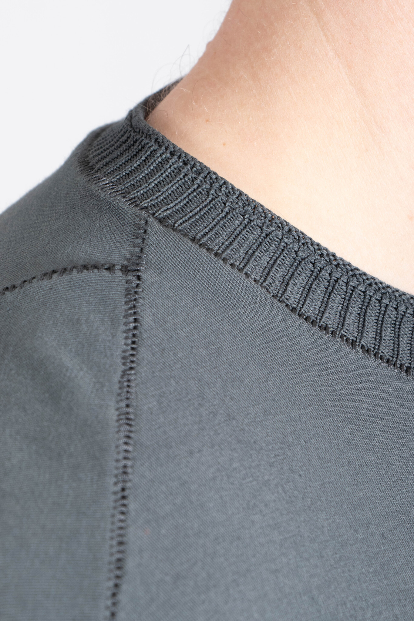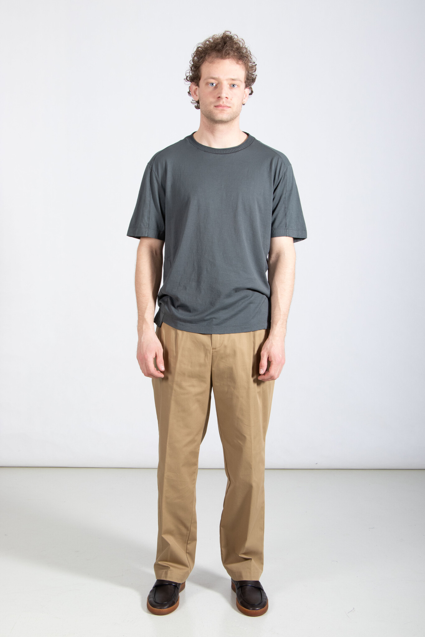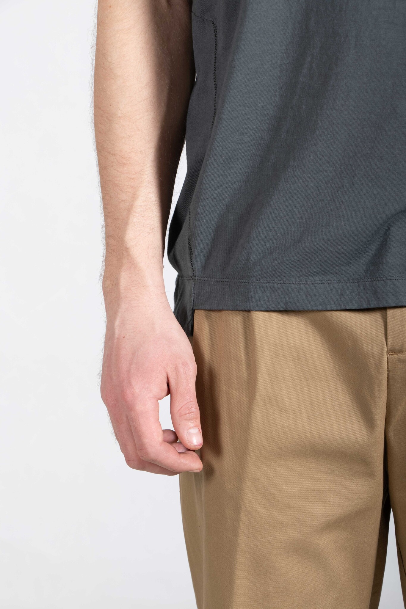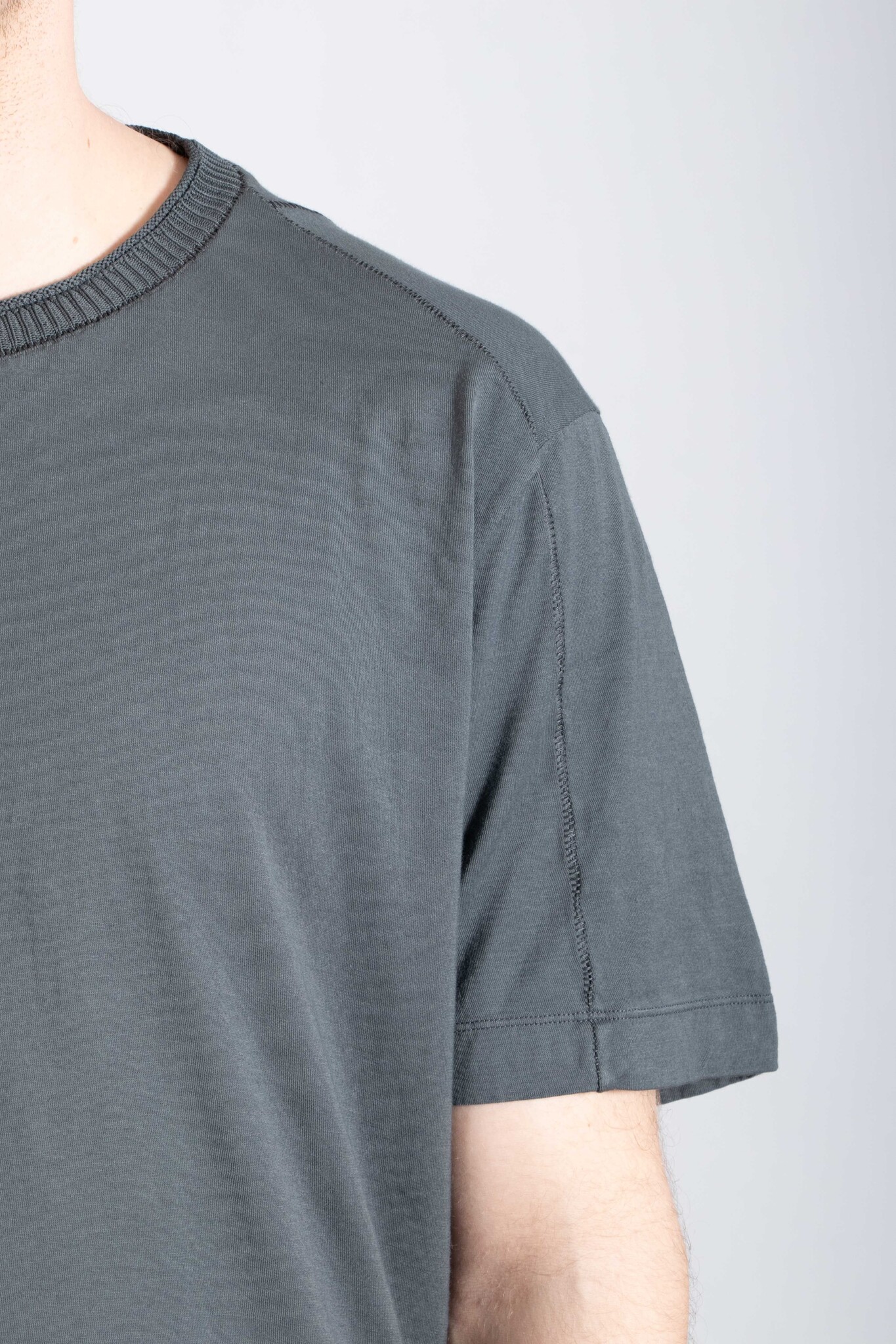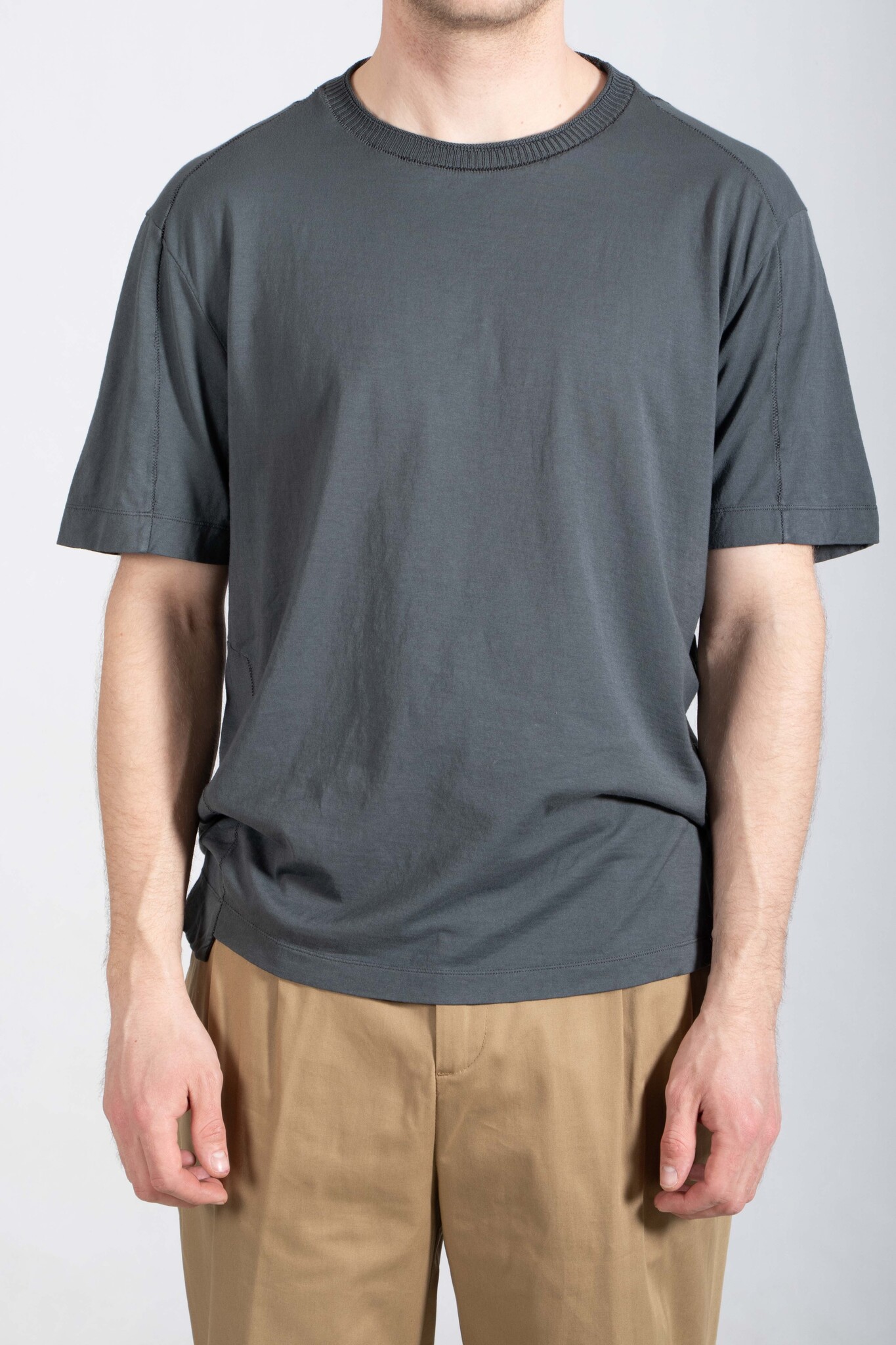 | Short-sleeve T-shirt by Transit, made in Italy. Features several coarse seams and a knitted collar. Our model is 189 cm tall and wears a size L. | |