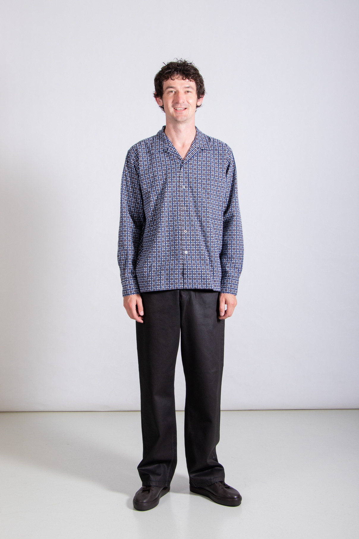 | Shirt from Universal Works. Made from a slightly heavier cotton fabric with a woven-in pattern. Our model is 189 cm tall and wears size L. | |