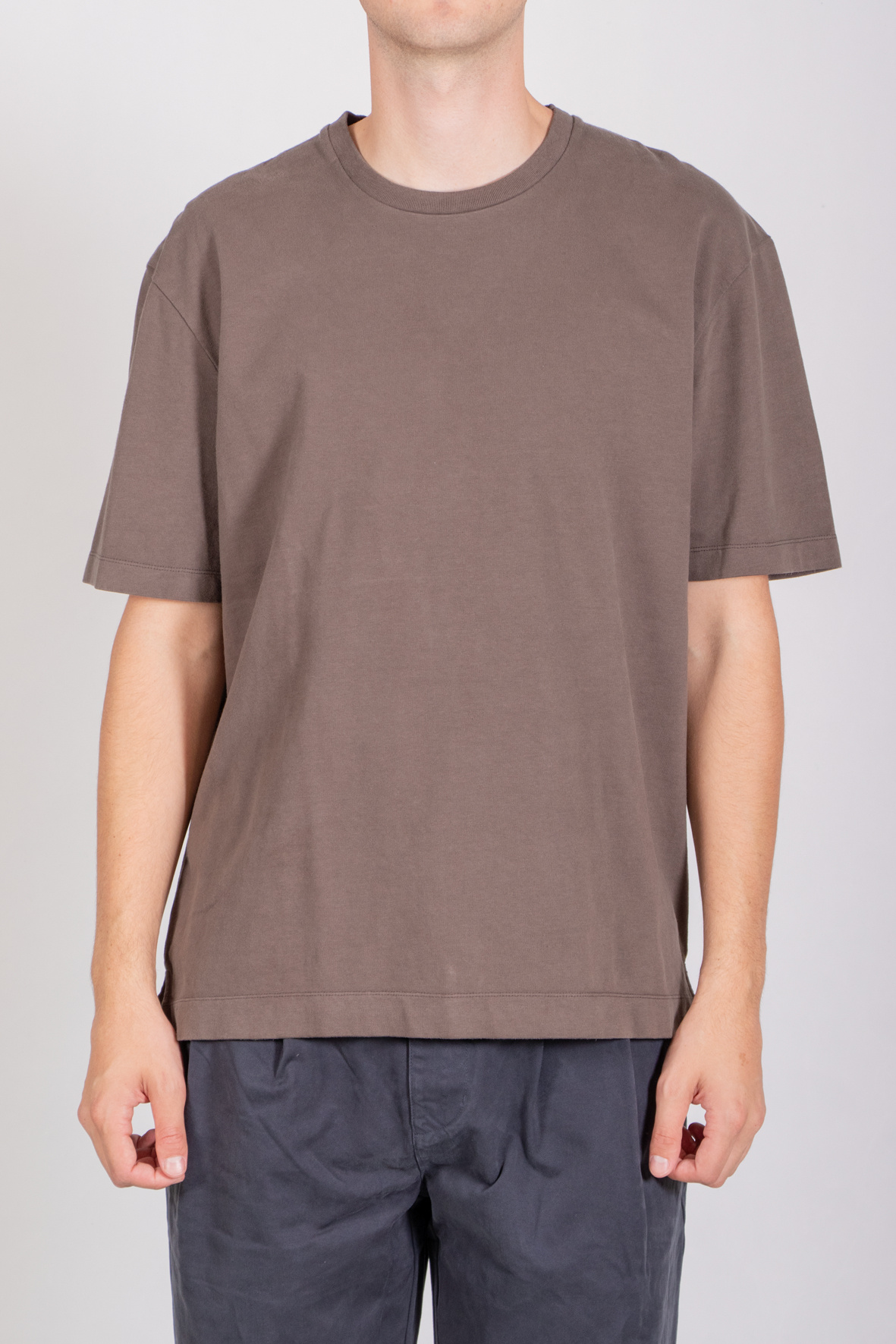Korte mouwen t-shirt van 7d uit Gent. Gemaakt in Portugal van een heavy jersey. Ons model is 192 cm lang en draagt een maat L. | |