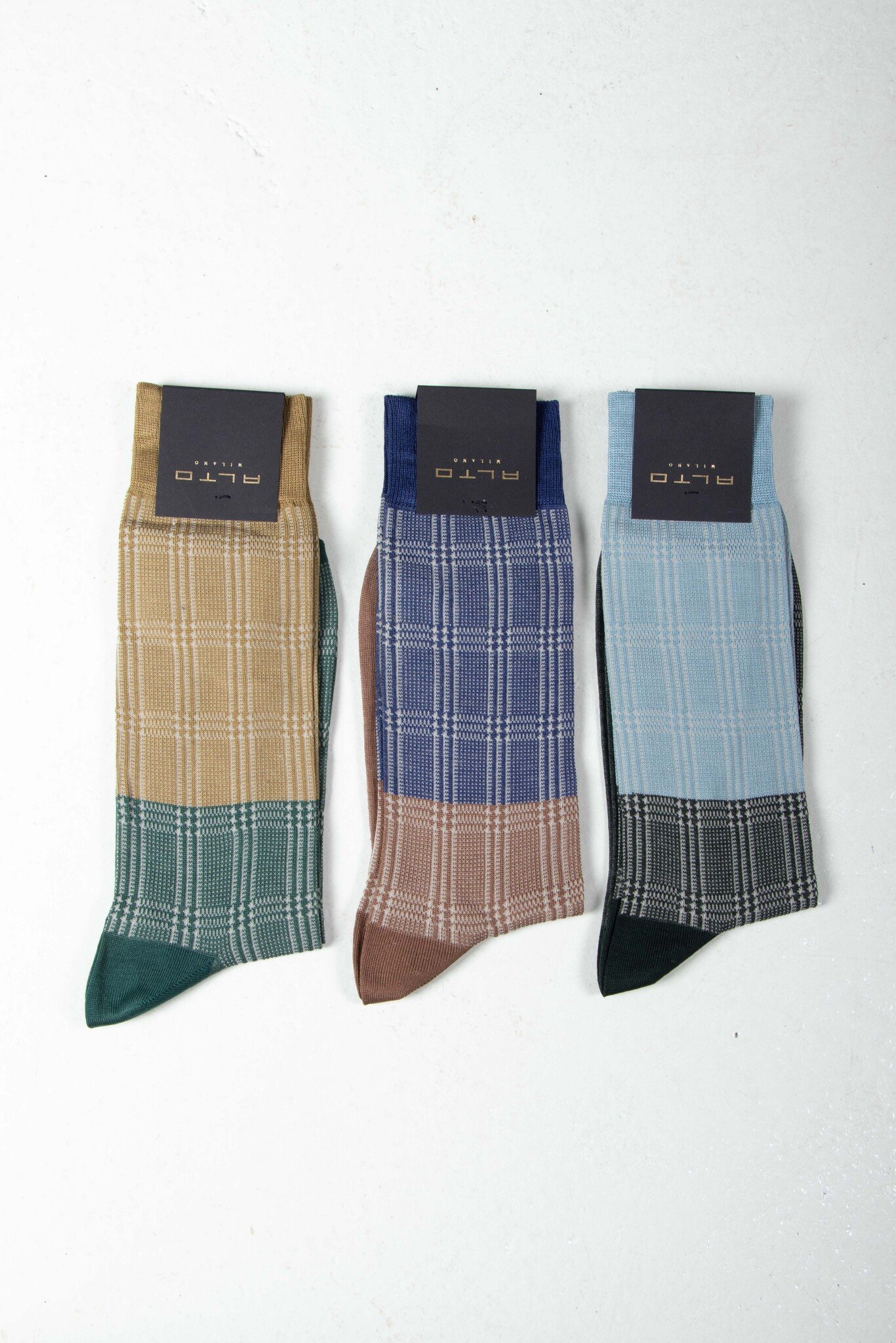 | Socken aus Italien. In einem Halb/Halb-Muster. Gut gemacht von Alto Milano. | |