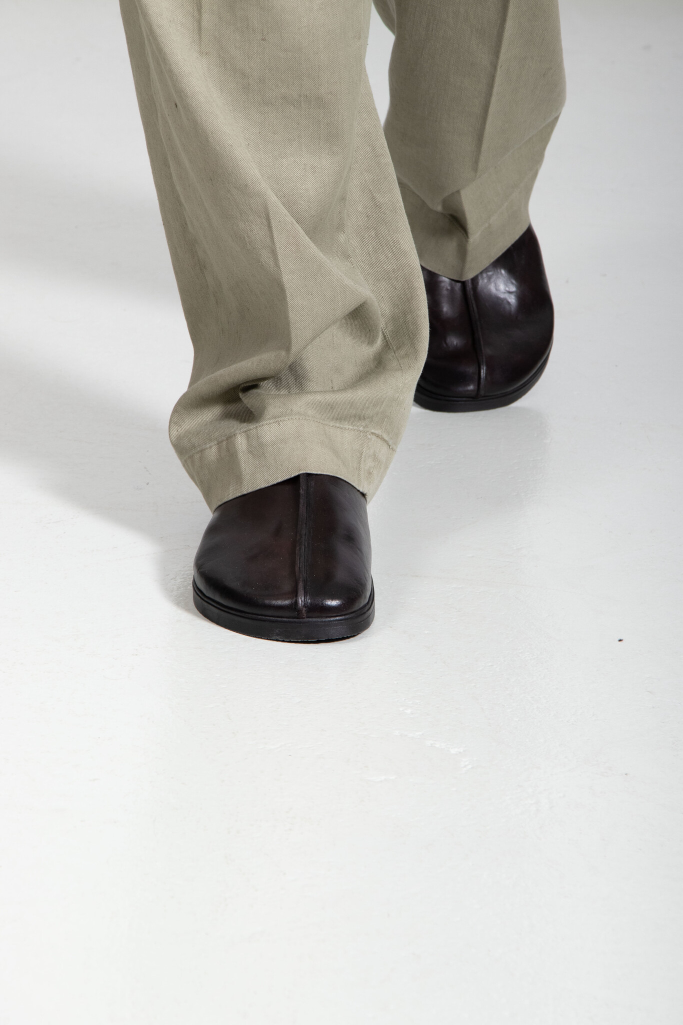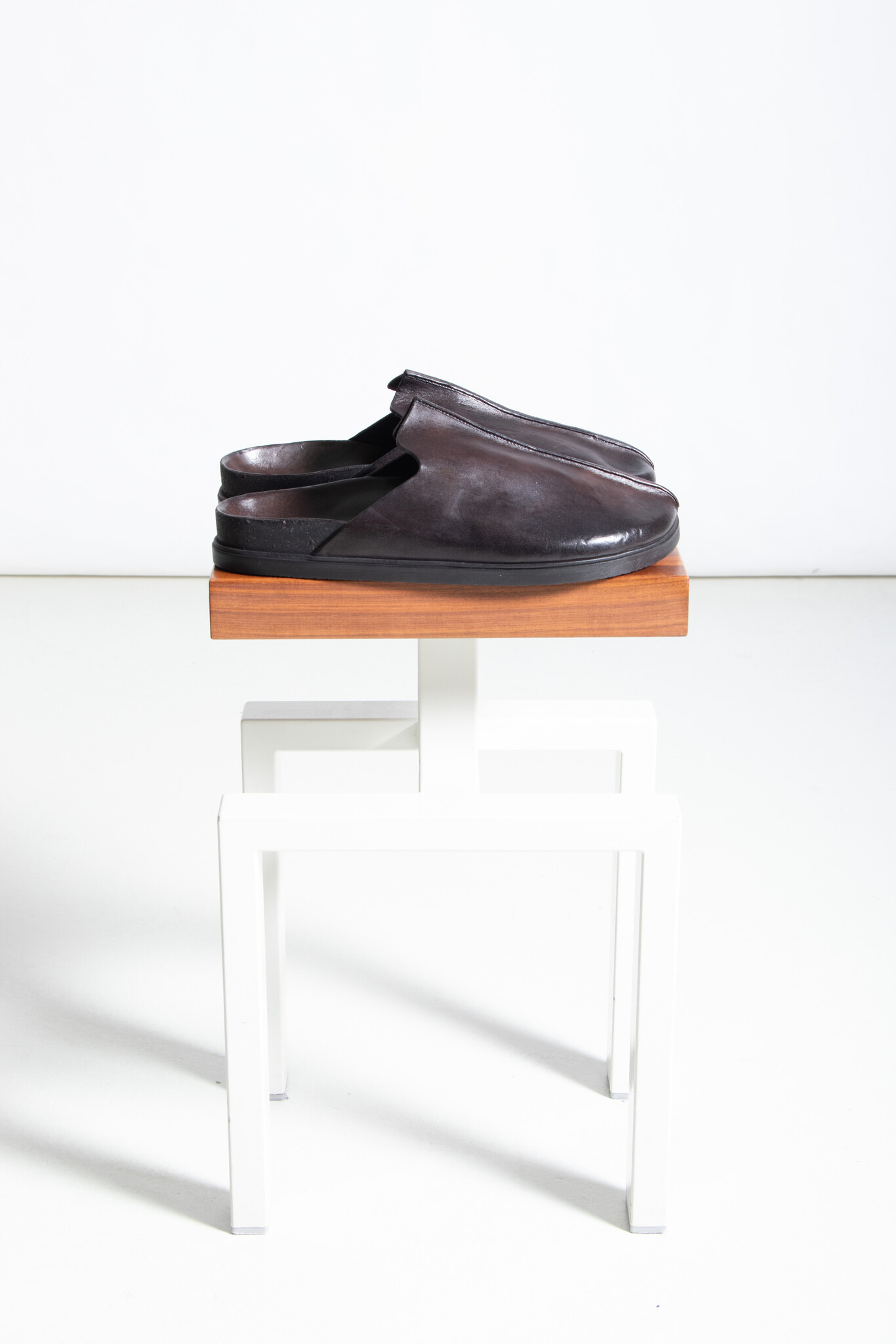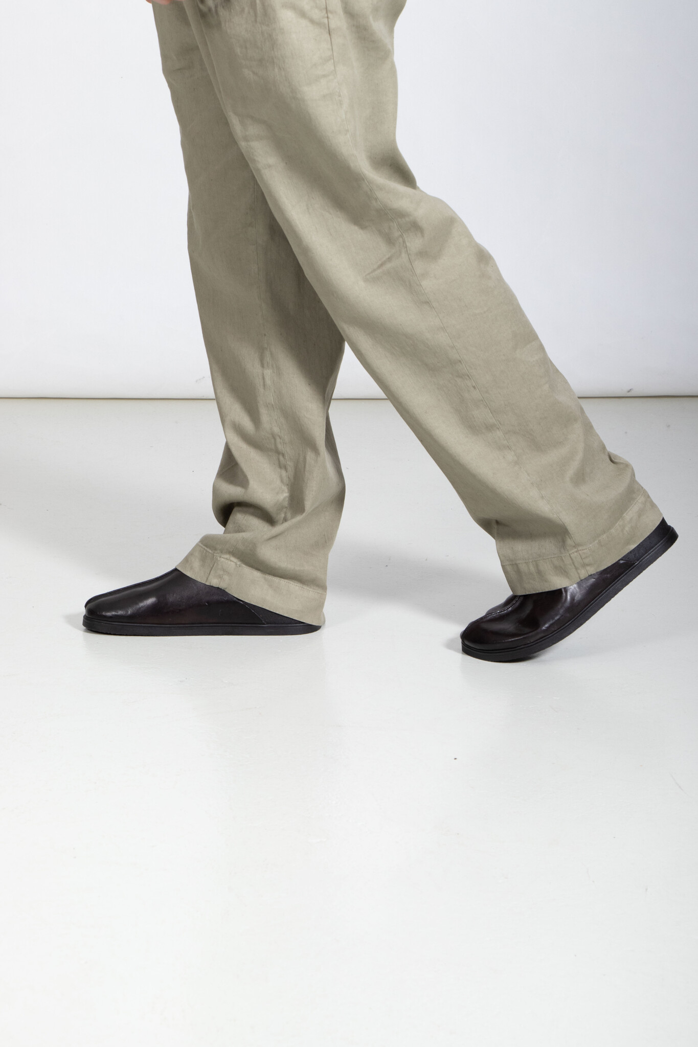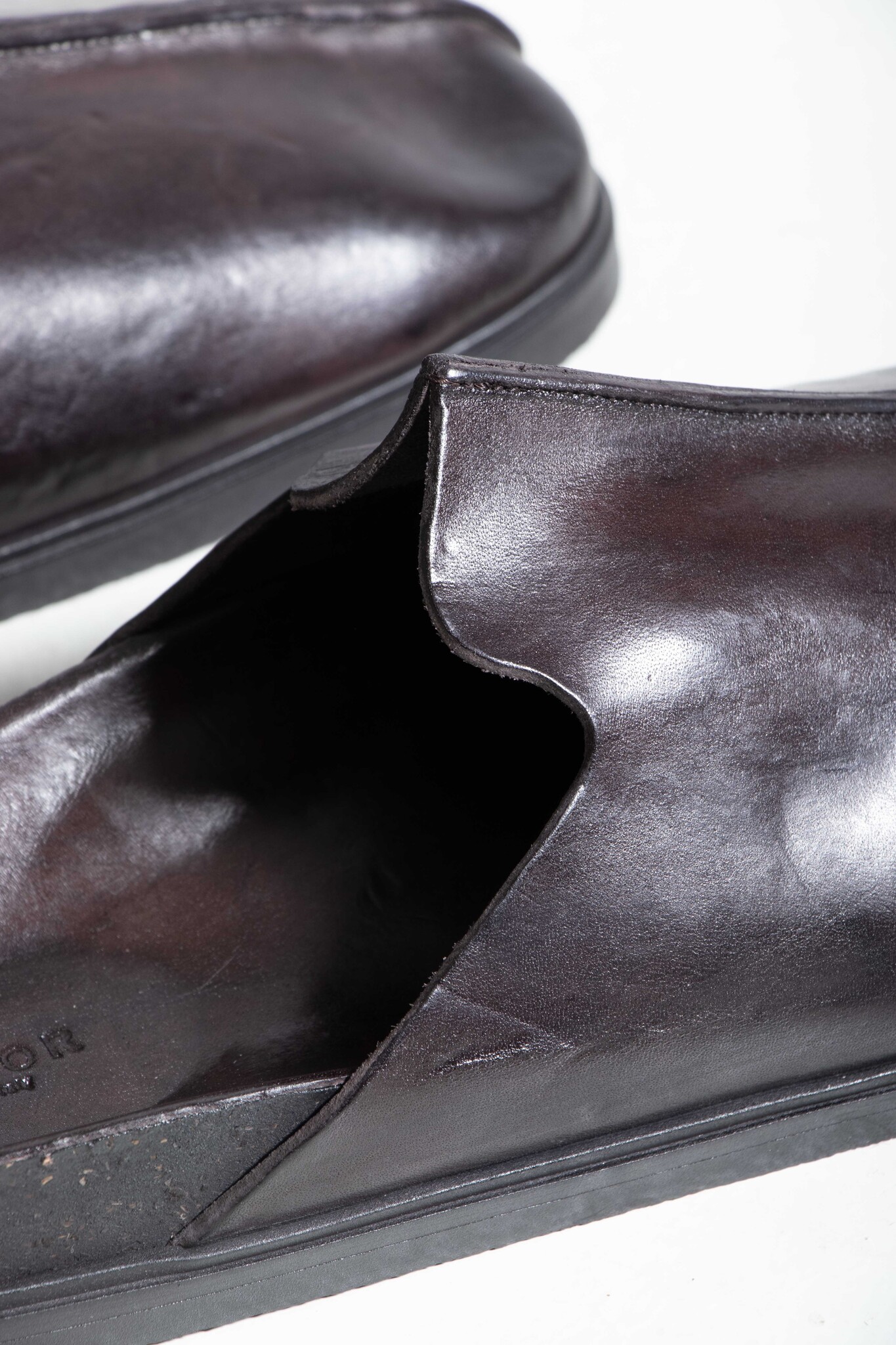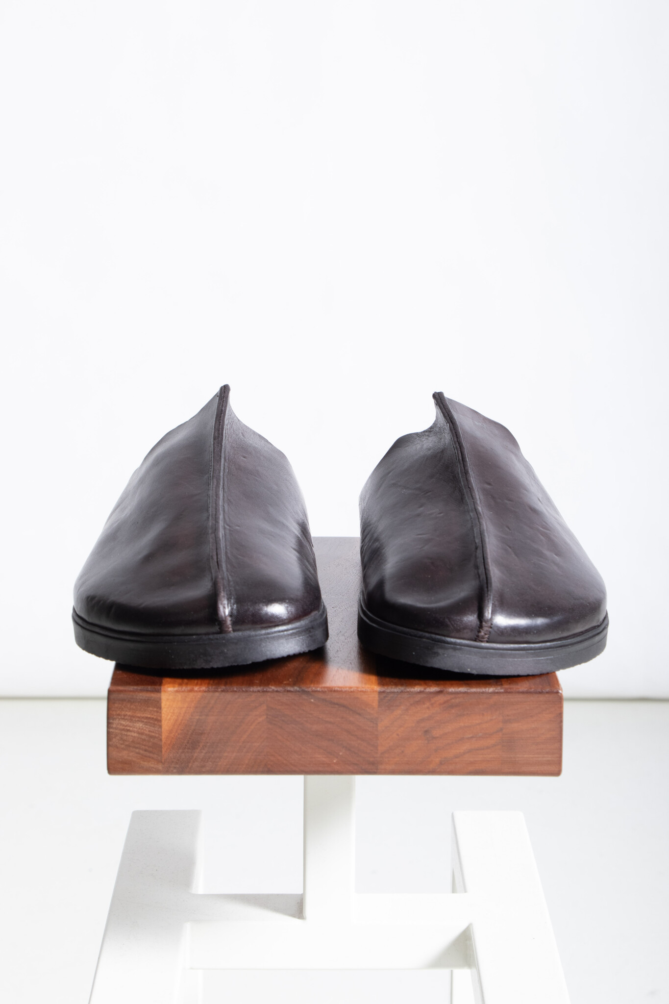 | Leren muiltjes van Brador met een stevige naad op de neus. Ze worden gemaakt in Italië van stevig kalfsleer en een zool van rubber, leer en kurk. | |