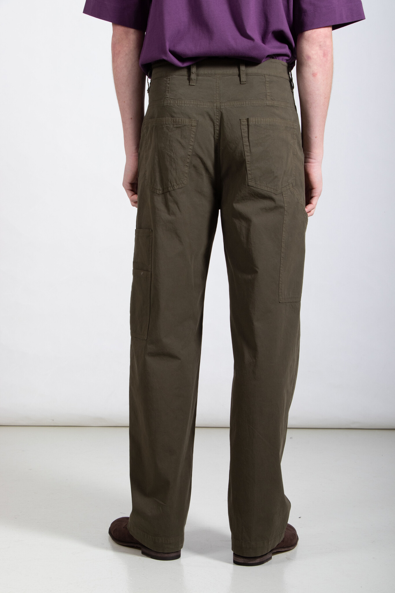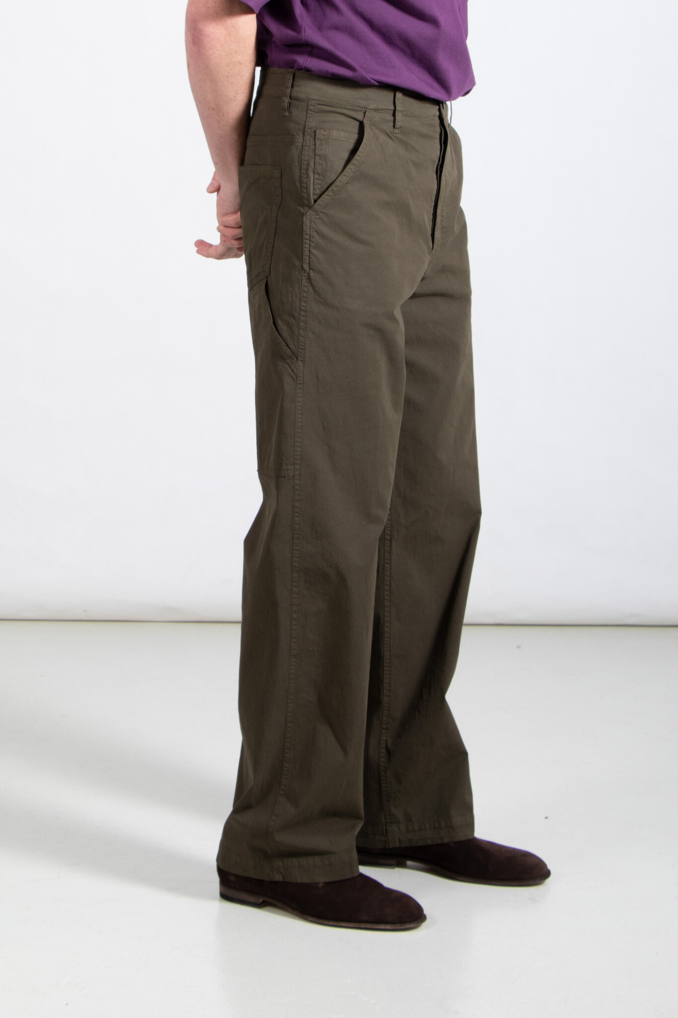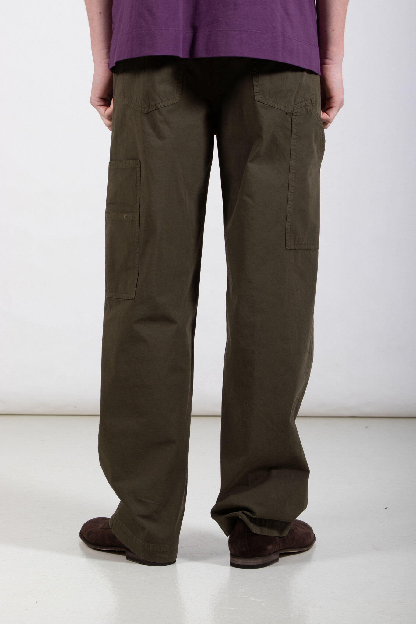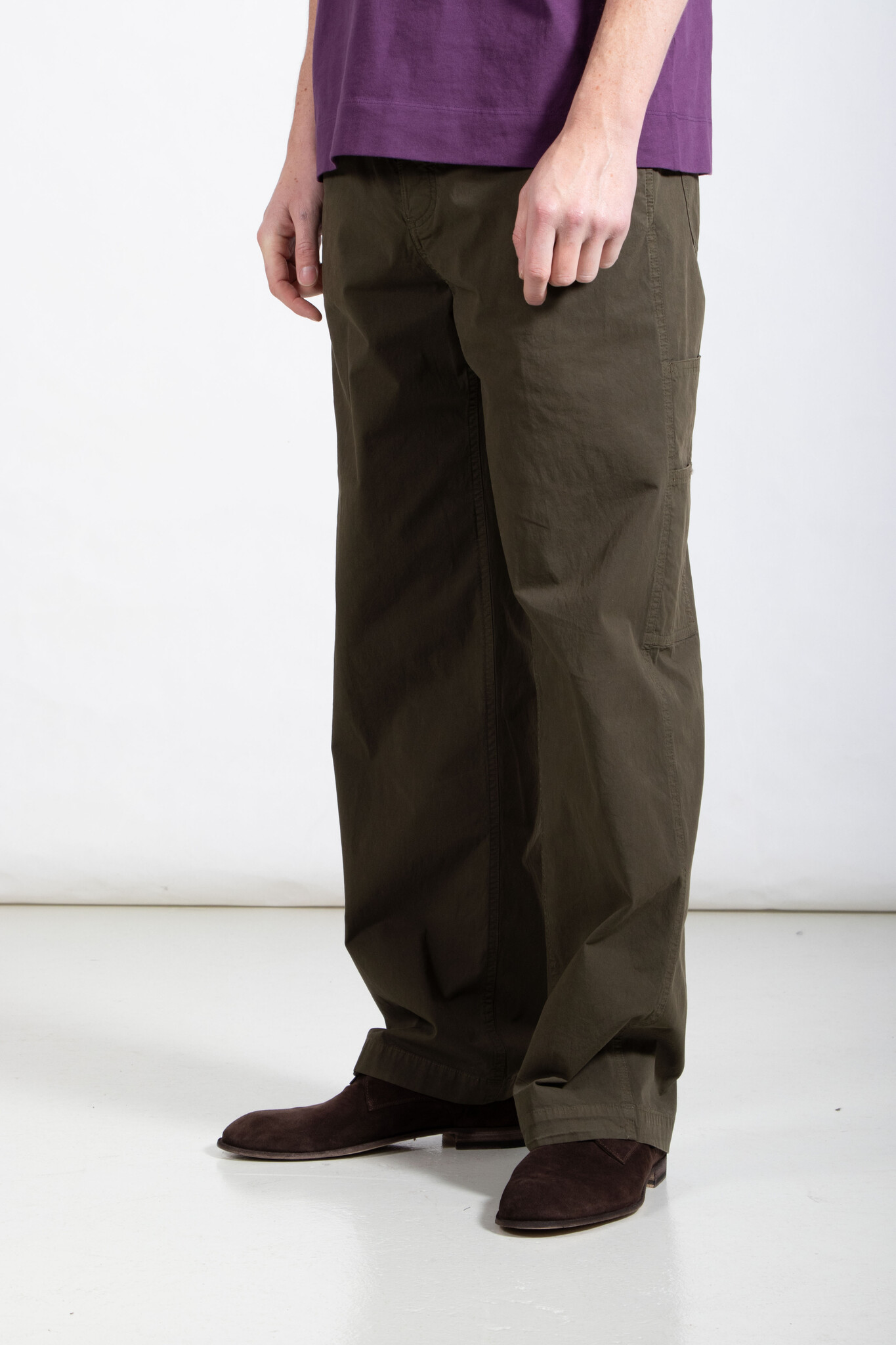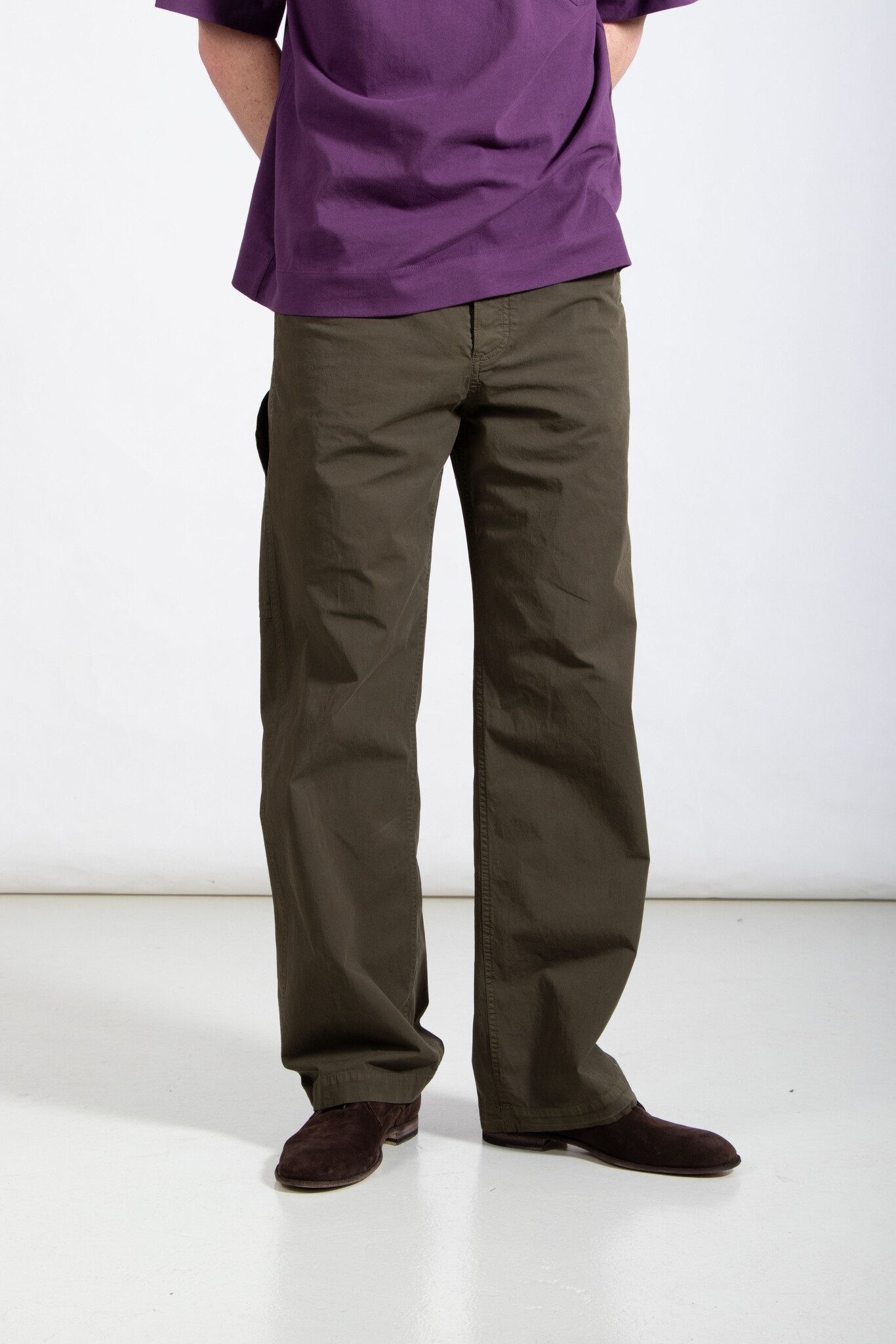 | Cargo geïnspireerde broek van Dries van Noten, gemaakt in Roemenië. Een recht vallend model met een steekzak, gemaakt van 98% katoen en 2% elastaan. Ons model is 189 cm lang en draagt maat 32. | |