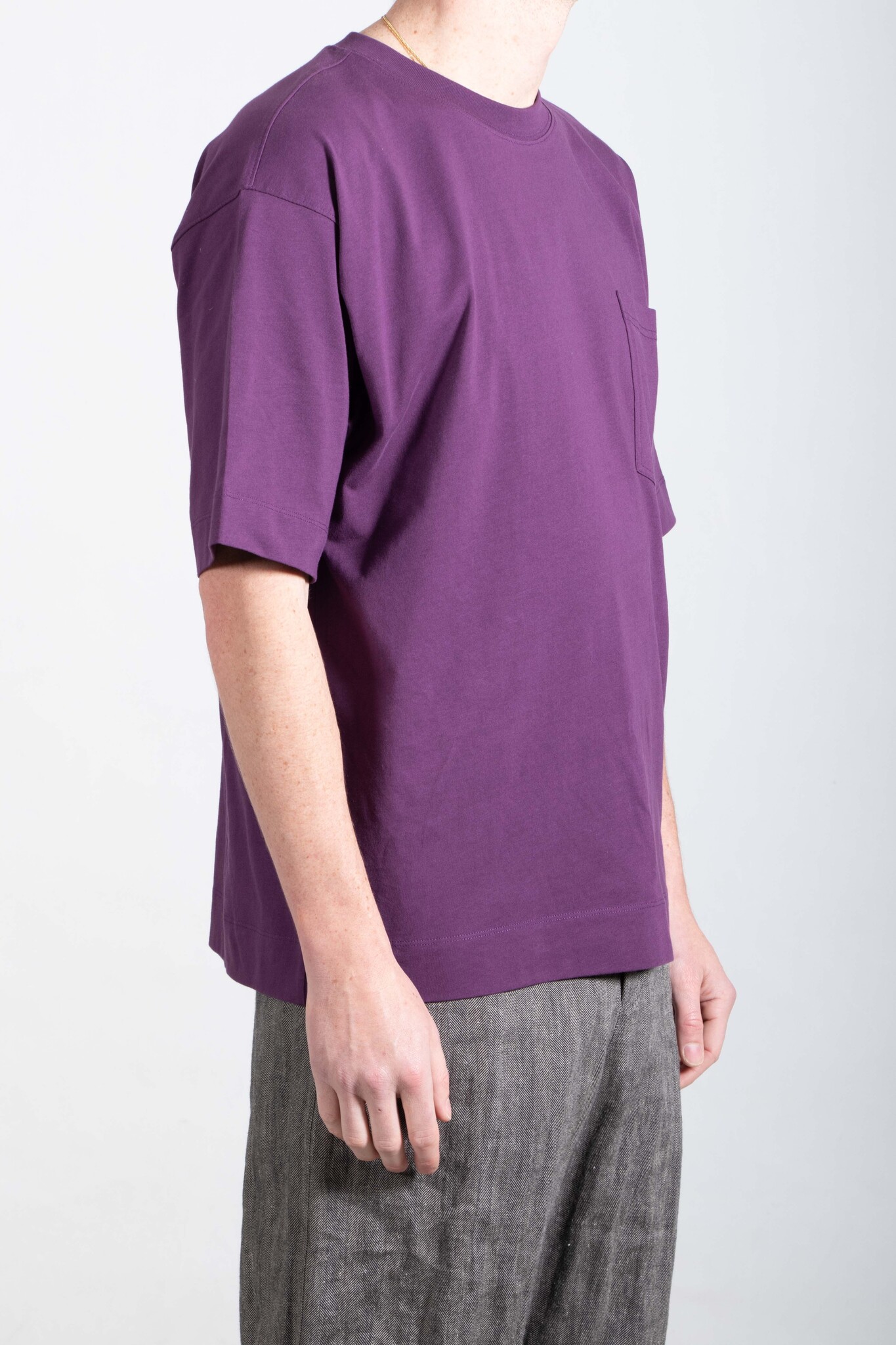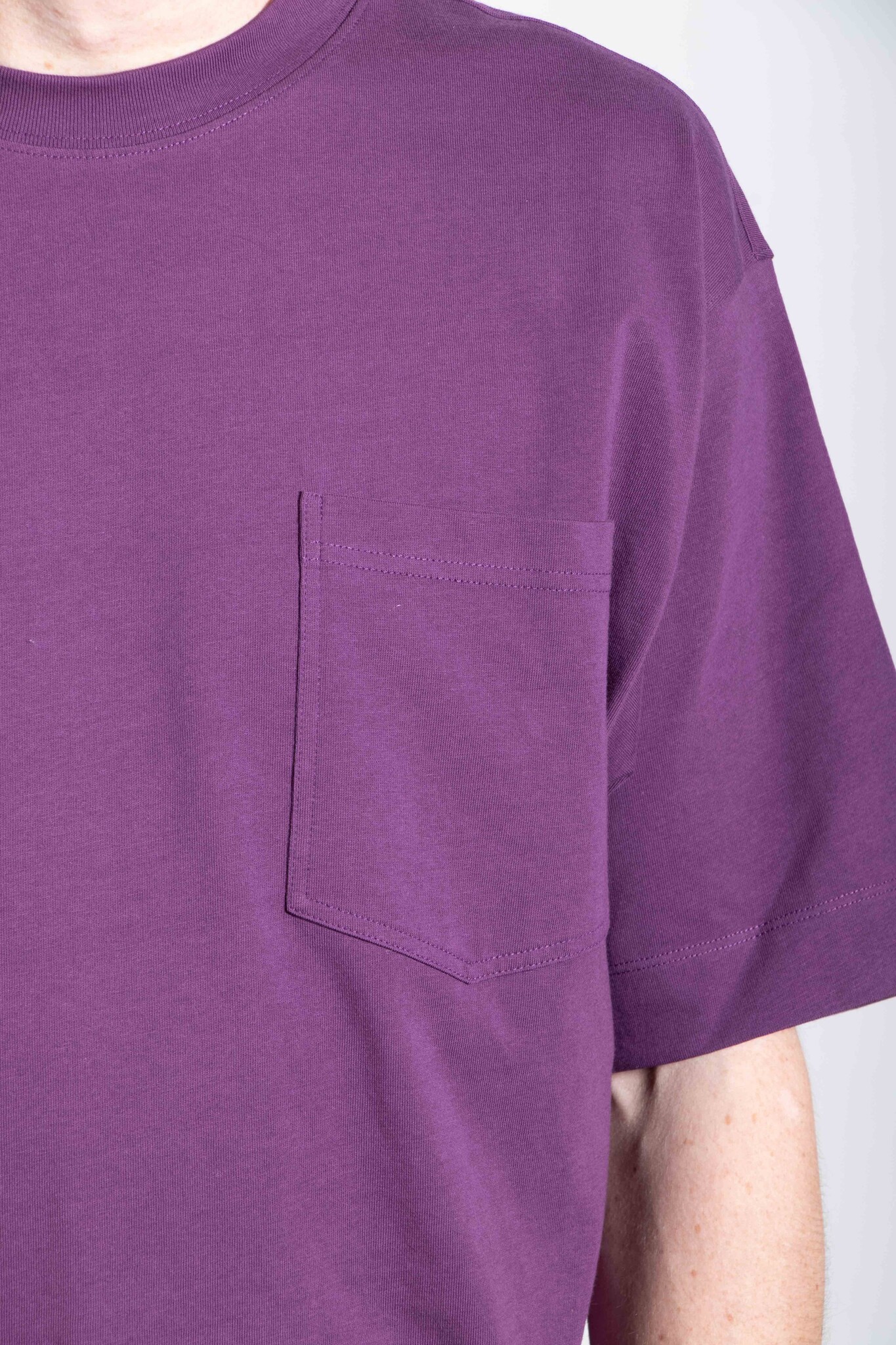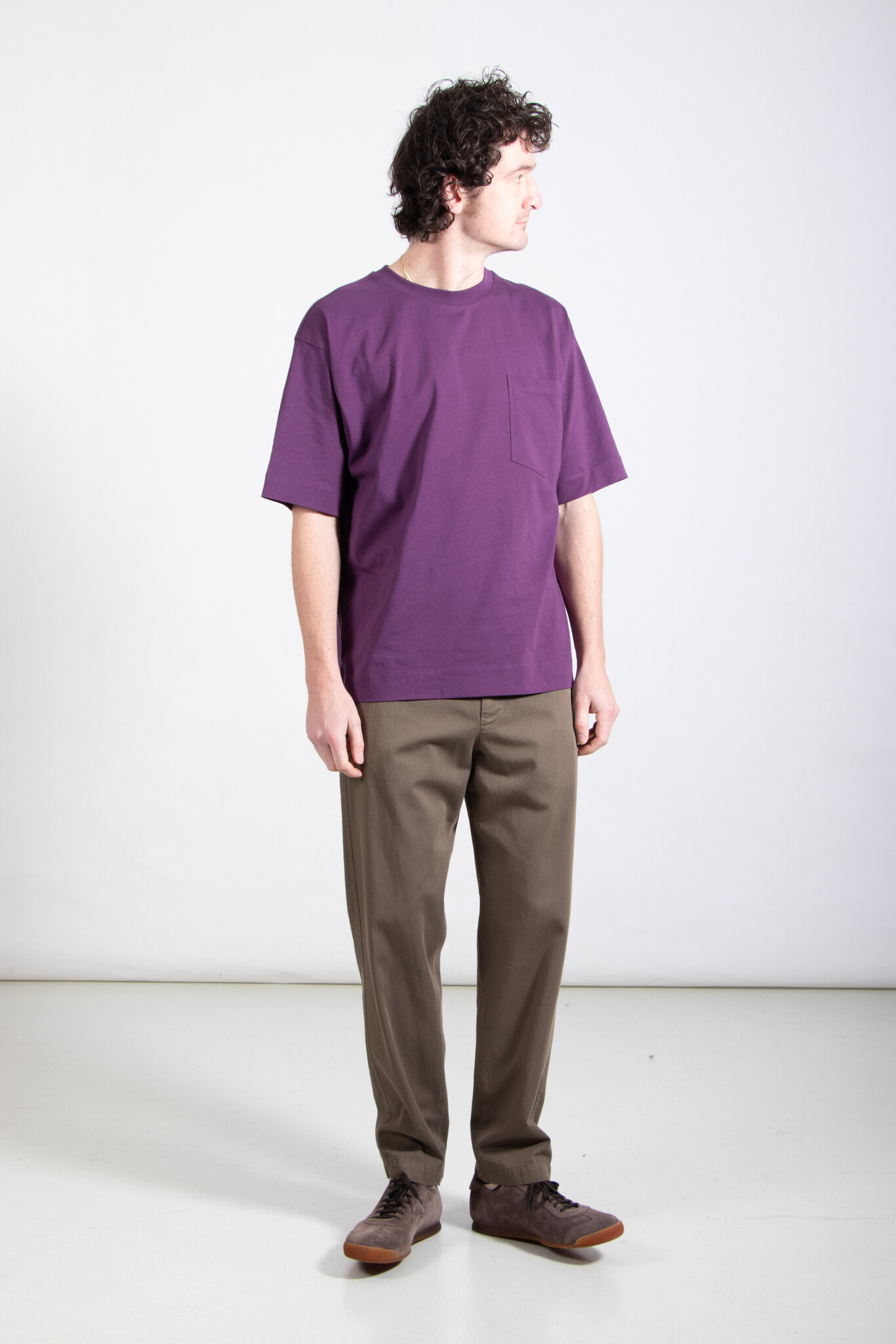 | Katoenen t-shirt van Dries van Noten. Het T-shirt valt wat ruimer, en heeft iets langere mouwen en een borstzak. Ons model is 189 cm lang en draagt maat L. | |