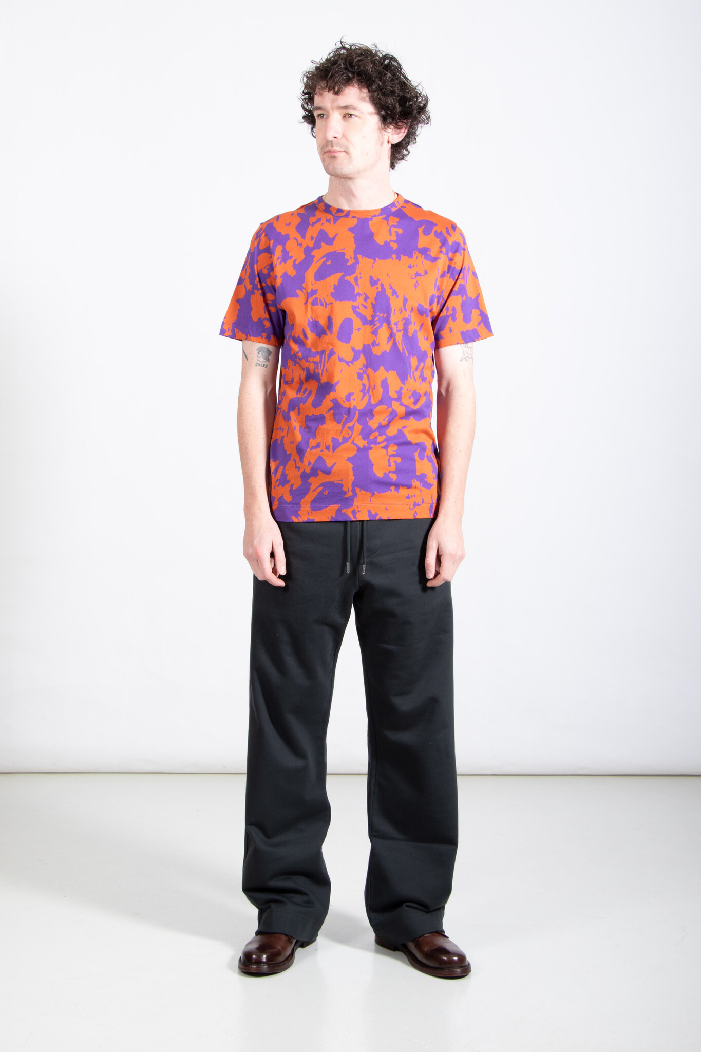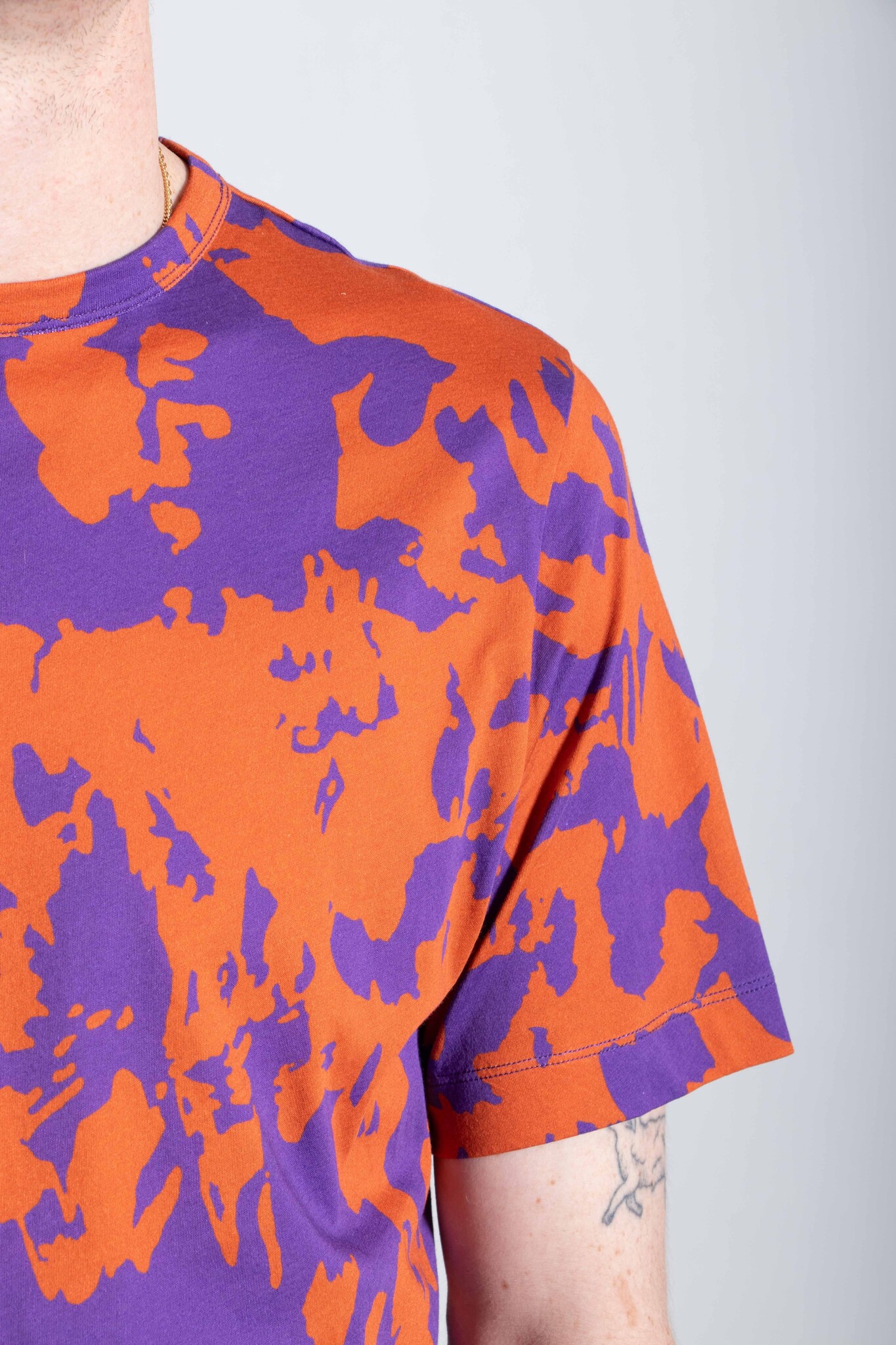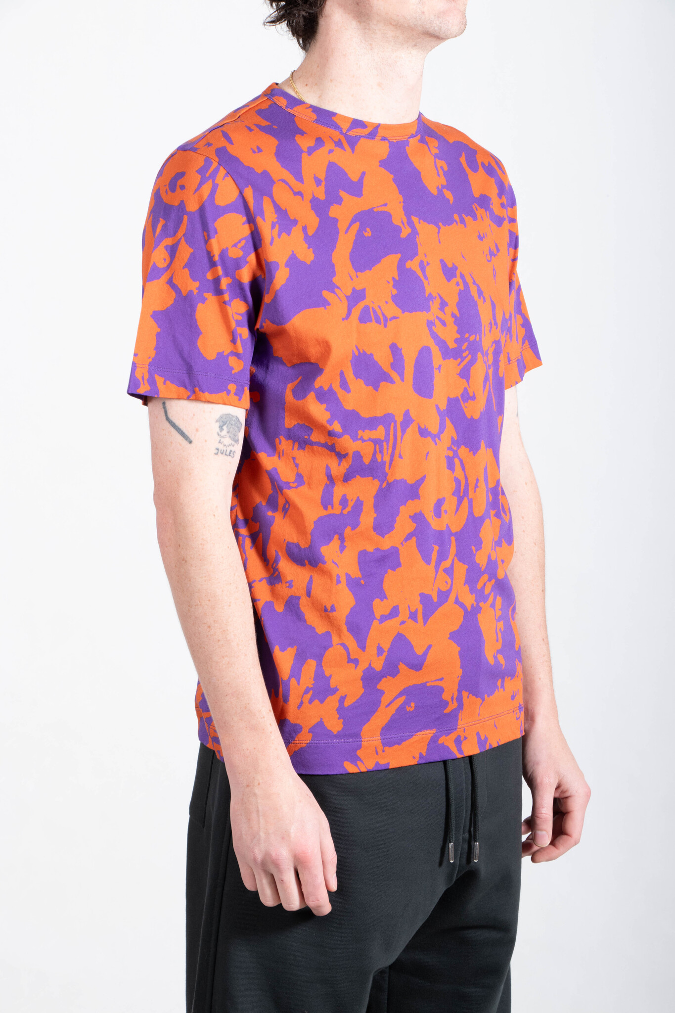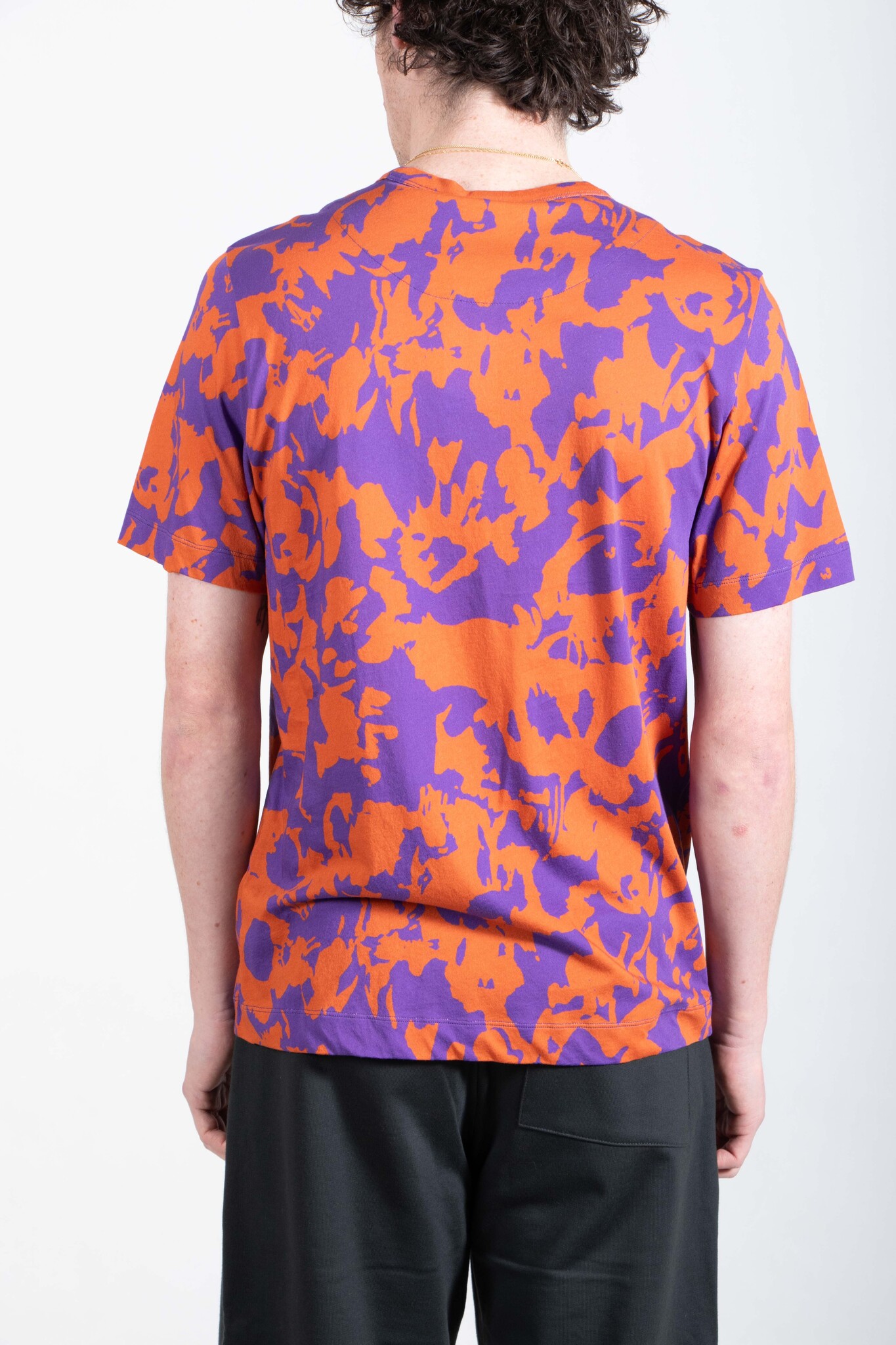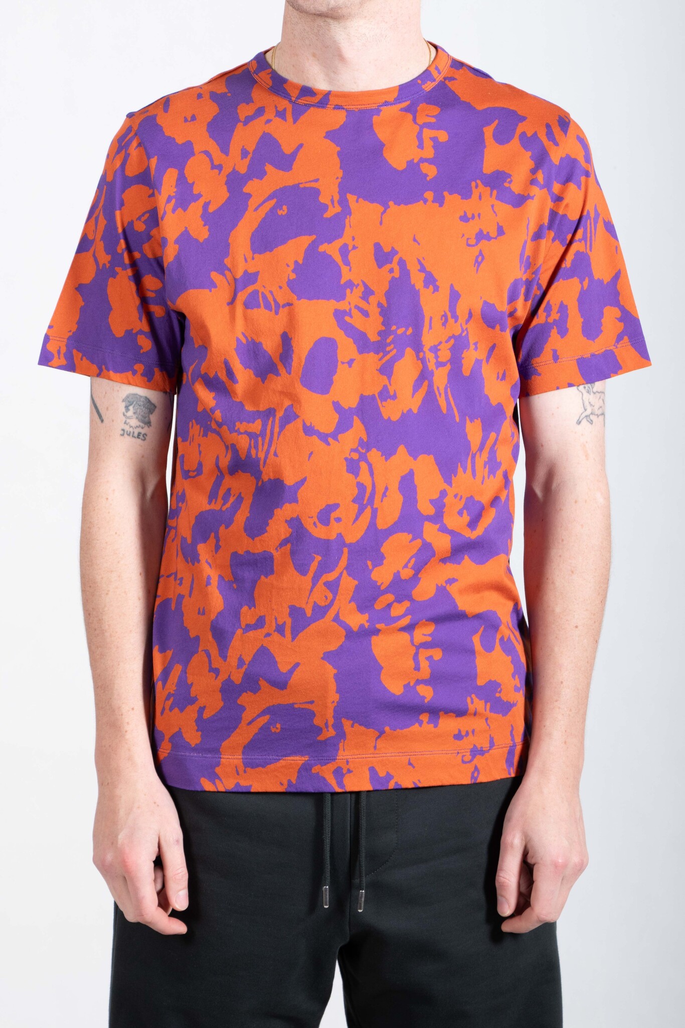 | Katoenen T-Shirt van Dries van Noten. De stof is zacht en delicaat en heeft een abstracte panterprint, uitgevoerd in het paars en oranje. Ons model is 189 cm lang en draagt een maat L. | |
