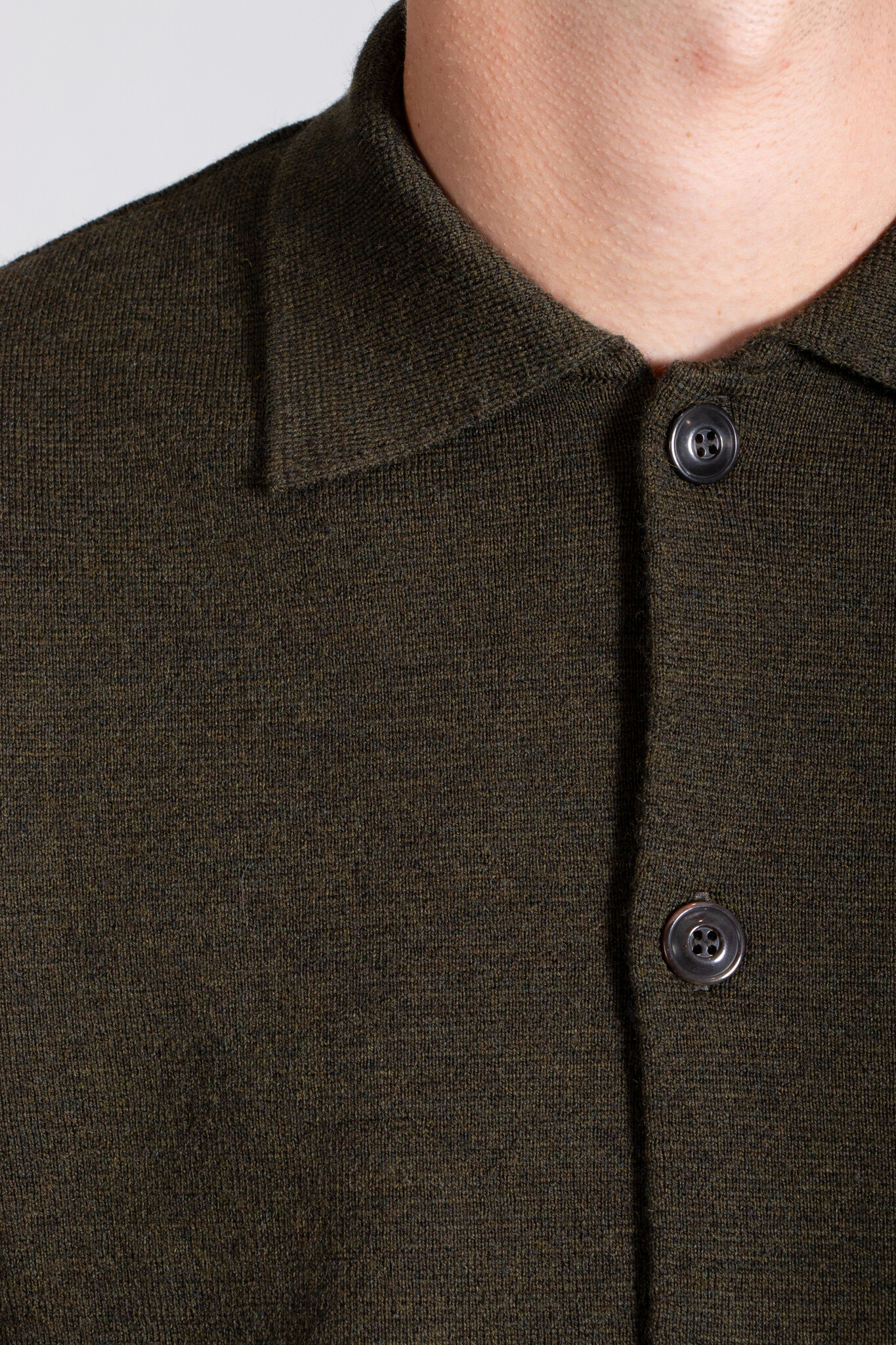 Vest van het Italiaanse breimerk G.R.P. in een gemêleerde grijze kleur. De stof is een stugge, dichtgebreide merinowol. Het vest is voorzien van knopen. Ons model is 192 cm lang en draagt maat XL. Lees meer