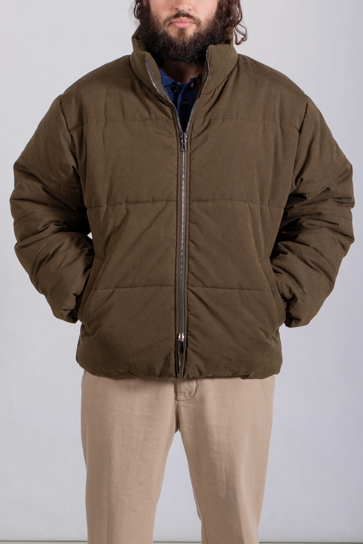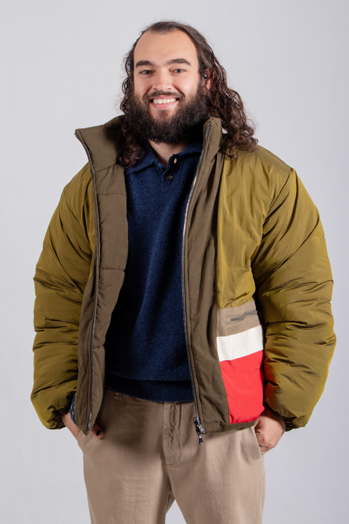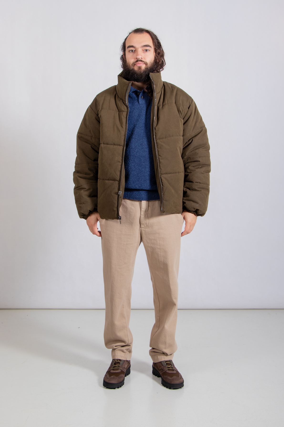 De Tobias Peach-jas van Homecore uit Parijs. Deze omkeerbare jas is gewatteerd, heeft een hoge kraag, diepe zakken en een patroon aan de binnenkant. Ons model is 180 cm lang en draagt maat XL. Lees meer