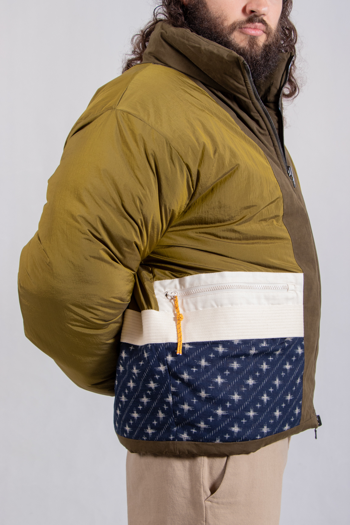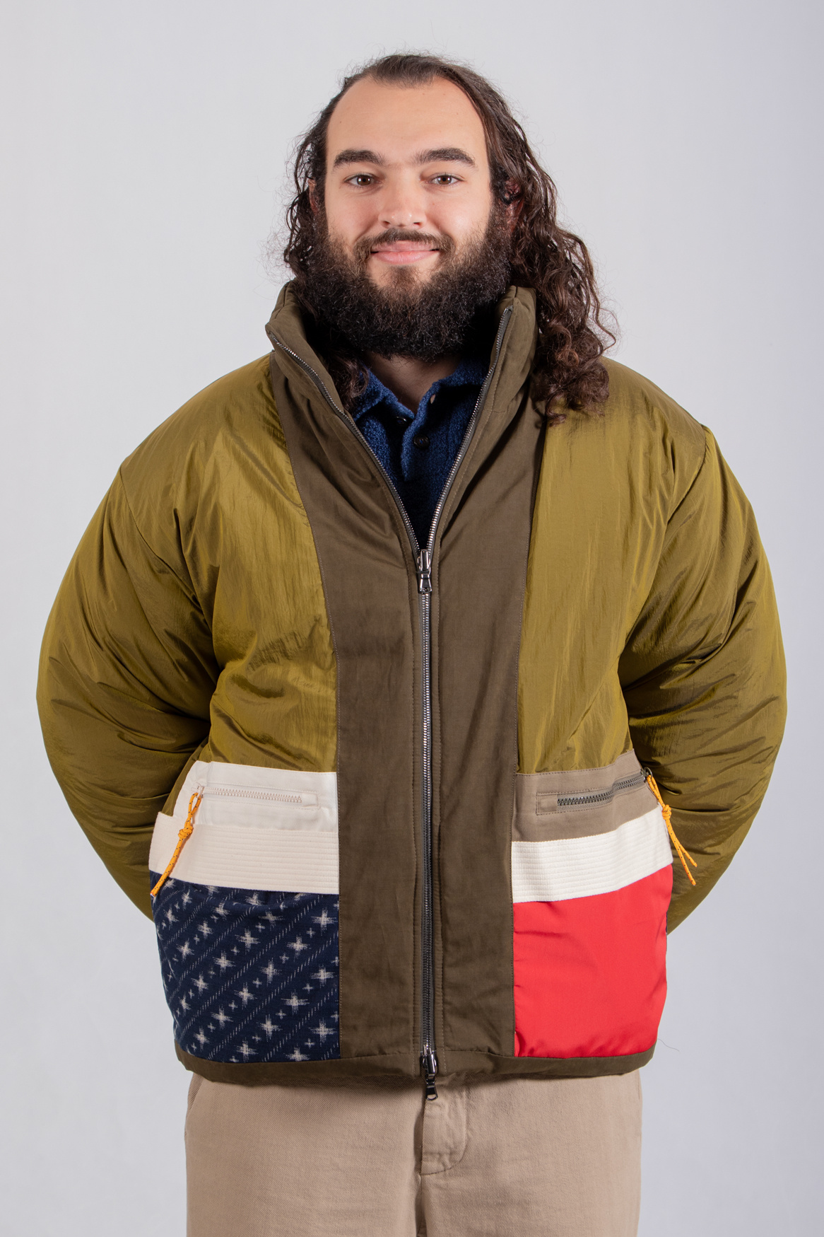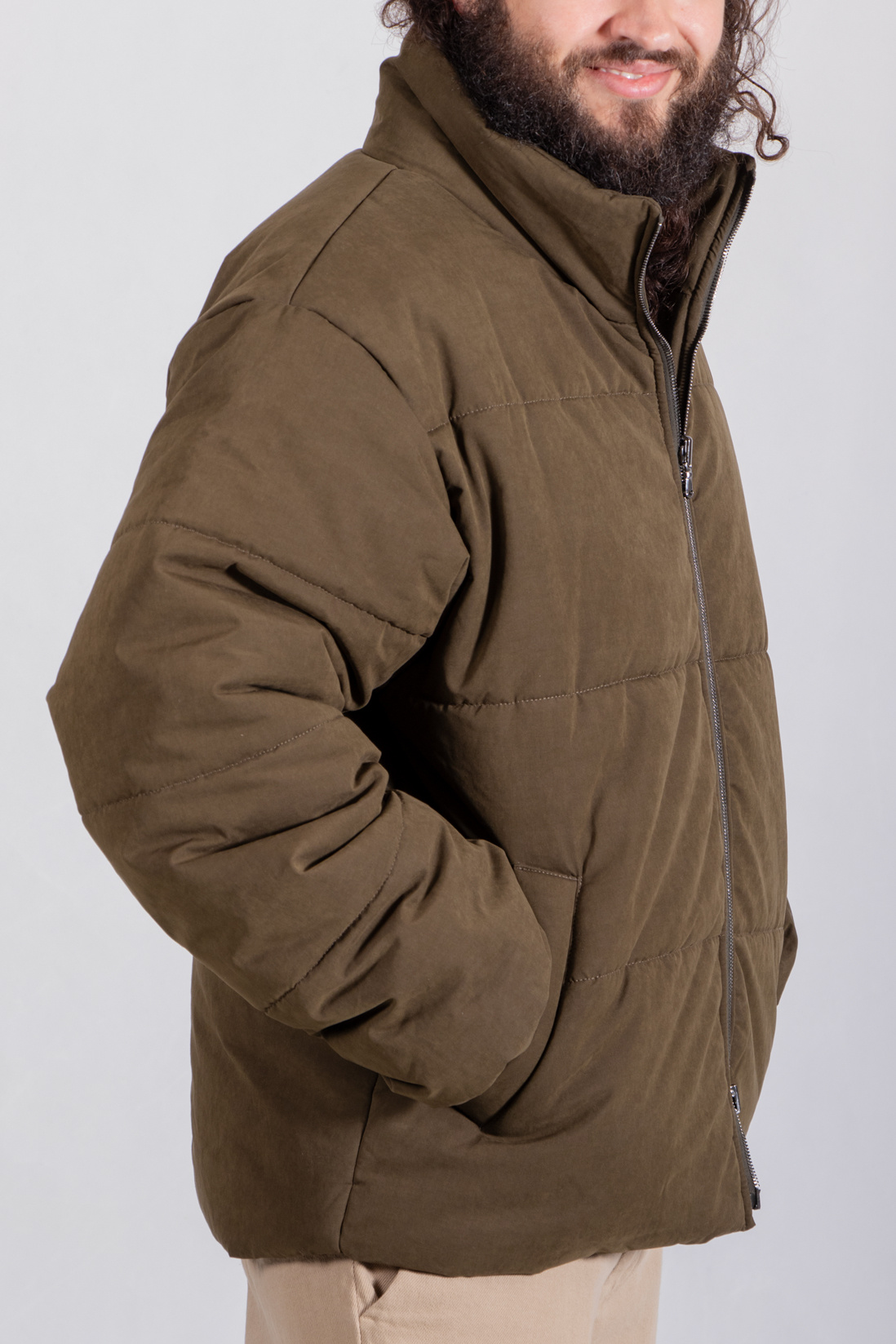 De Tobias Peach-jas van Homecore uit Parijs. Deze omkeerbare jas is gewatteerd, heeft een hoge kraag, diepe zakken en een patroon aan de binnenkant. Ons model is 180 cm lang en draagt maat XL. Lees meer