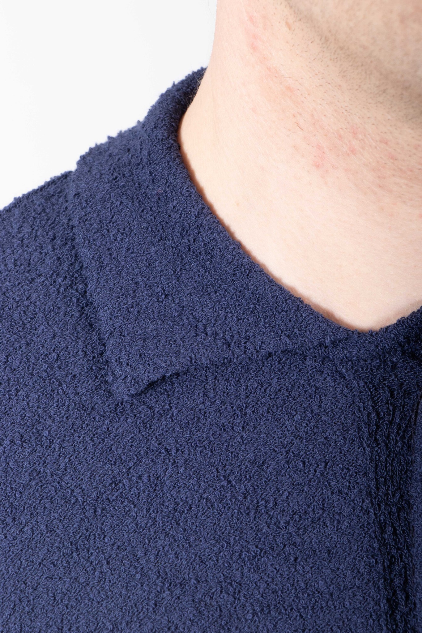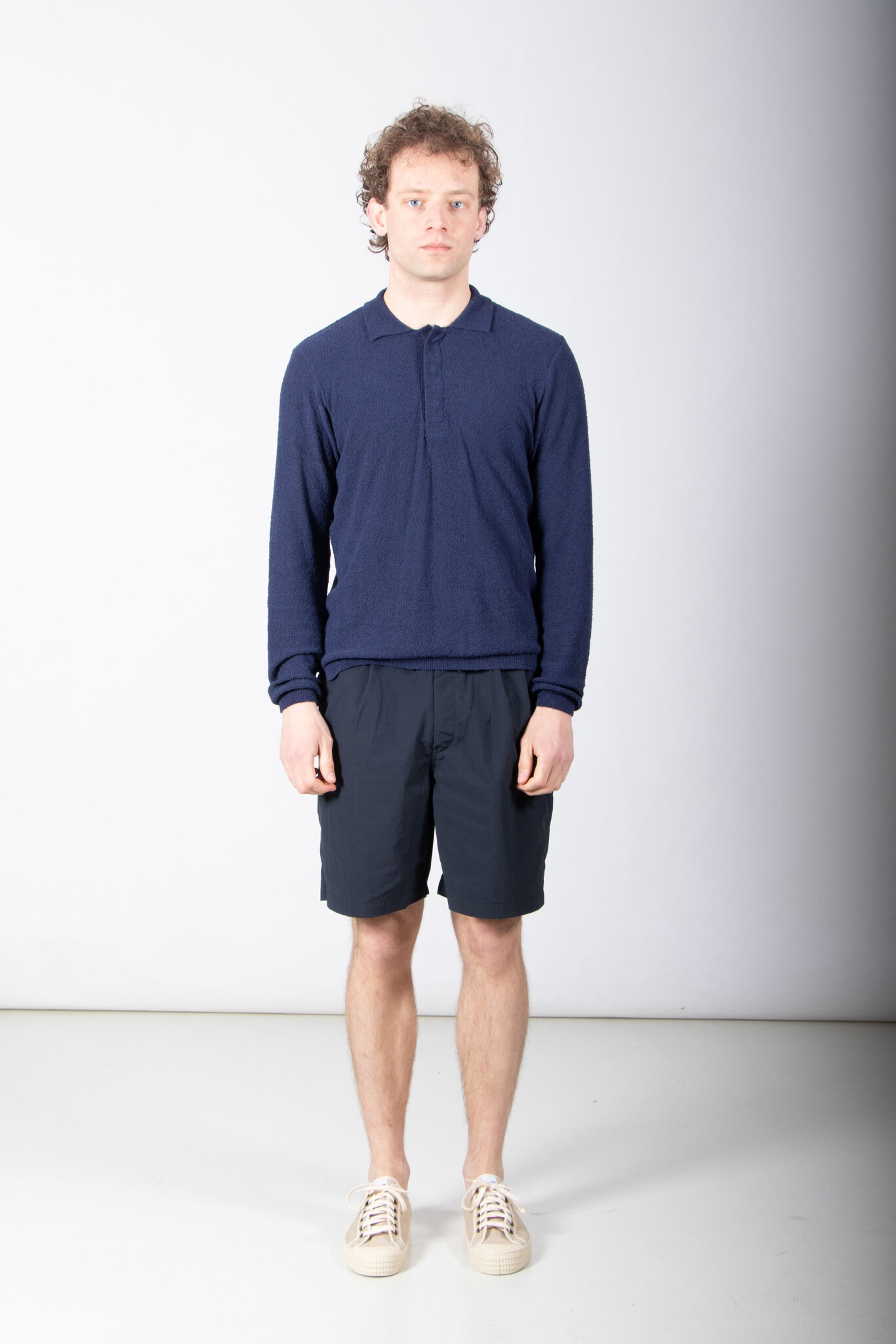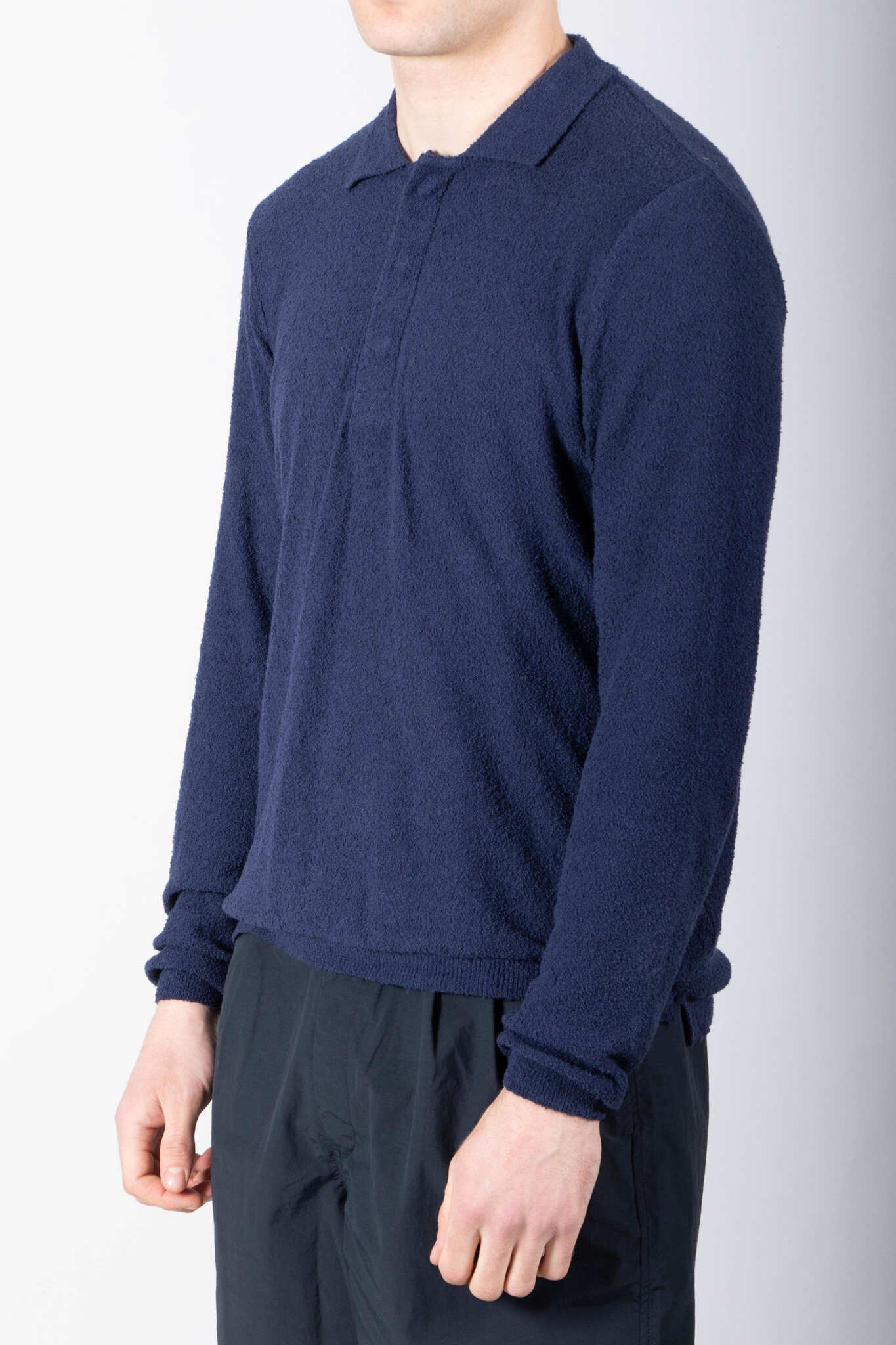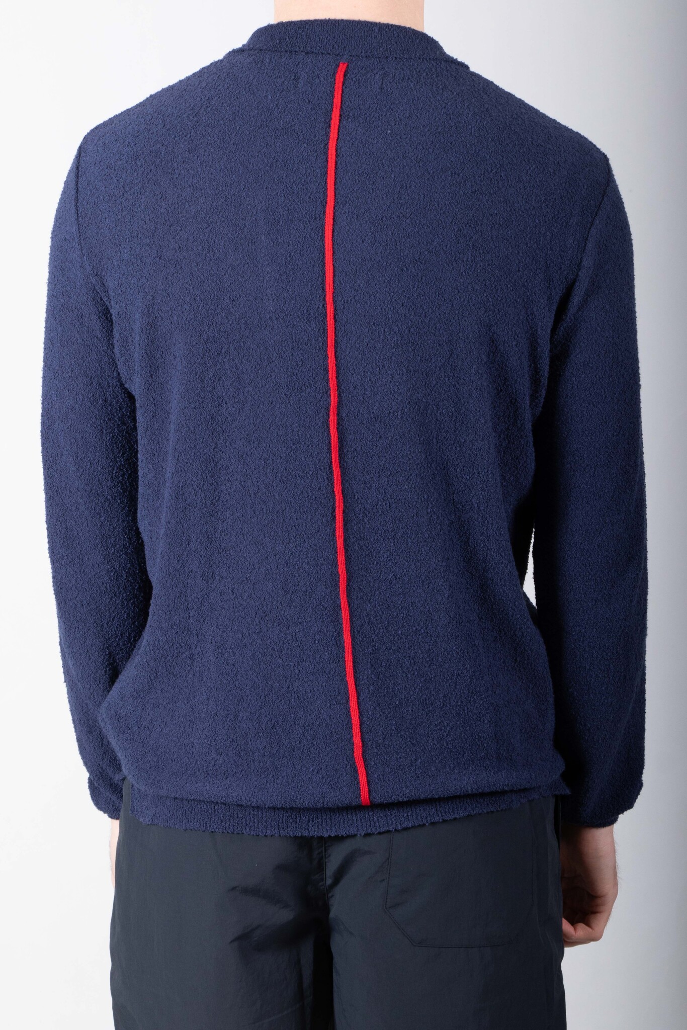 Gebreide polo met lange mouwen van Homecore. Voorzien van een verborgen knoopsluiting en de kenmerkende rode streep over de rug. Ons model is 189 cm lang en draagt maat L. Lees meer