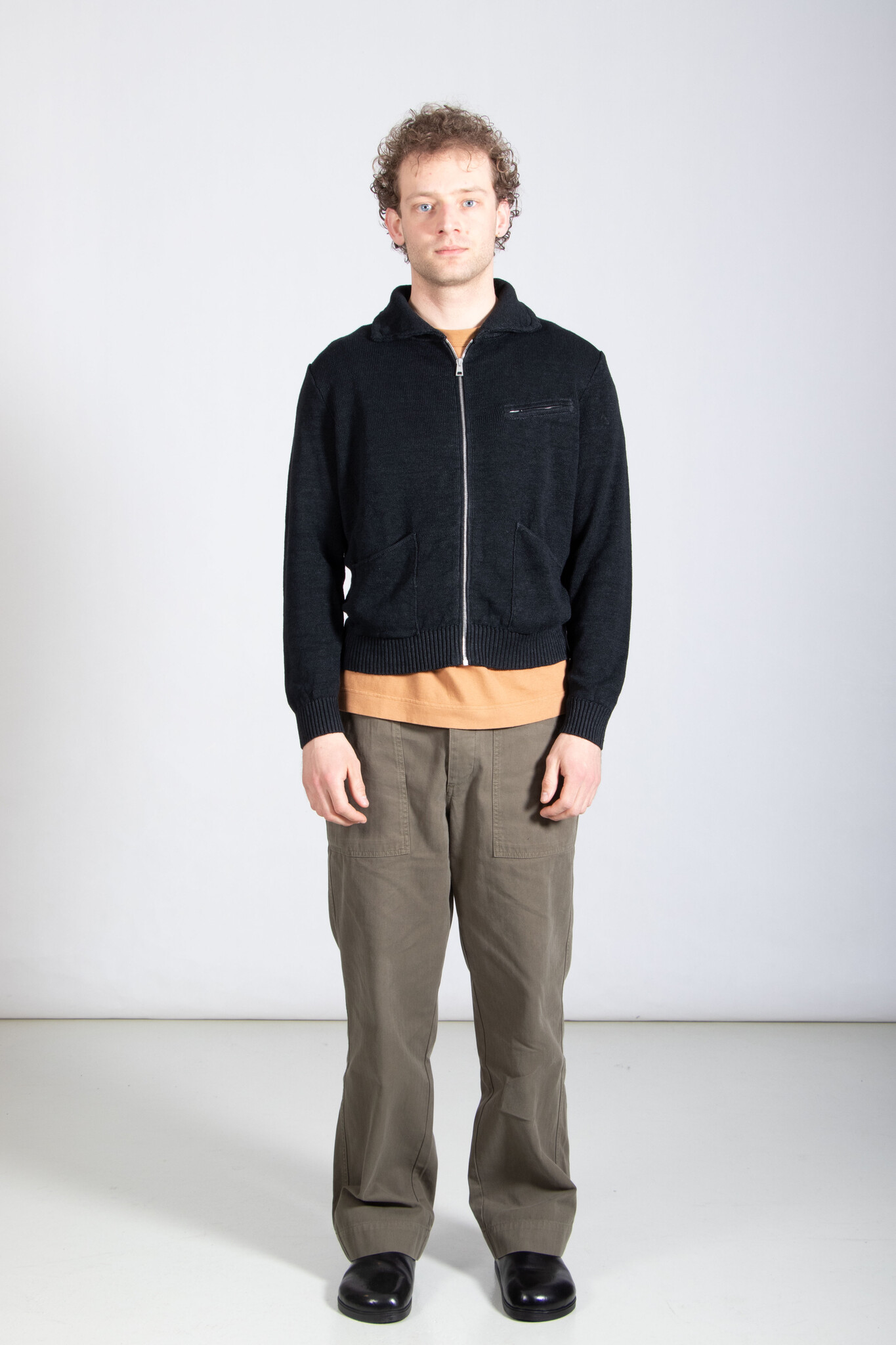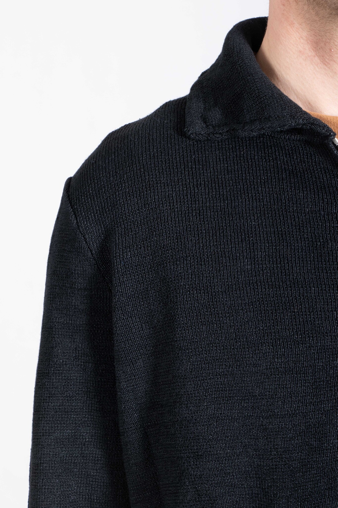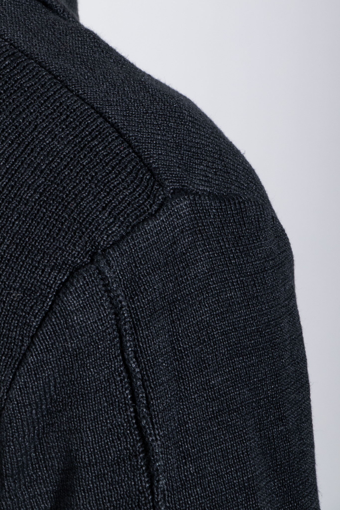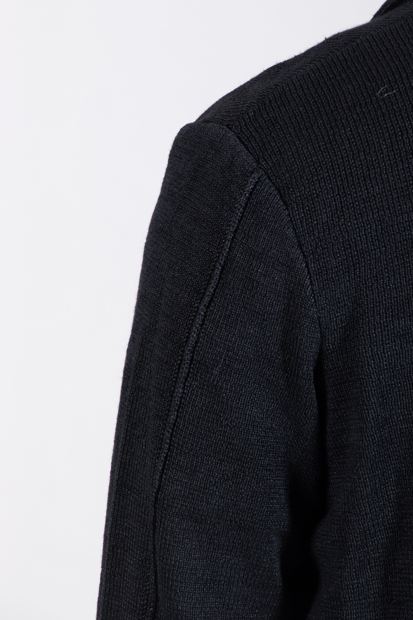 | Een wat korter model vest van Max Rohr. Het is gebreid in de fabriek van G.R.P. Firenze, Italië dus. Gemaakt van dikke, linnen garen. Ons model is 189 cm lang en draagt een maat L. | |
