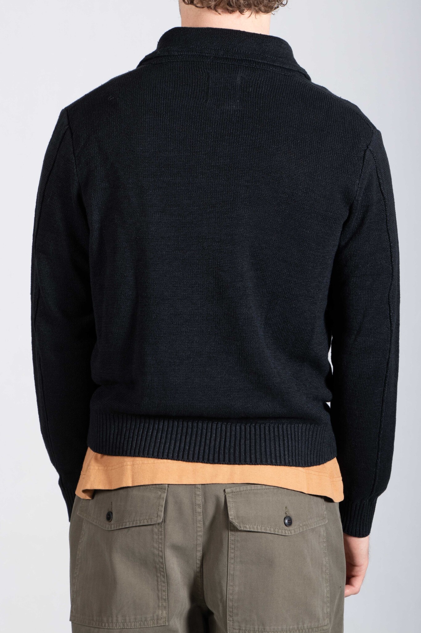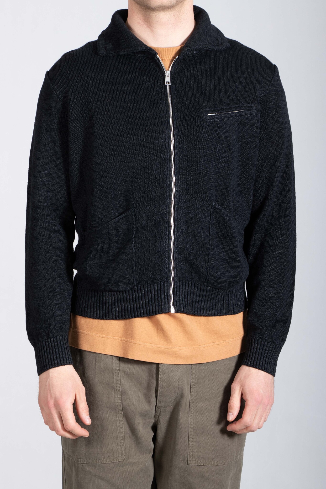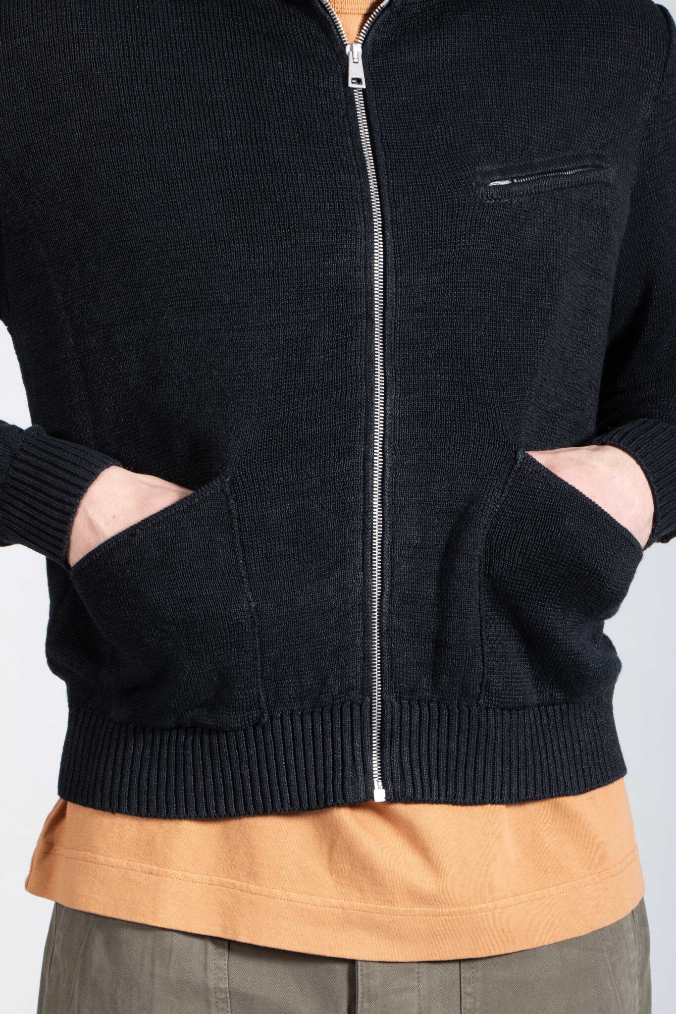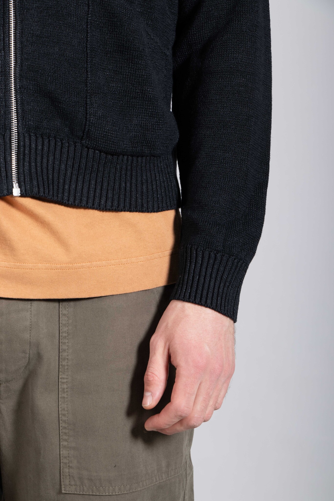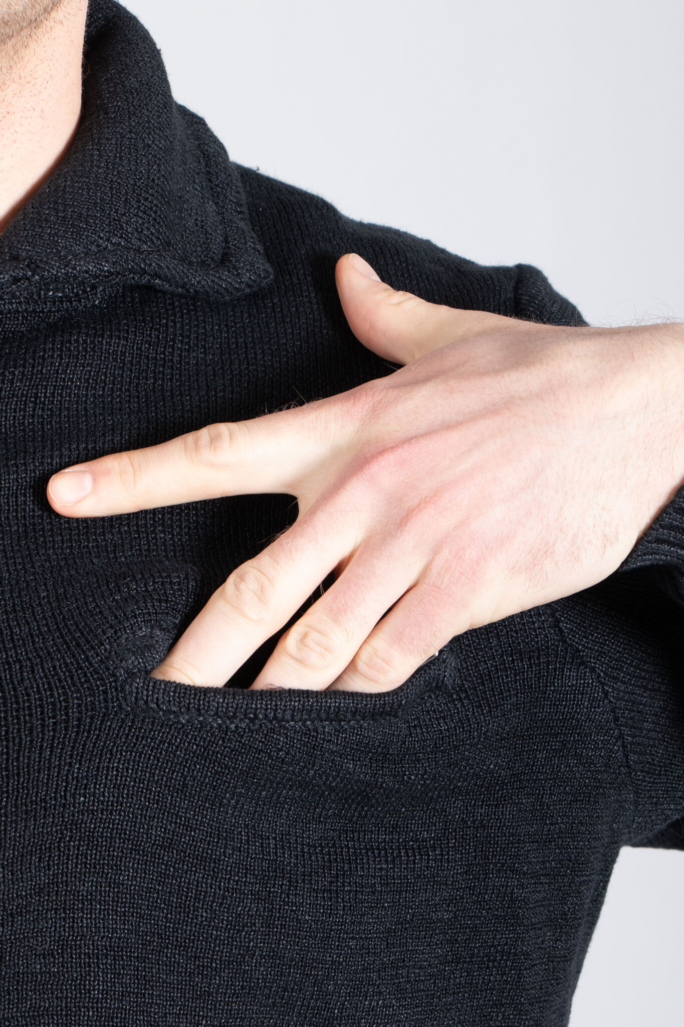| Een wat korter model vest van Max Rohr. Het is gebreid in de fabriek van G.R.P. Firenze, Italië dus. Gemaakt van dikke, linnen garen. Ons model is 189 cm lang en draagt een maat L. | |
