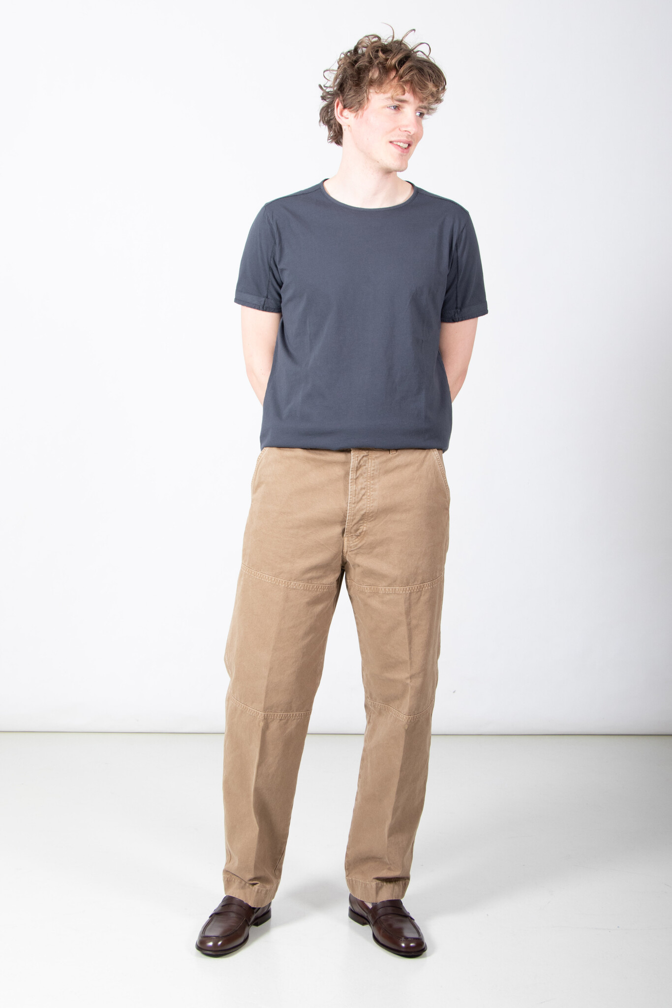 De Aviator broek van Nine In The Morning, in een stug katoen. Wijdvallend model met aan elkaar gestikte panelen, voorzien van klepzakken. Ons model is 189 cm lang en draagt maat 31. Lees meer