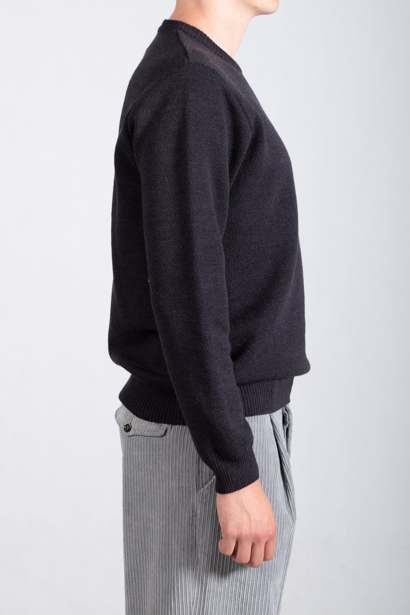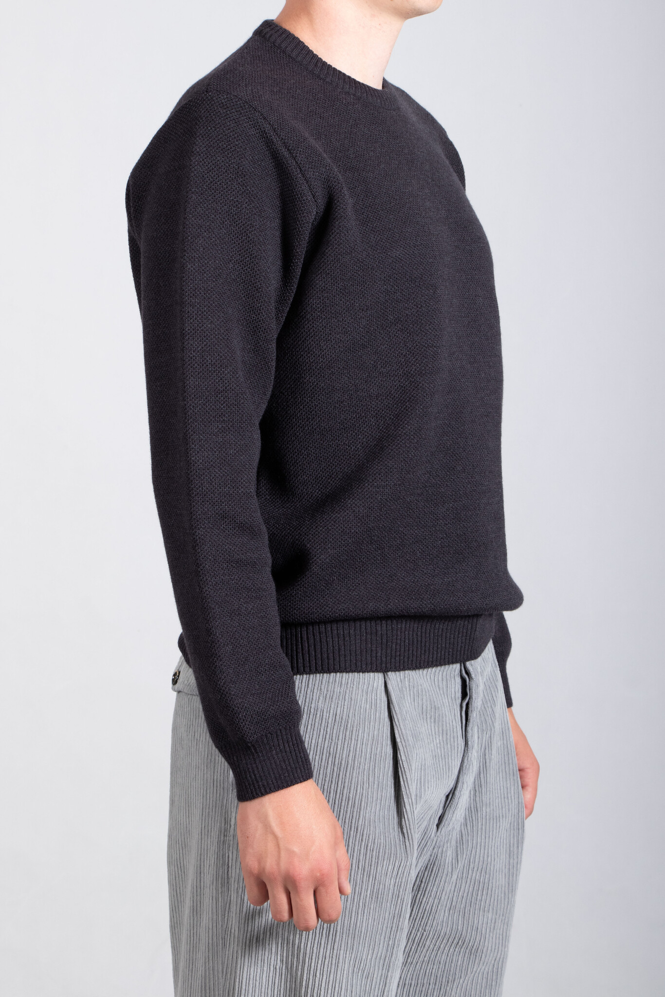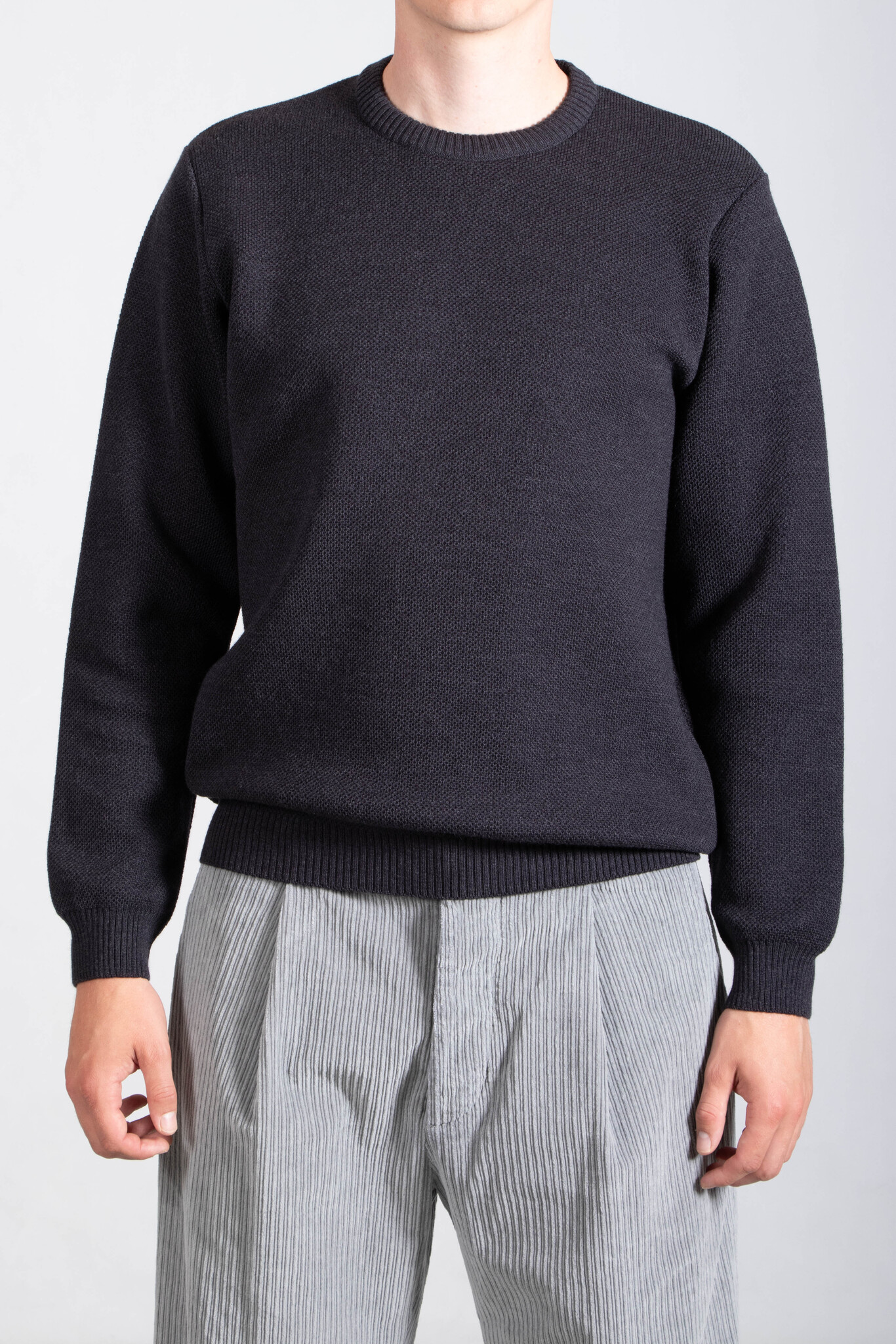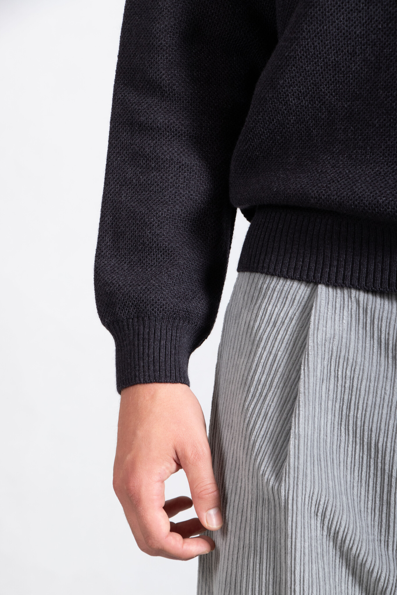Nieuw in de winkel, Nitto, een breimerk uit Frankrijk. Daar bedacht, daar gemaakt. Gebreid in een zogeheten pique en volledig merino wol. Ons model is 189 cm lang en draagt een maat L. Lees meer